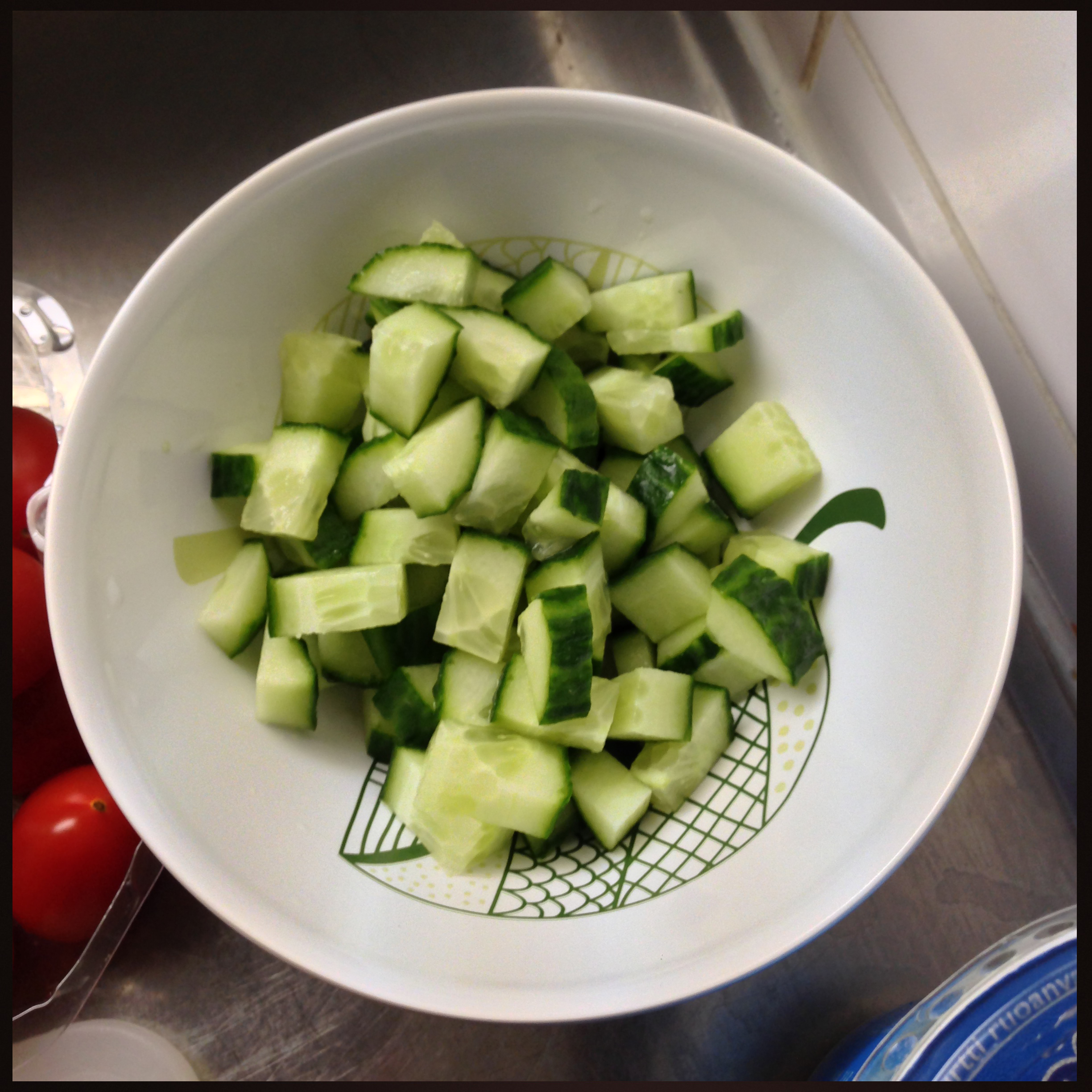 1. Slice the cucumber into small pieces. I don’t peel the cucumber – but do it if you want.