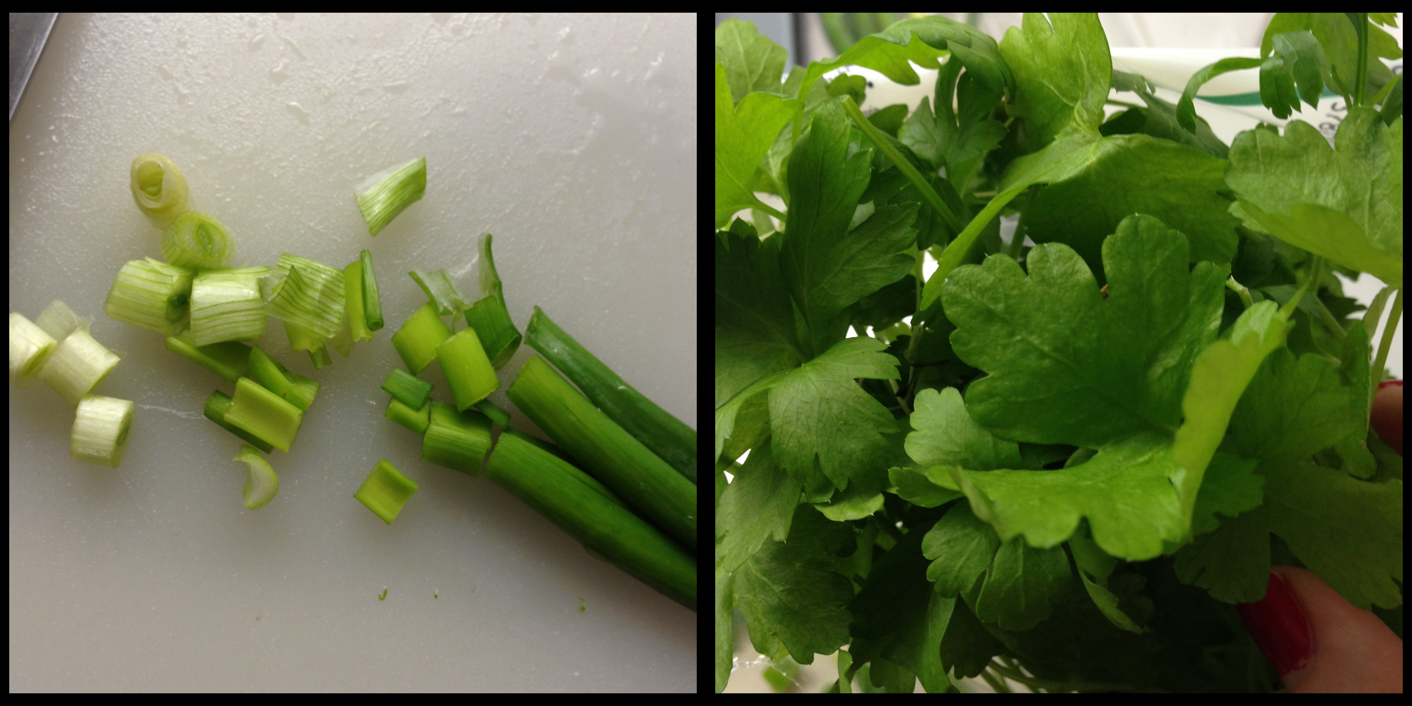 4. In a separate place, chop spring onions and parsley into small pieces.