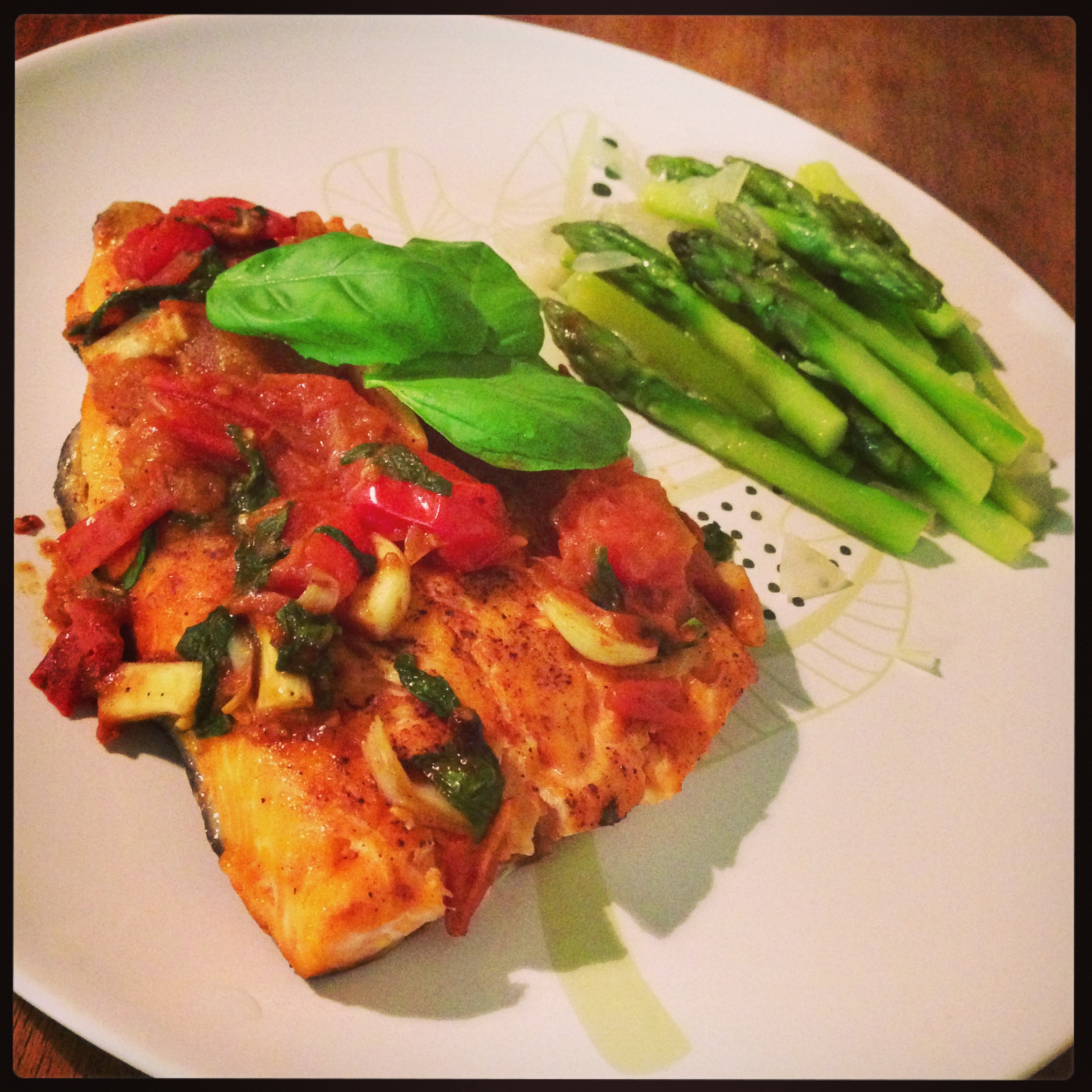 This time I decided to try some pan-frying for fish, though I also used oven as well, you will read it below. As a side dish, you can serve some steamed vegetables, for instance I served steamed asparagus and onion. It is quite a filling fish so the best side dish is, I think, is some steamed vegetables and that’s all..