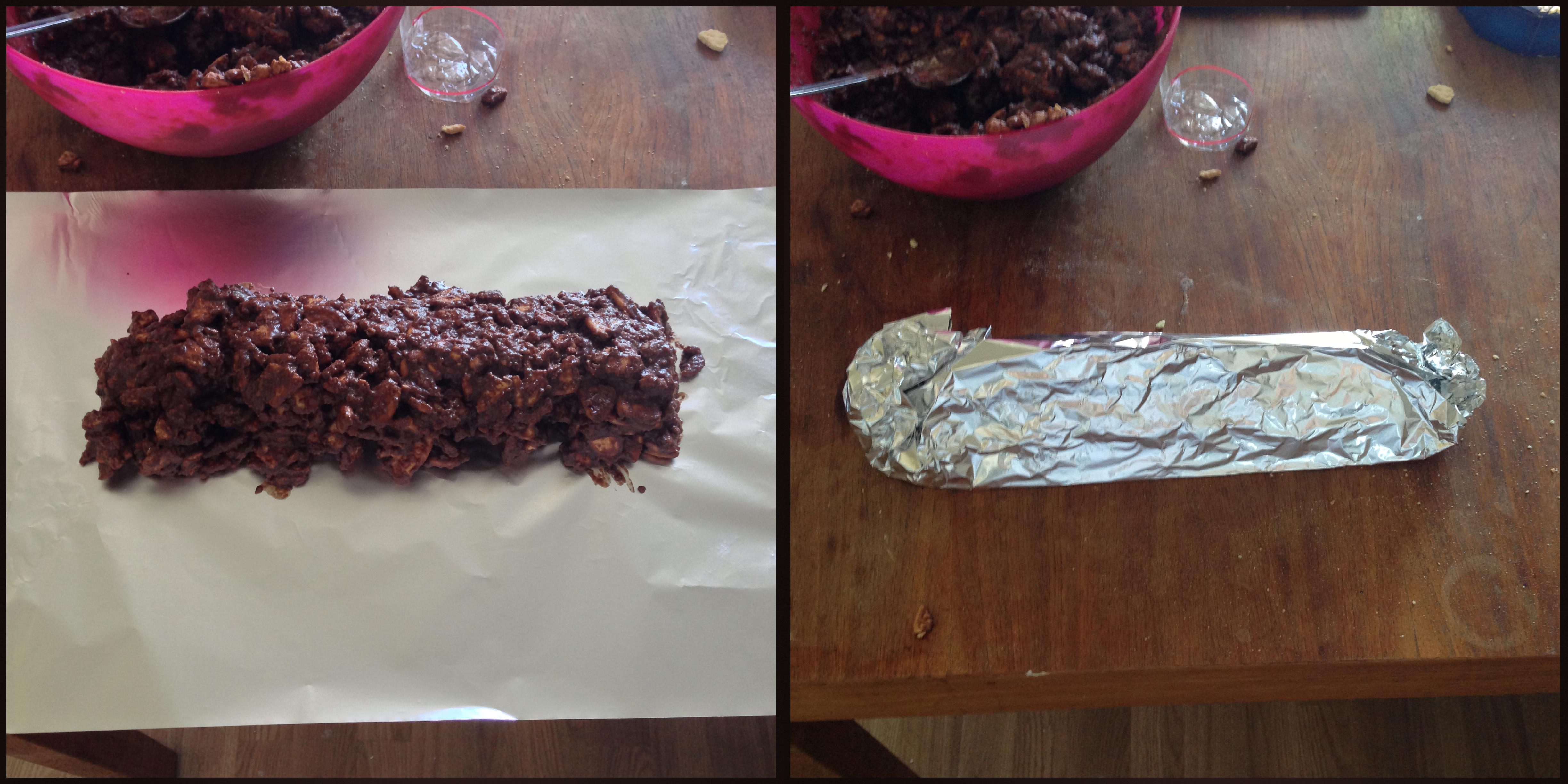 6. On a piece of aluminium folio, put some of the mixture as seen in the picture below. You can decide on the size of it yourself, according to the size of your freezer. Pack it inside the folio and give it a shape using your hands – I generally give it a triangular prism shape. Put the aluminium package inside freezer. DONE!