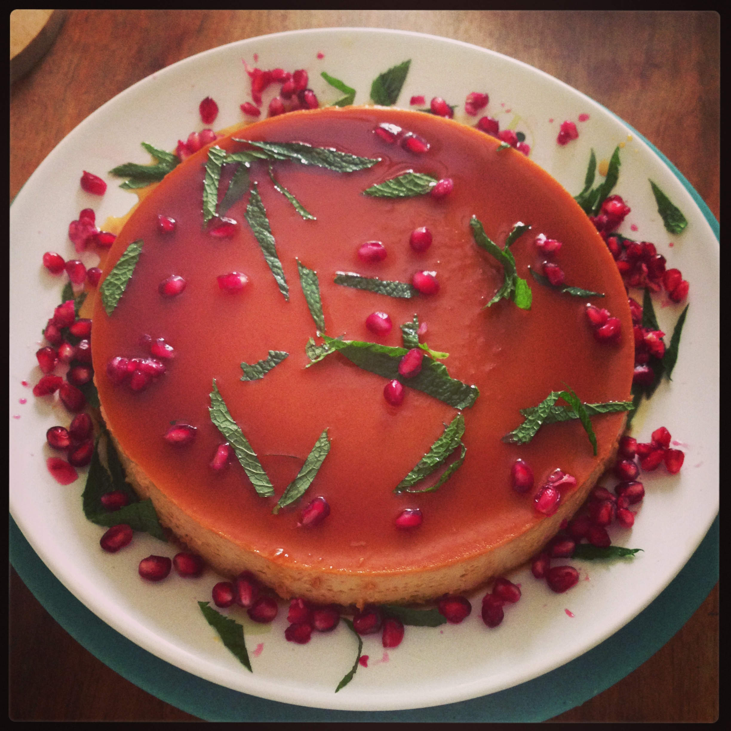 To decorate, you can put mint leaves or pomegranate seeds or both on it. You can leave it in the fridge for a while and serve it cold or you can serve it warmer without putting it in the fridge, it’s up to you.