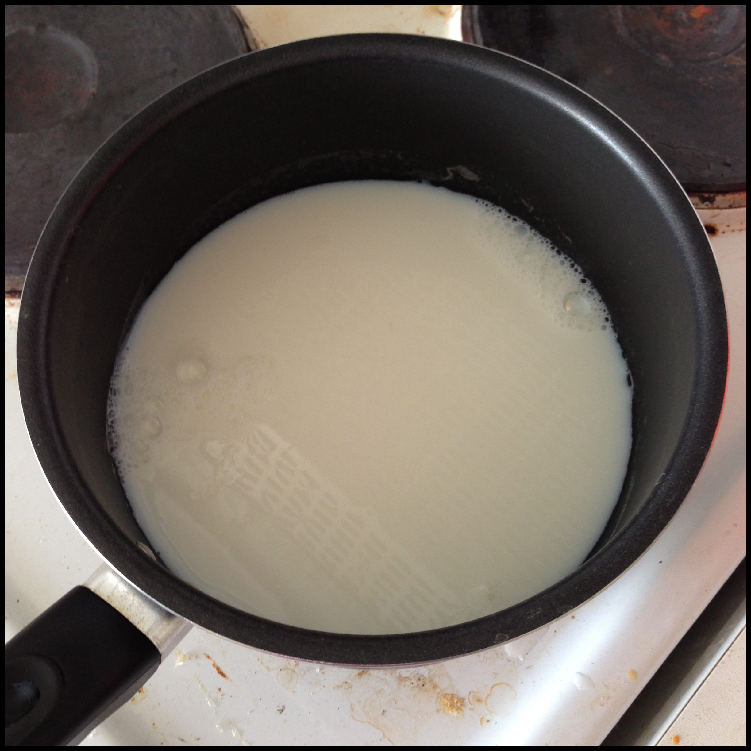 1. Put milk in a pan and bring it to a boil on medium low heat.