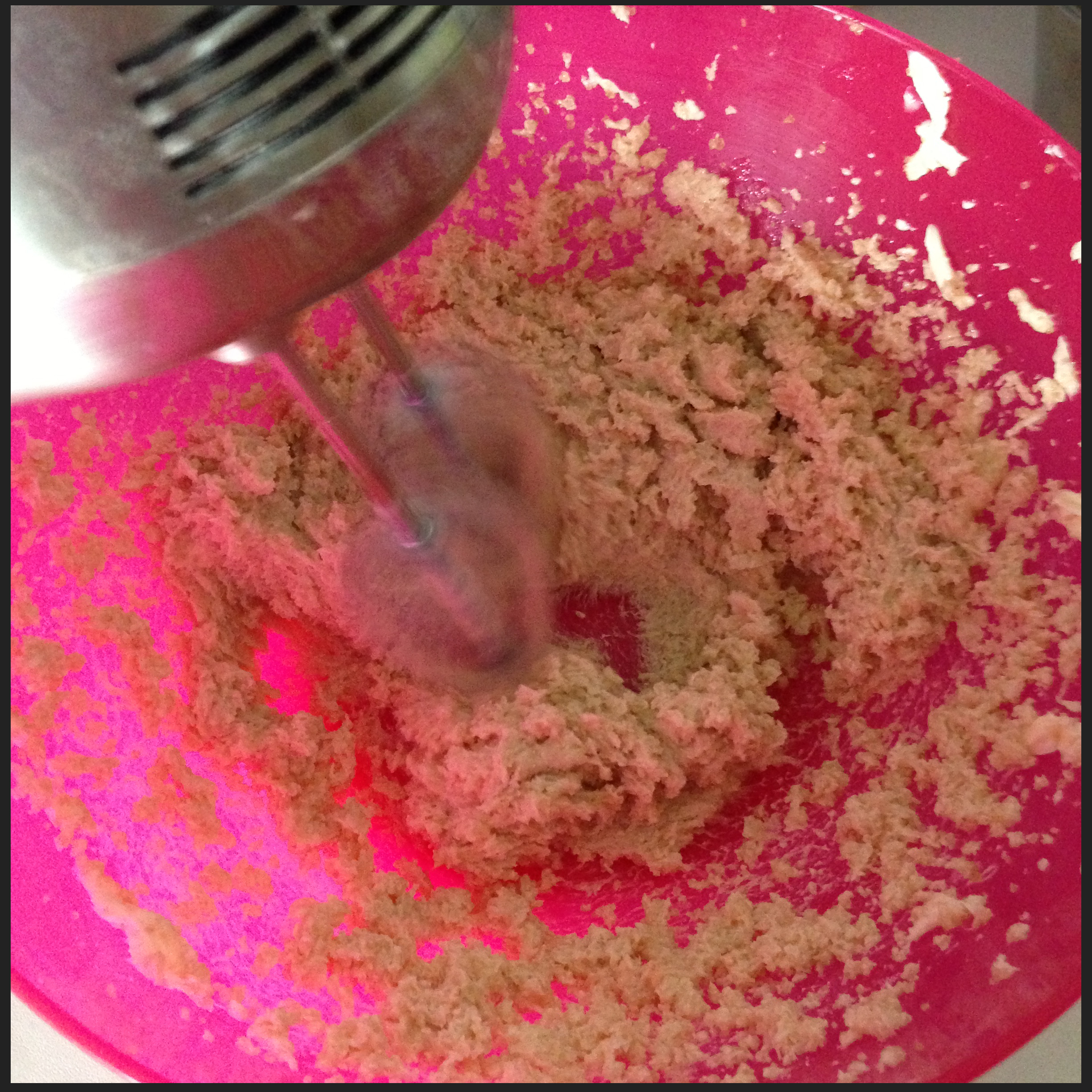 1. In a bowl, put the butter (if you cut it in a few pieces, it would be easier), brown and white sugar and mix them with an electric mixer until they get rather fluffy.