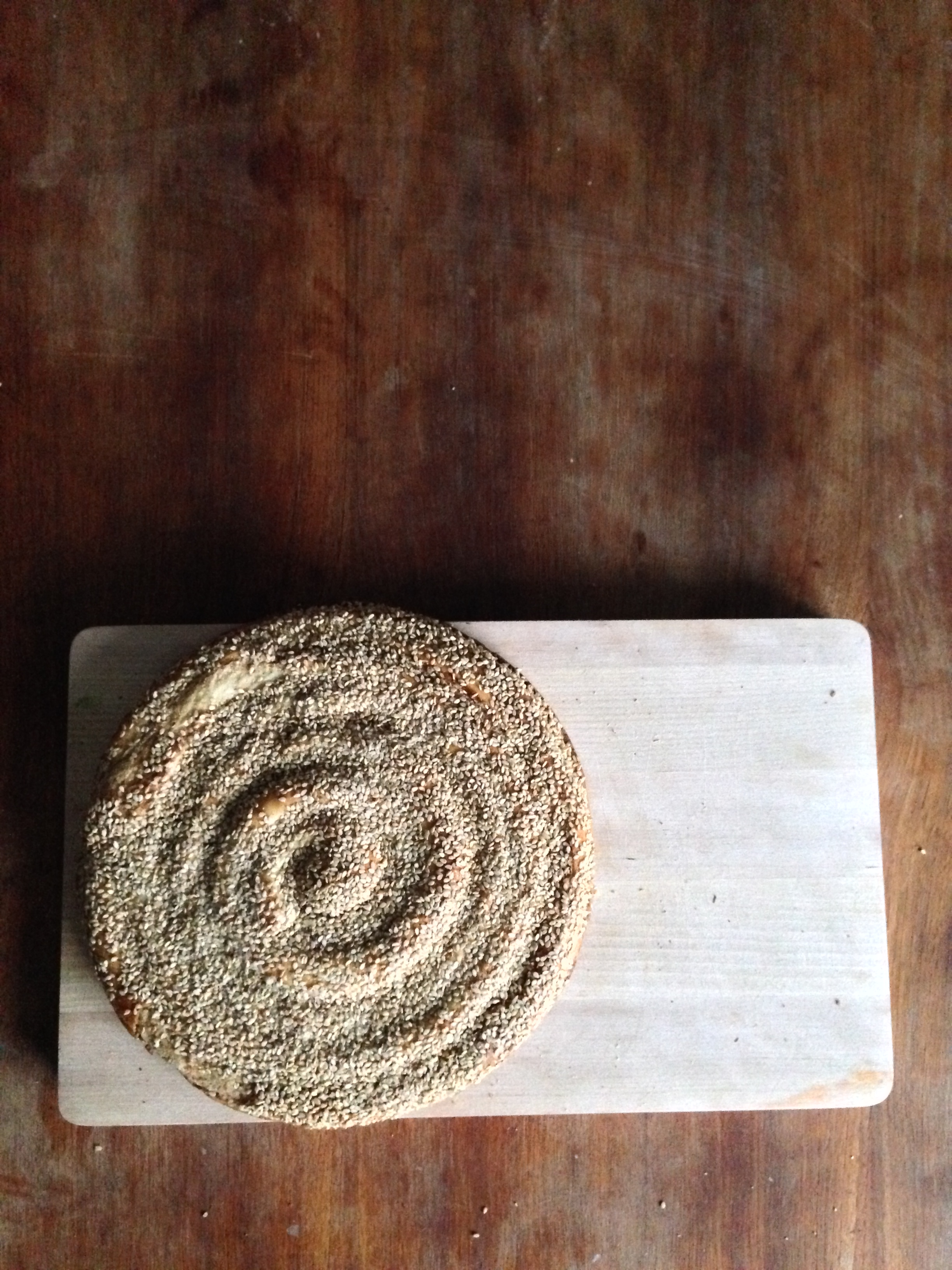 12. Spread sesame seeds and crushed walnuts on top of the roll.