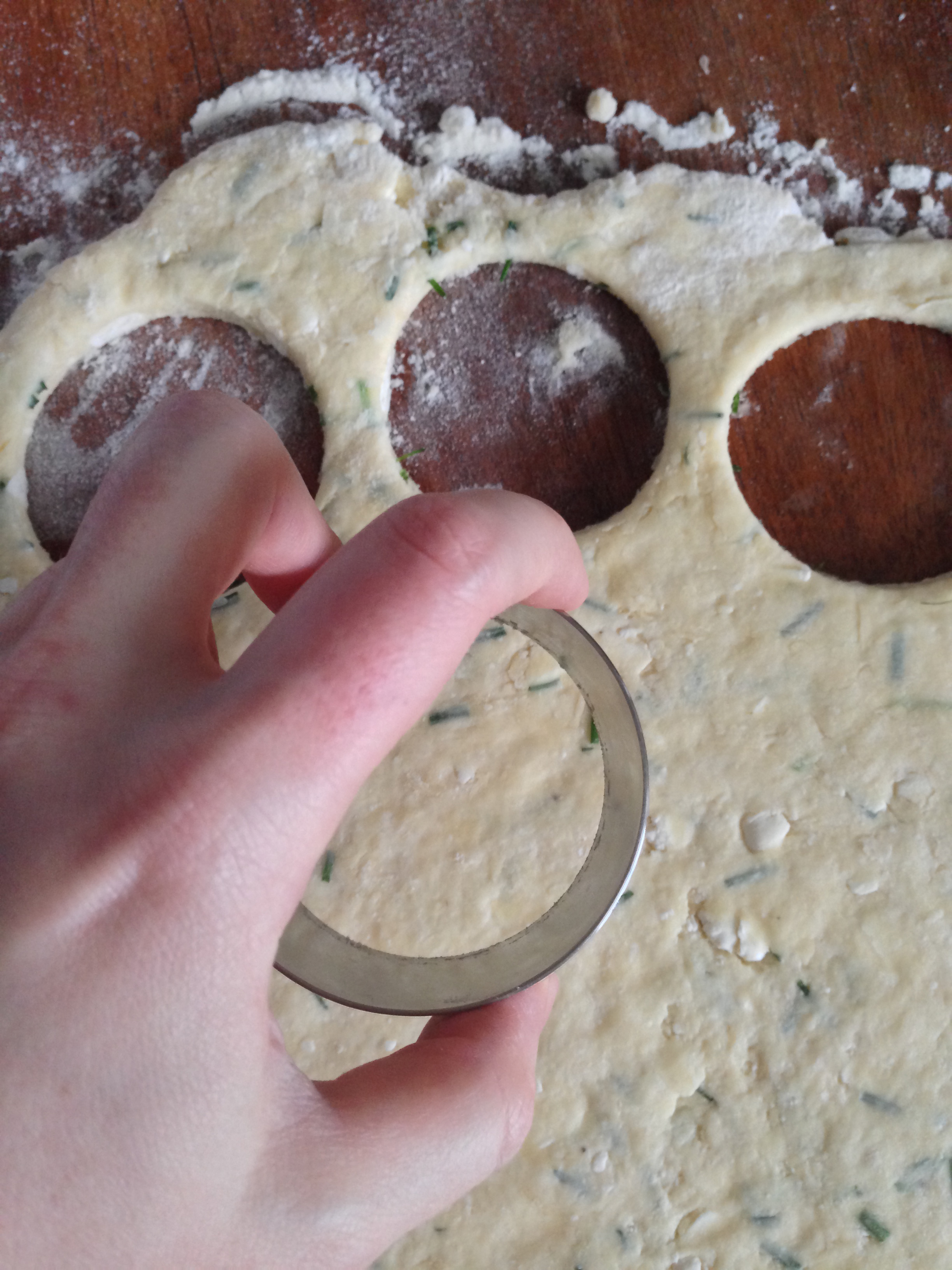 In order to cut the scones in circles you can get circular cutters like I did, or you can also simply use a proper-sized glass. It is very easy to cut this dough.