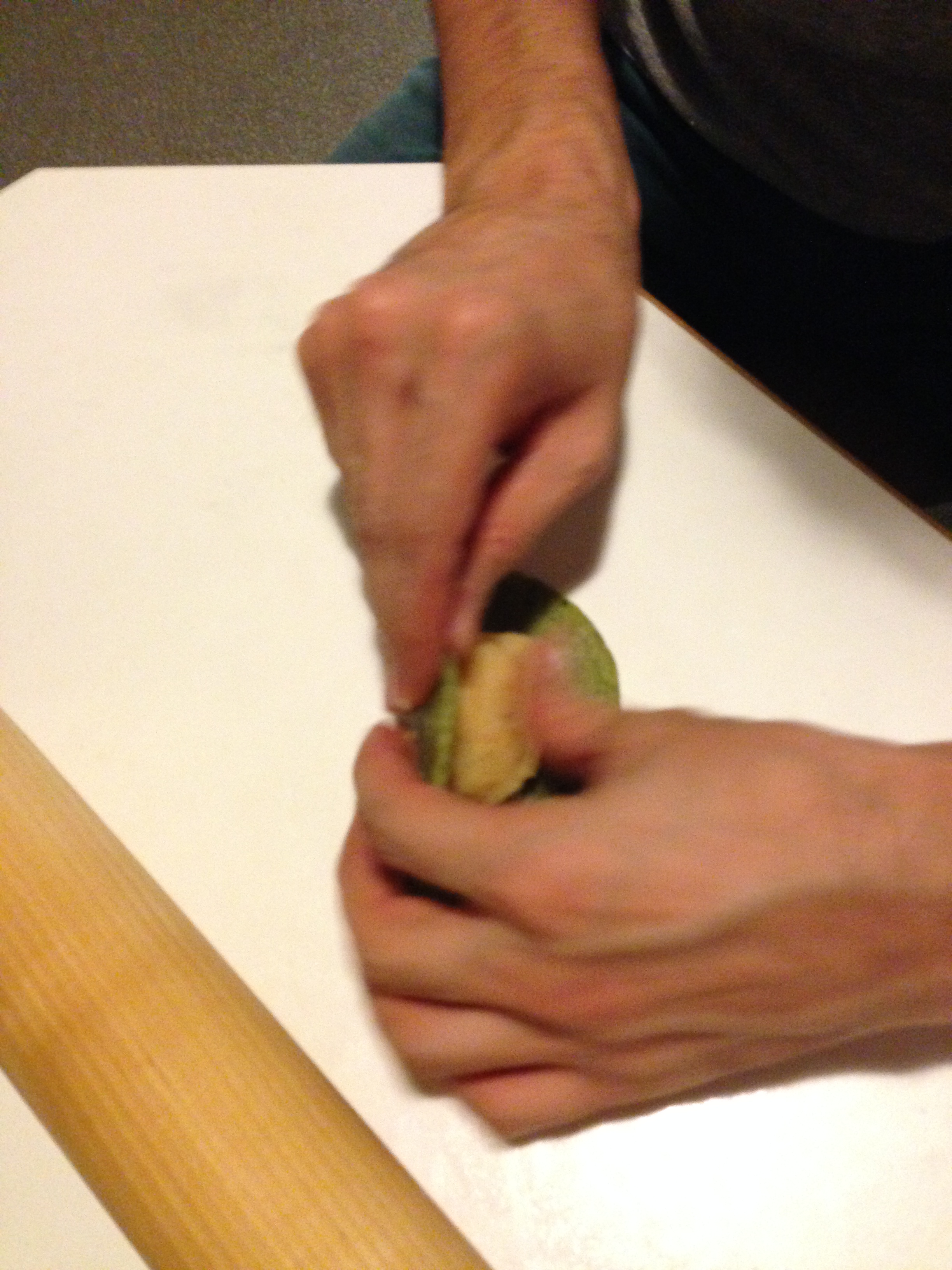 15. Put 1 tbsp filling in the middle of each piece and fold it as seen in the photos below.