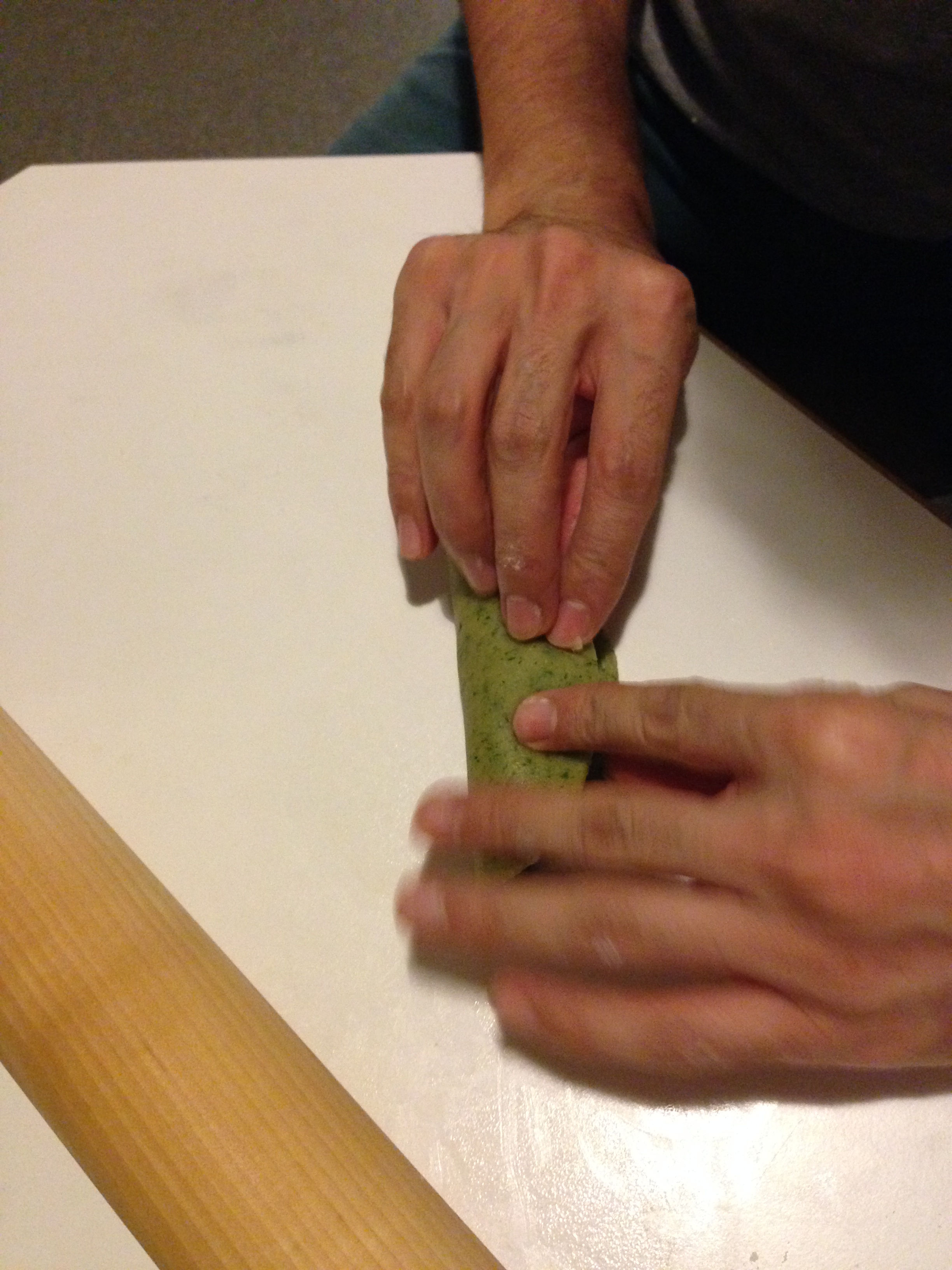 12. Take the dough out of the fridge and start rolling. If it is too hard, you can wait a little for it to soften. You can roll the whole dough in one piece or you can make smaller pieces if it is easier for you. Roll it until you have about 5 mm thickness.