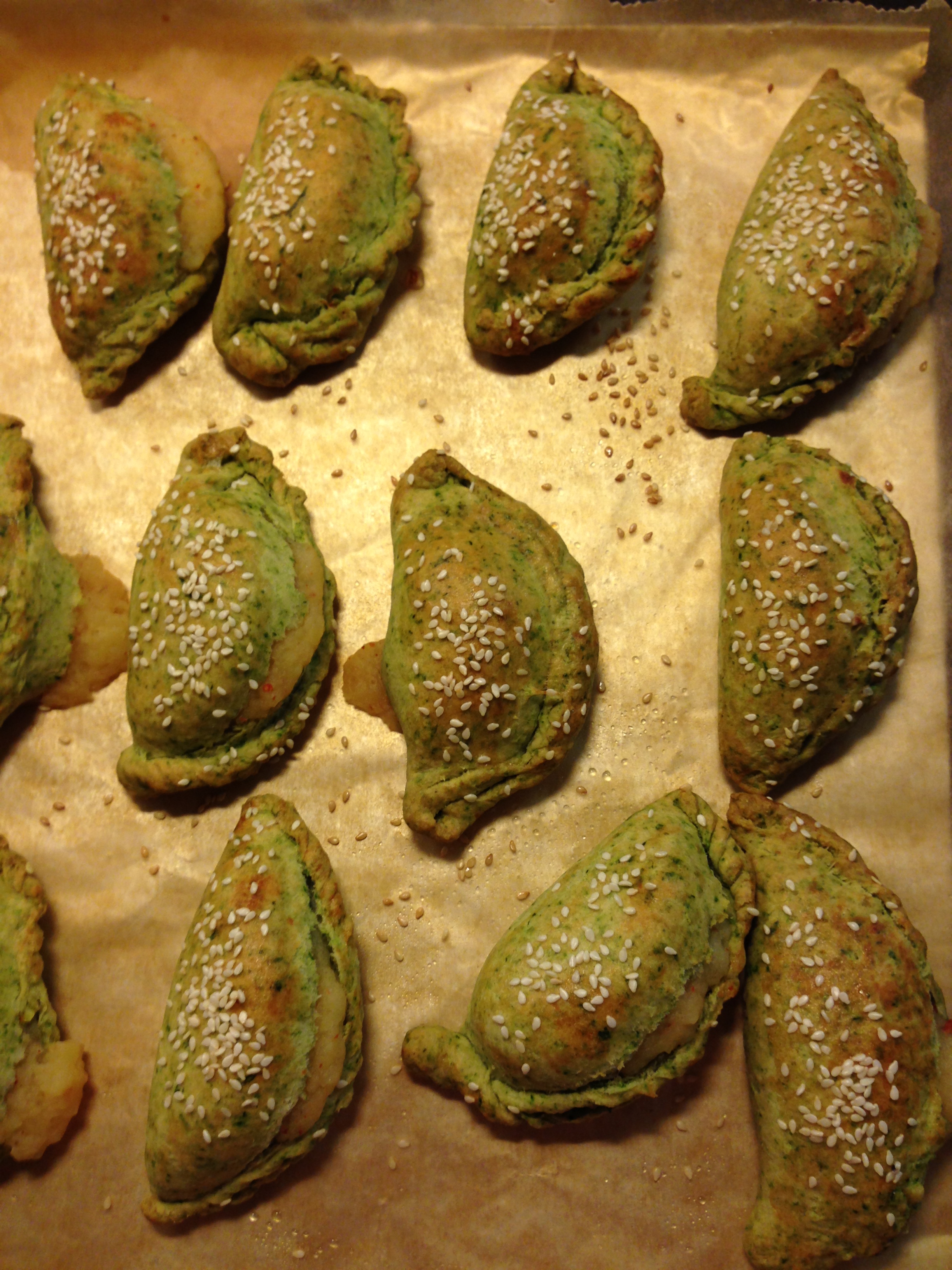So here is a green food for you.. In this version, we made it with potato filling but you can also do it with other fillings, such as feta, walnut, parsley etc…