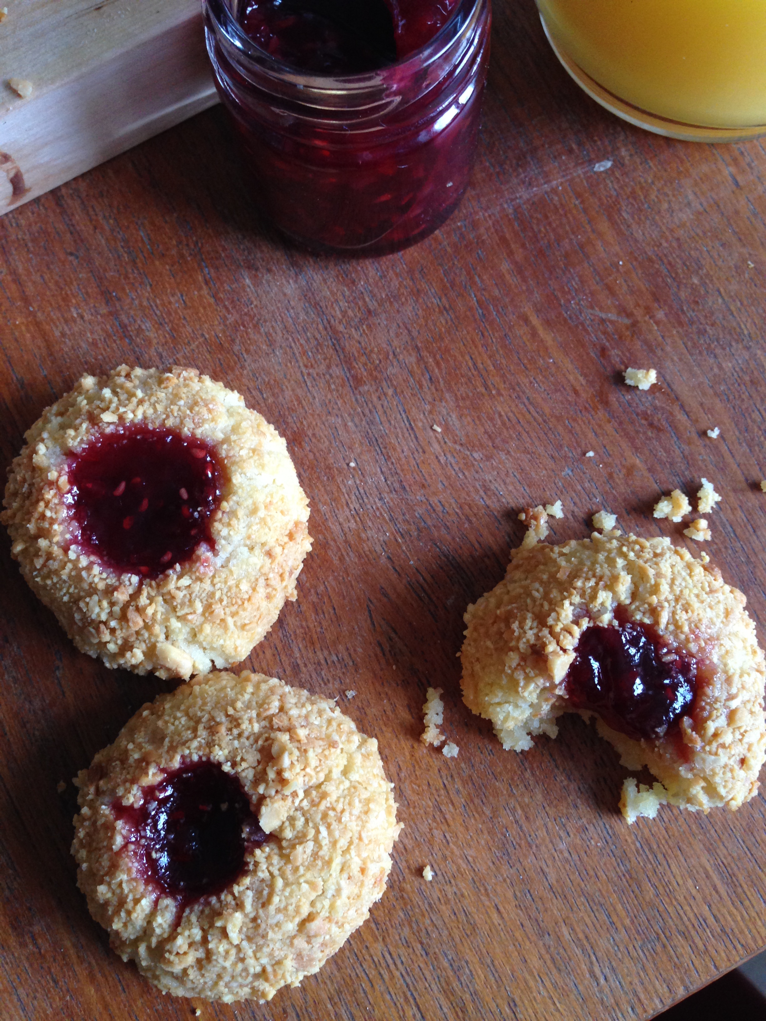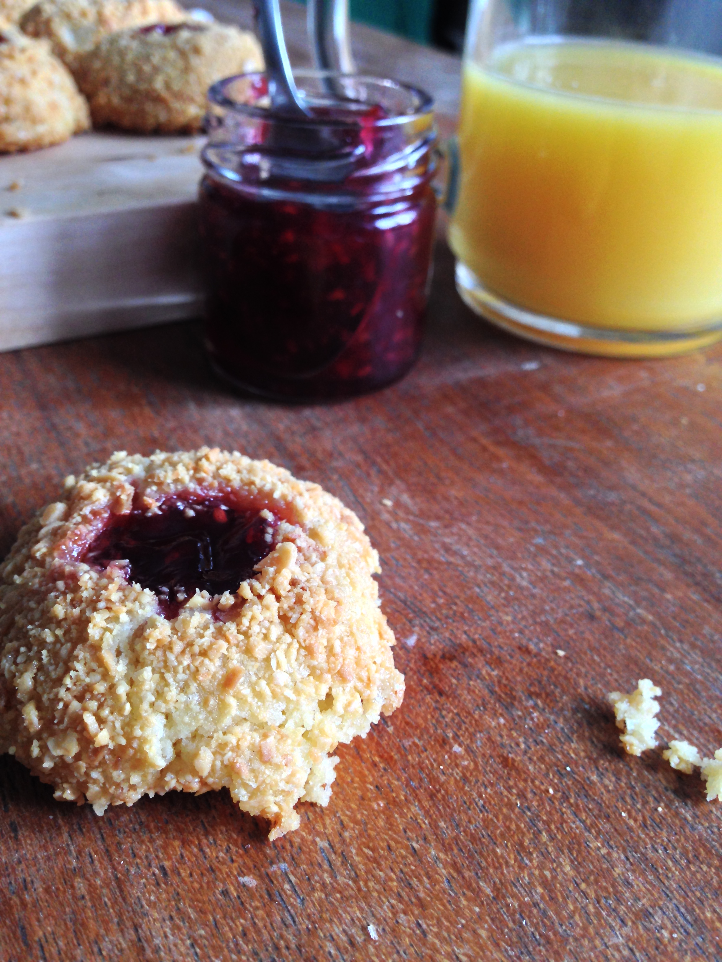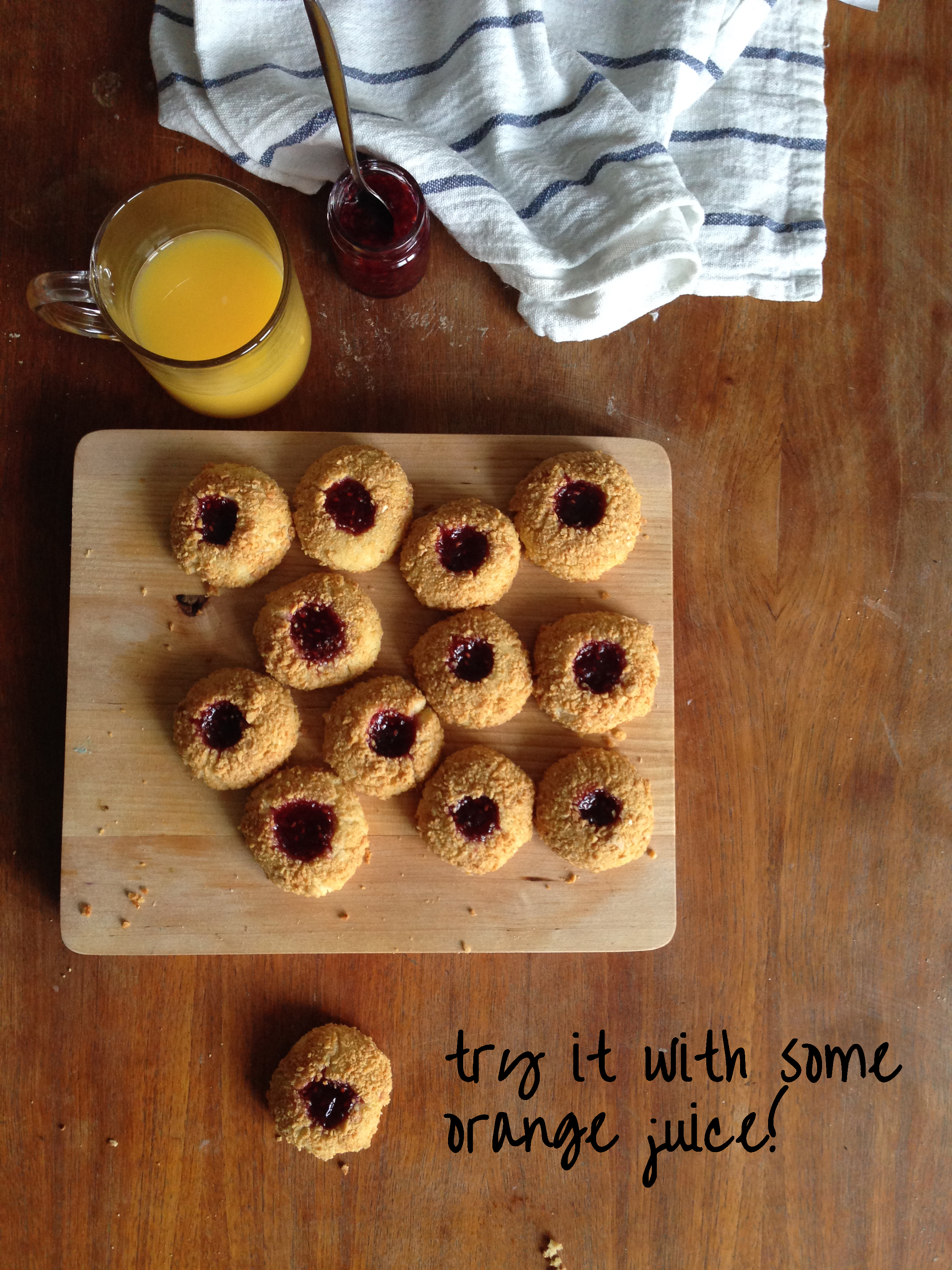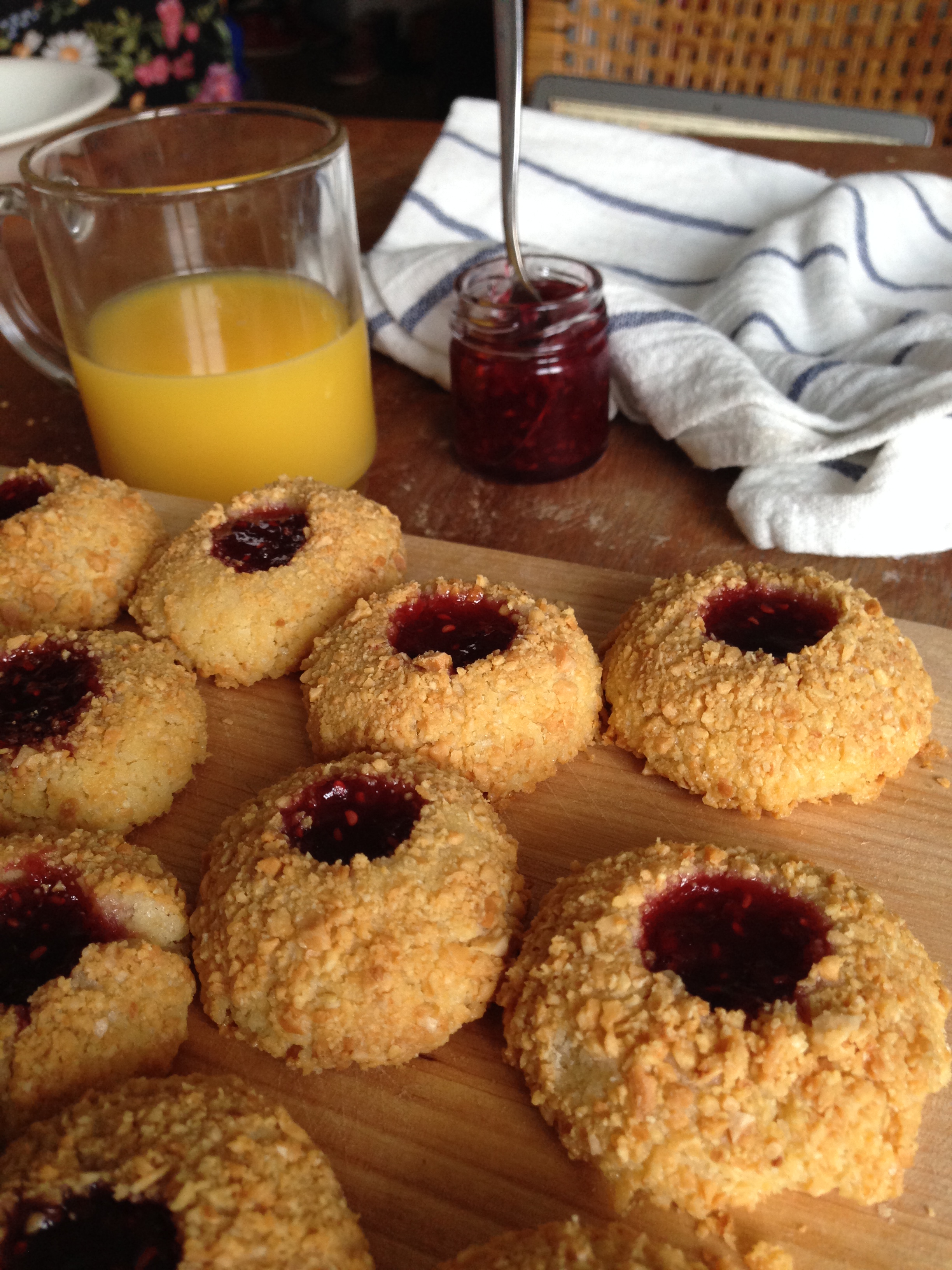 I adopted this recipe from the wonder woman of baking, Stephanie Jaworski’s Joy of Baking website. Until then I had tried a few thumbprint cookie recipes, but in every single one of them I ended up with some monstrous or weird looking cookie. Either the cookies spread too much and the jam spread away equally, or the jam and cookie dough united in a very strange way etc.. But this one, as usual, is full proof.