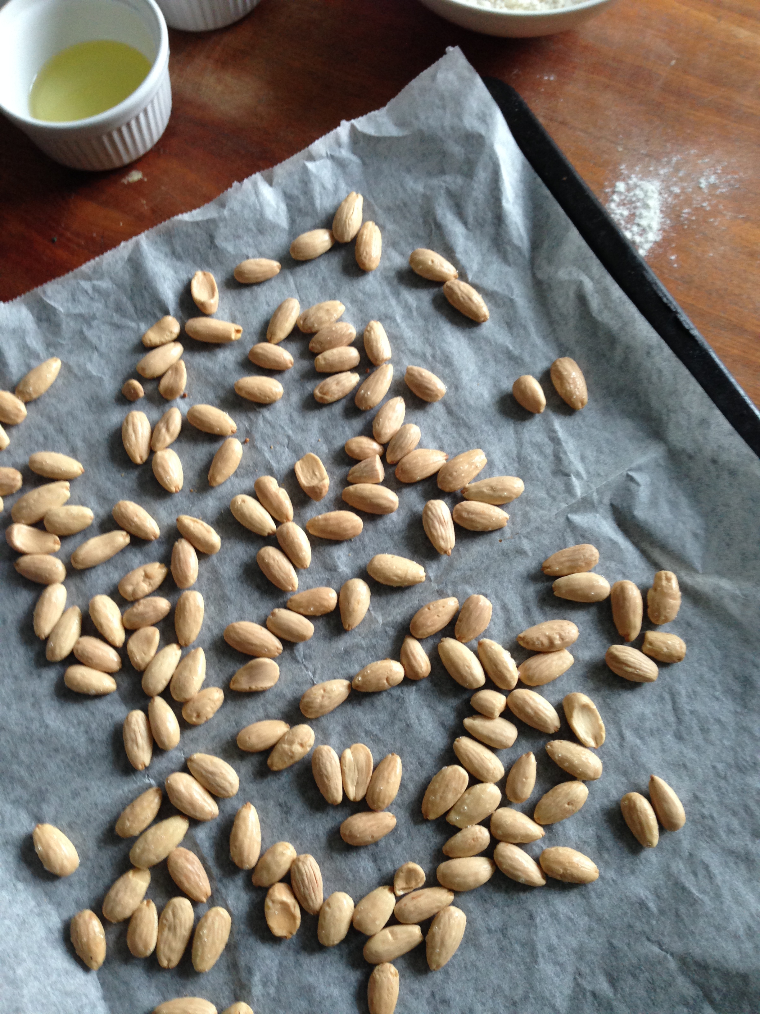 This recipe calls for toasted almonds. Of course you can also bake these cookies without toasting the almonds, but the quick, 15 minutes of almond processing is something that I recommend you not to miss: toasting brings out the flavour of almonds very intensively. It also gives a very nice colour, which will be eventually the dominant colour of the outer shell of your cookies. So do toast them…