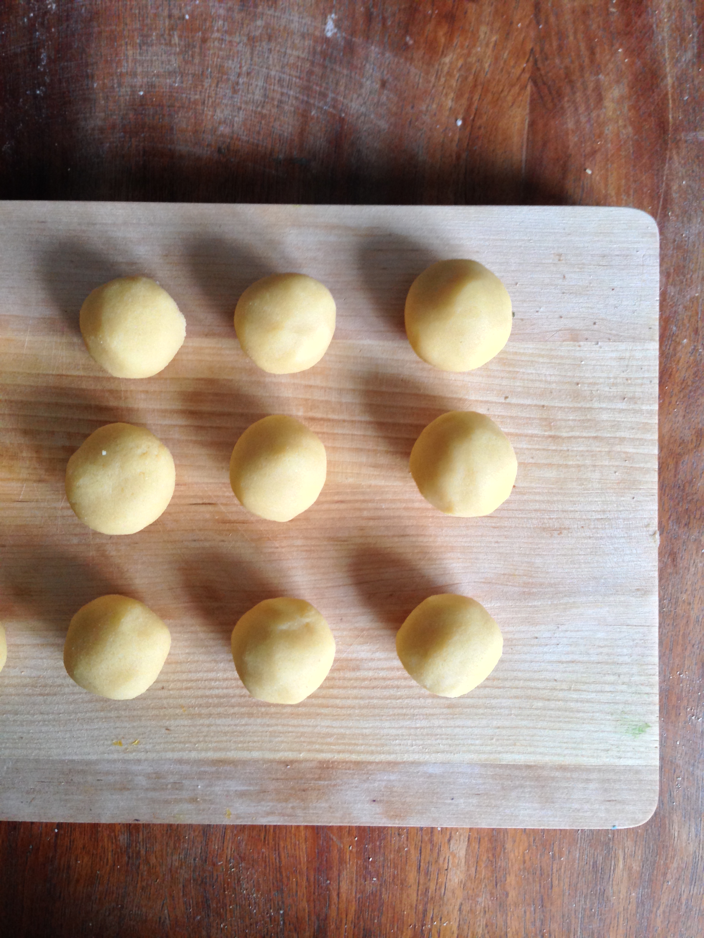 9. Start making balls from your dough. I take 1 tablespoon from the dough using my measuring spoon and turn into a ball. Well, as you can see they are not 100% equal in size but it’s ok, I am not a factory after all.