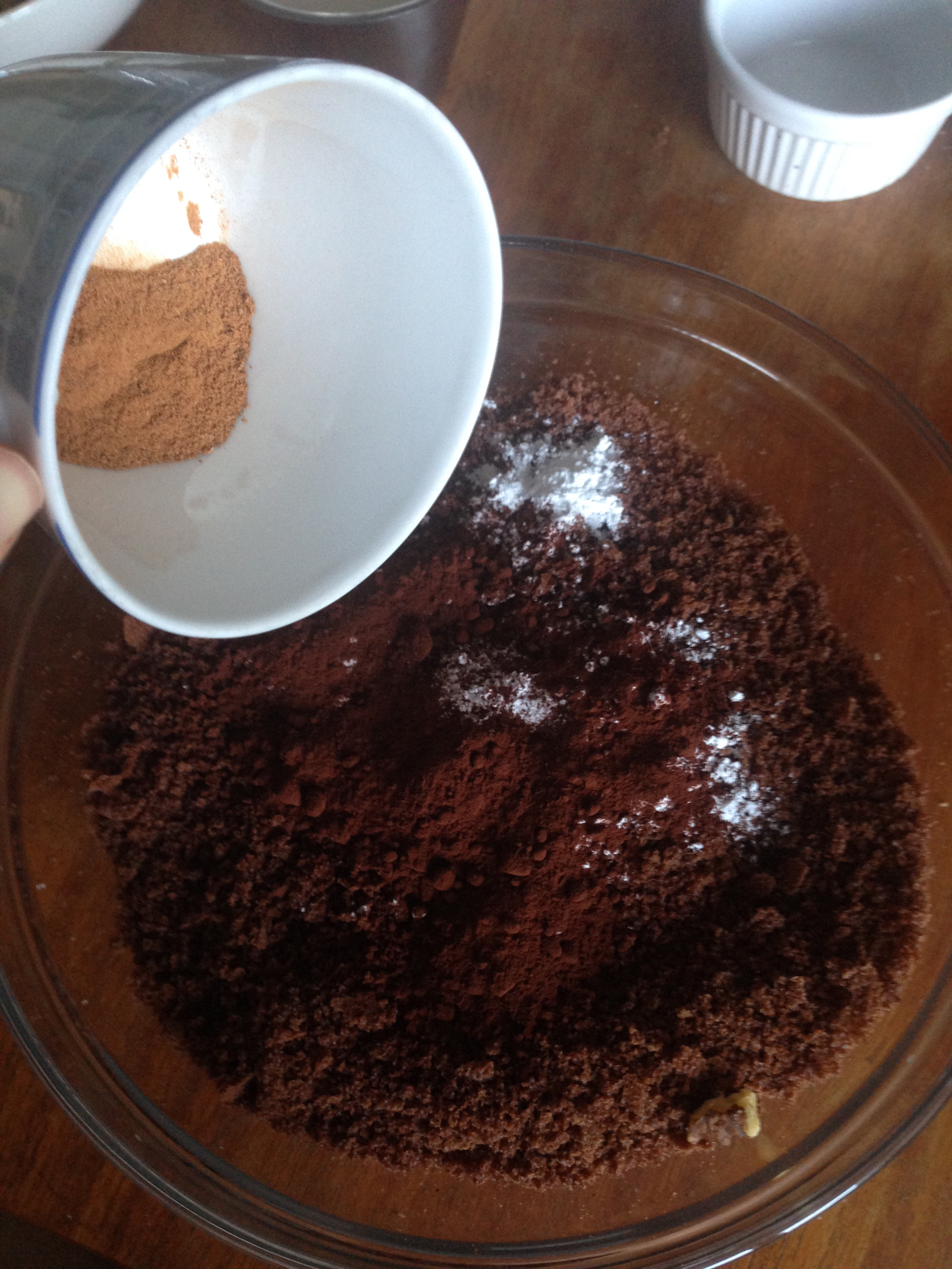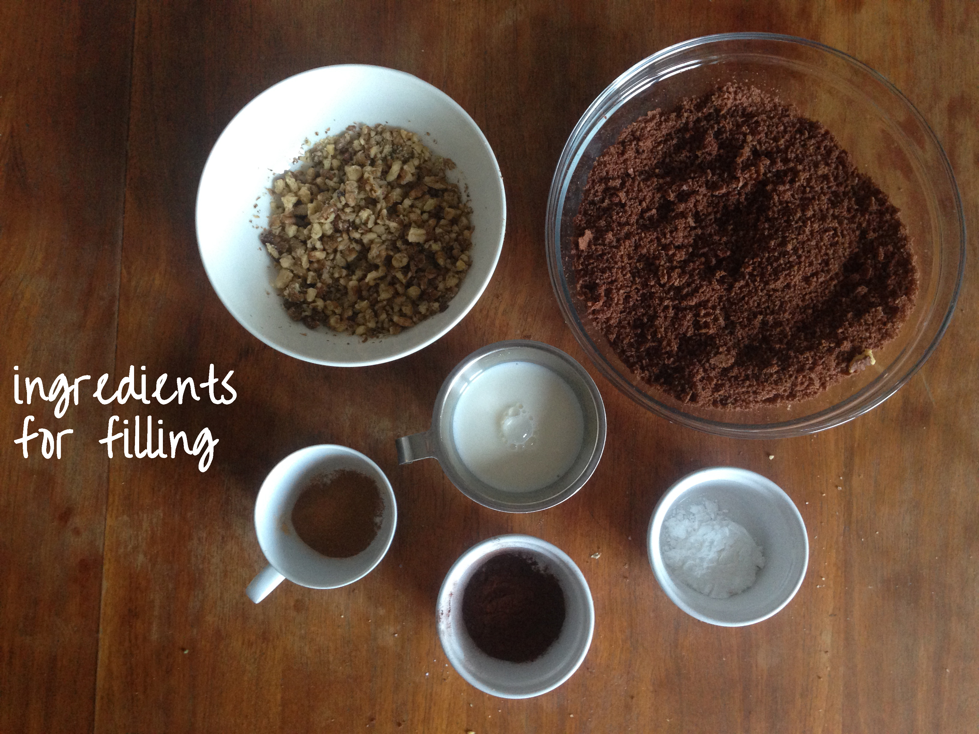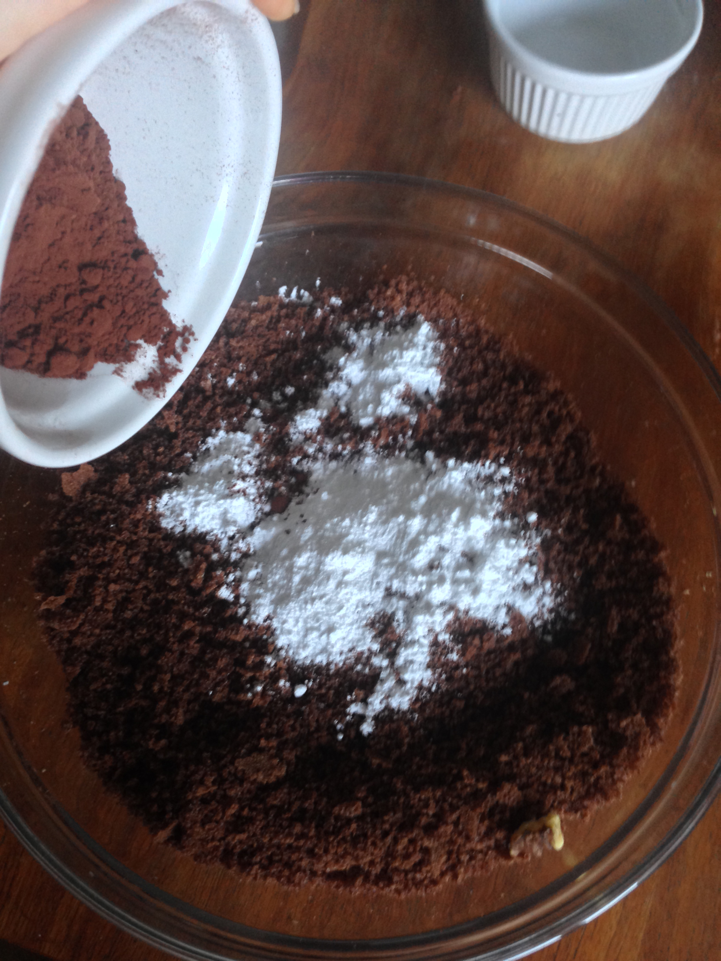 1/2 chocolate or cocoa cake, crumbled into small pieces (I used half of a basic cake made with 22cm diameter mould. If you want to use the whole cake, just double all the proportions.)