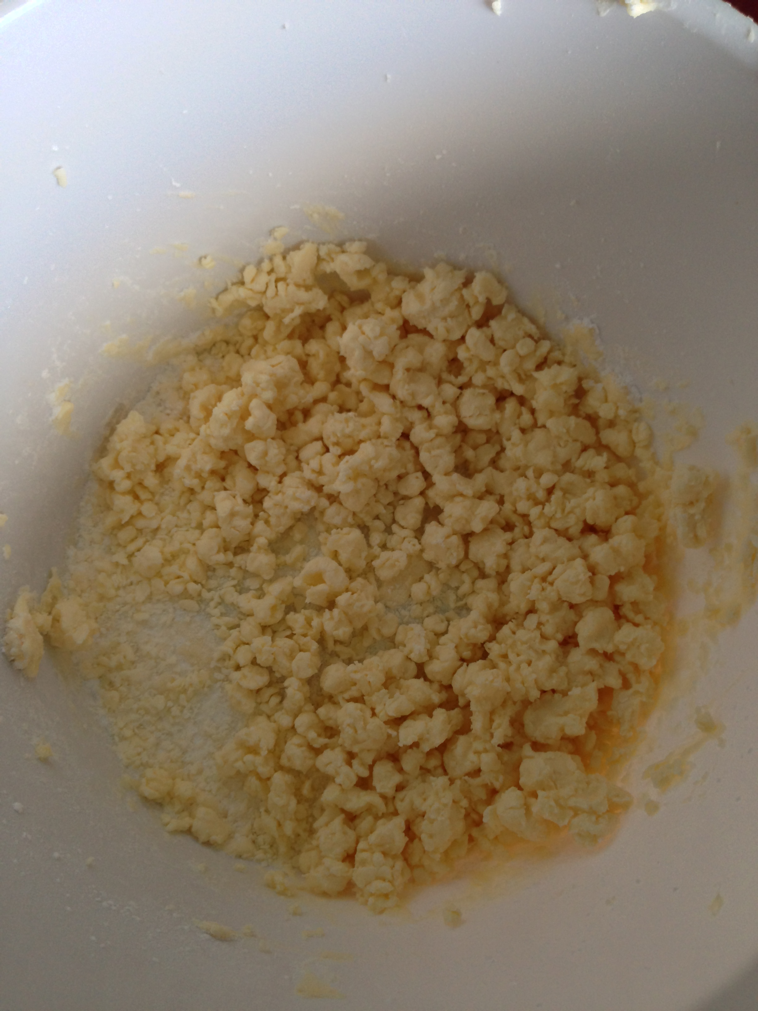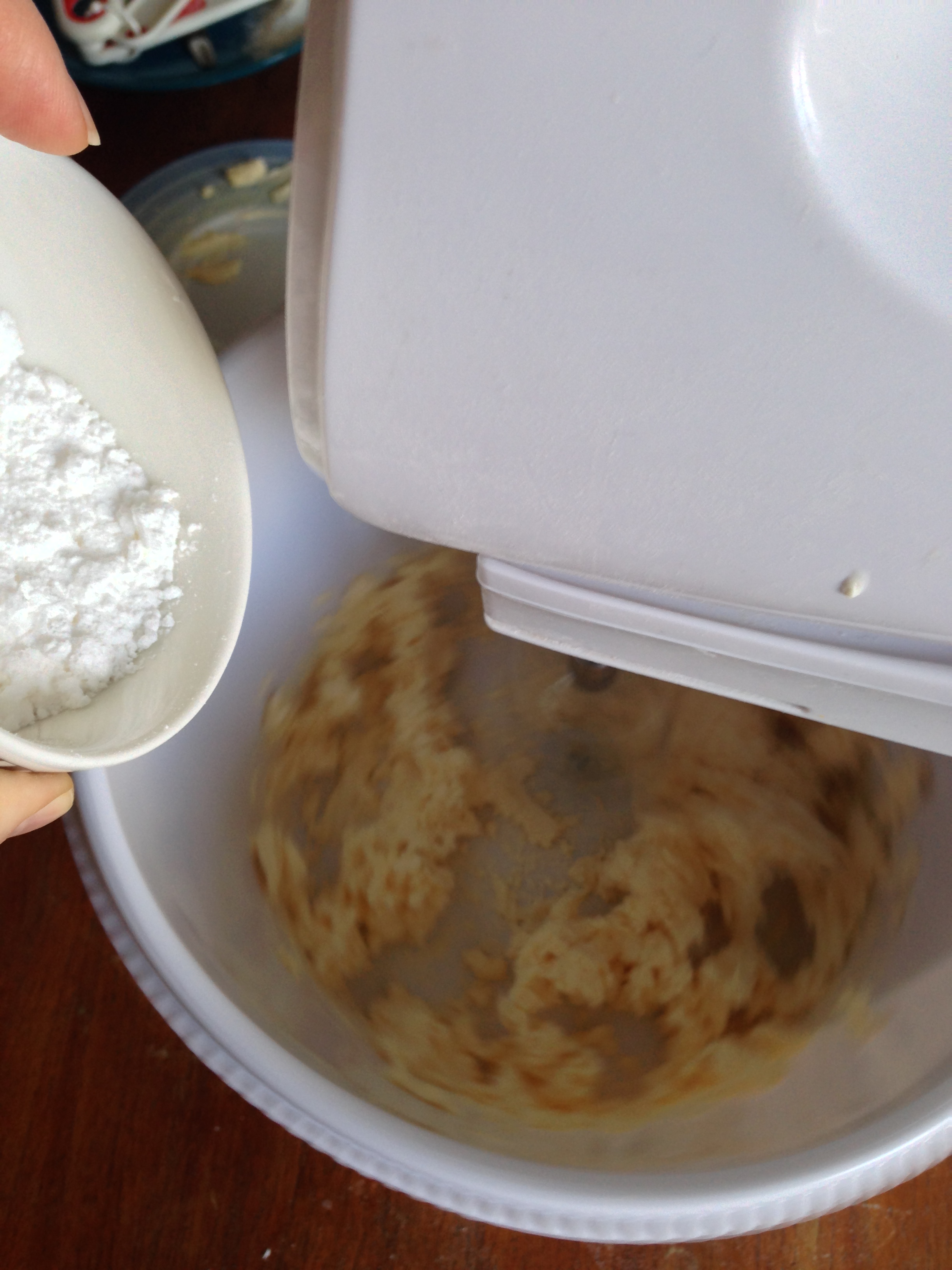 2. Add powdered sugar and continue mixing it until it gets a little crumbly.
