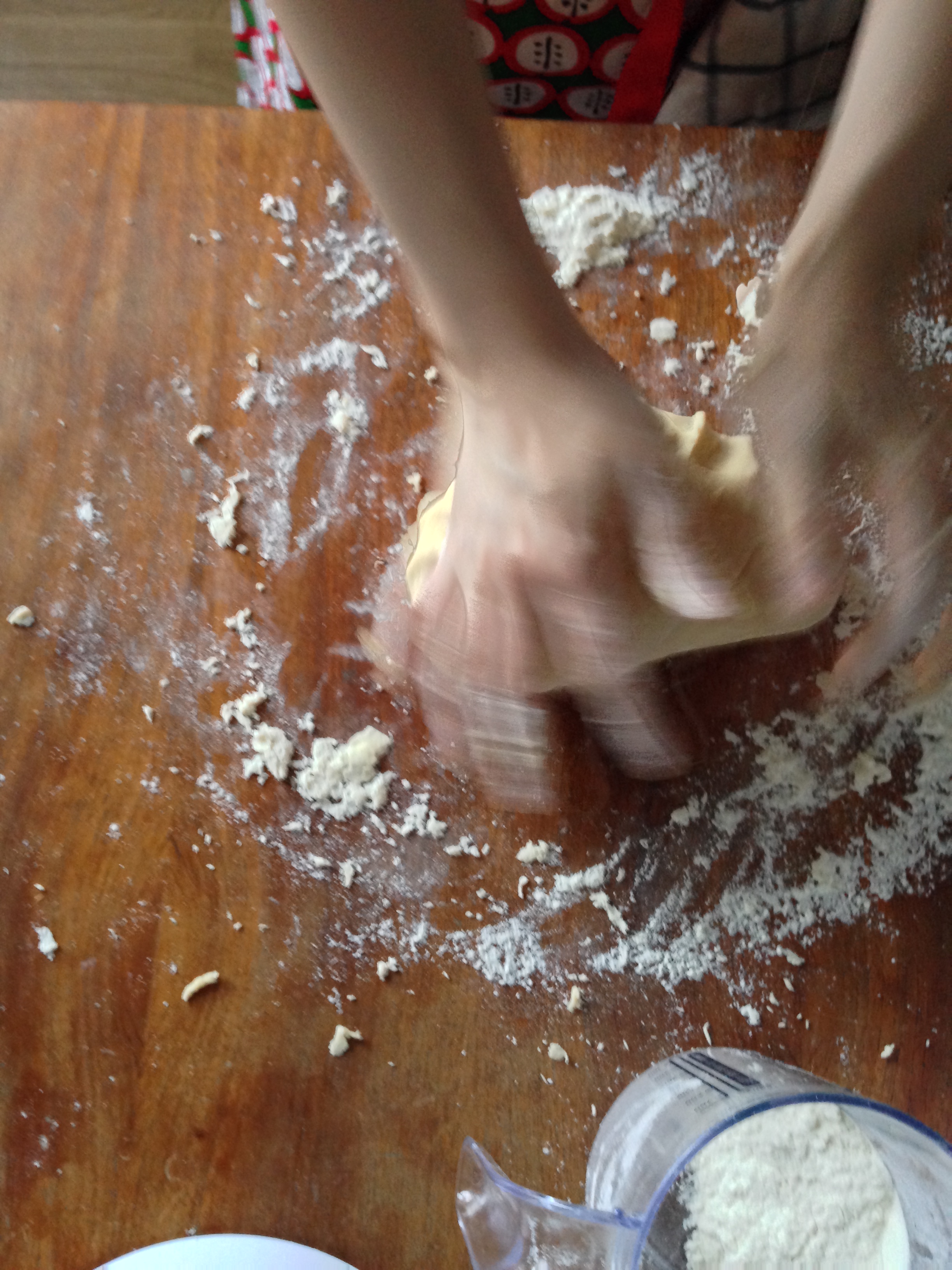 5. Start adding flour in batches and start kneading in the meantime. You will see that you might end up using just 3 cups of flour. It depends a lot on the ingredients you use, I mean brands really.