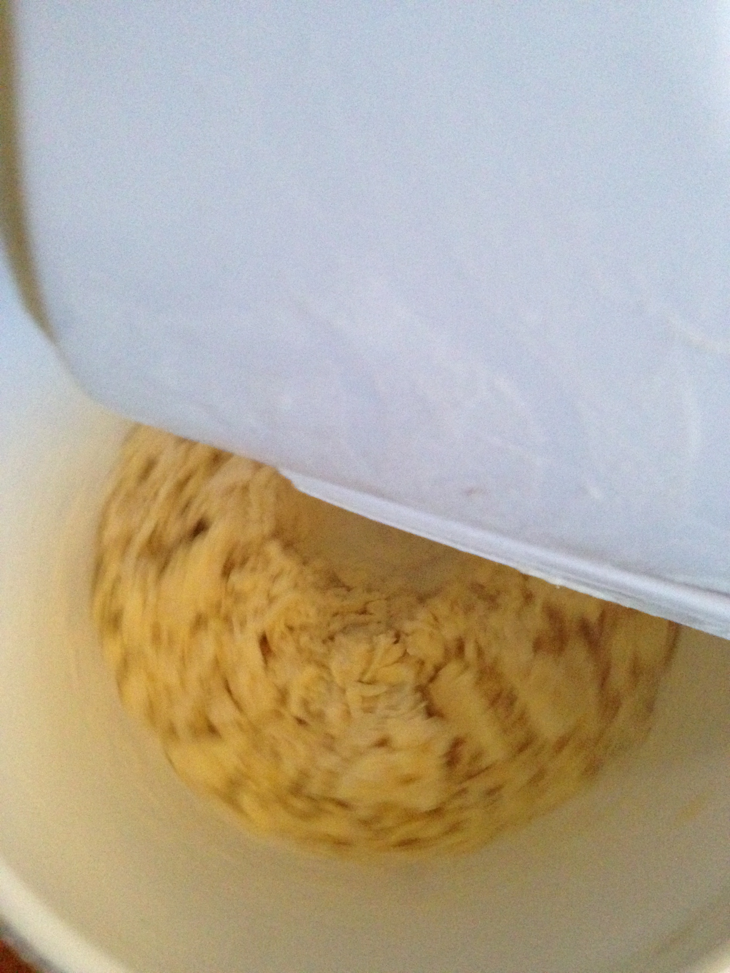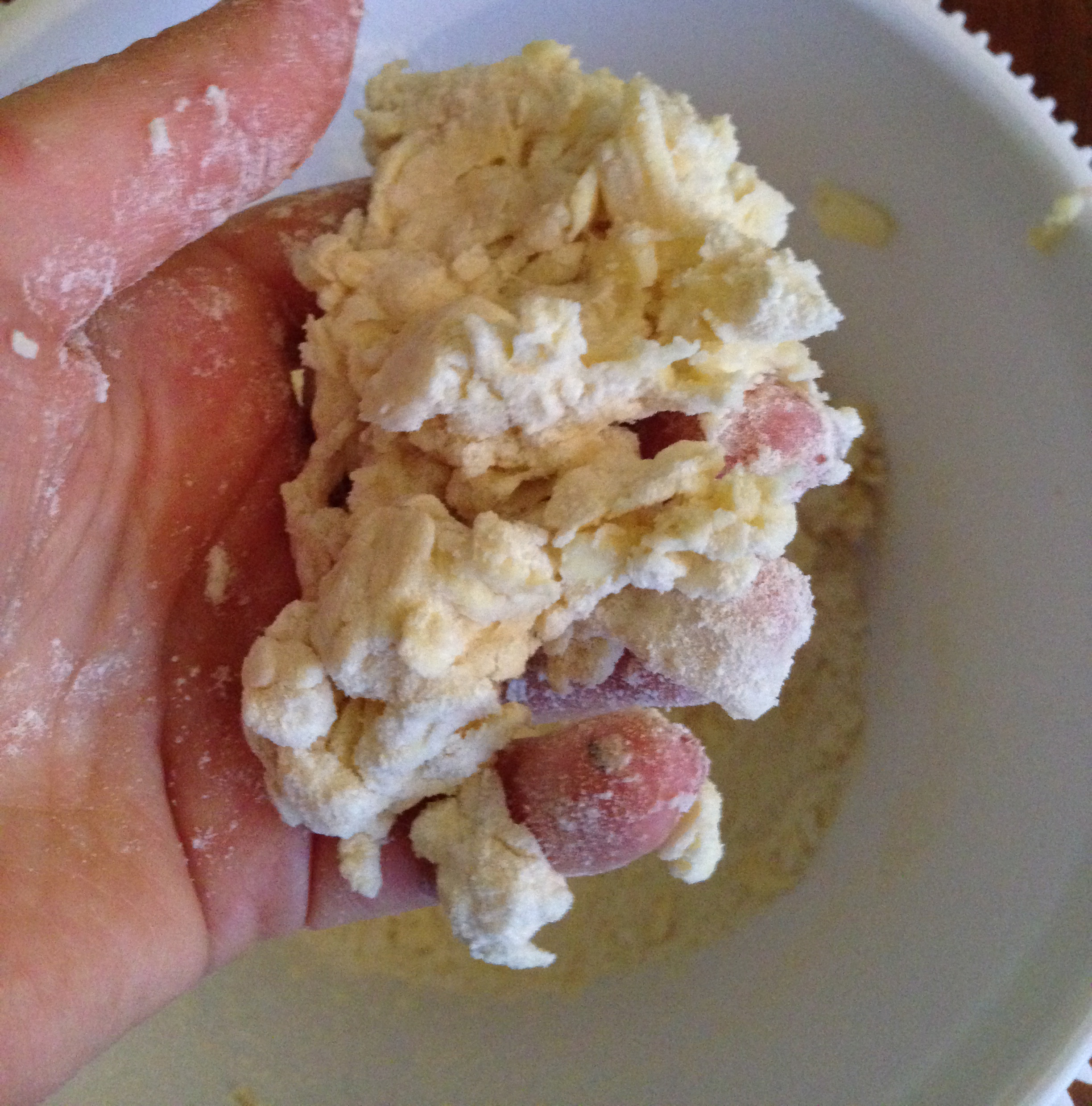 3. Take out the dough and put on a floured surface, do not knead it, just put it together in a ball form. Cover it with stretch film and put in the fridge for at least 1 hour. Chilling prevents it to shrink too much while baking.