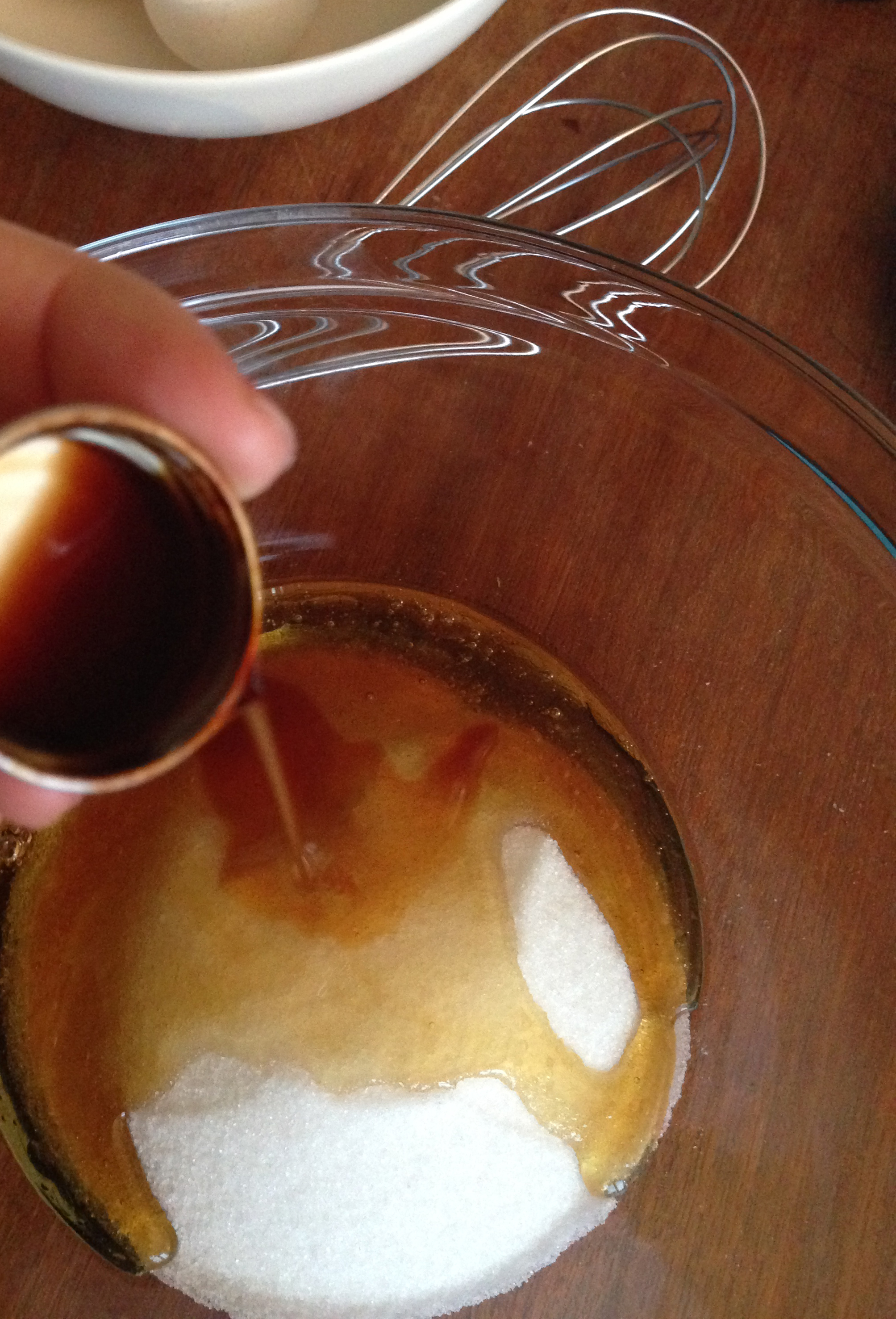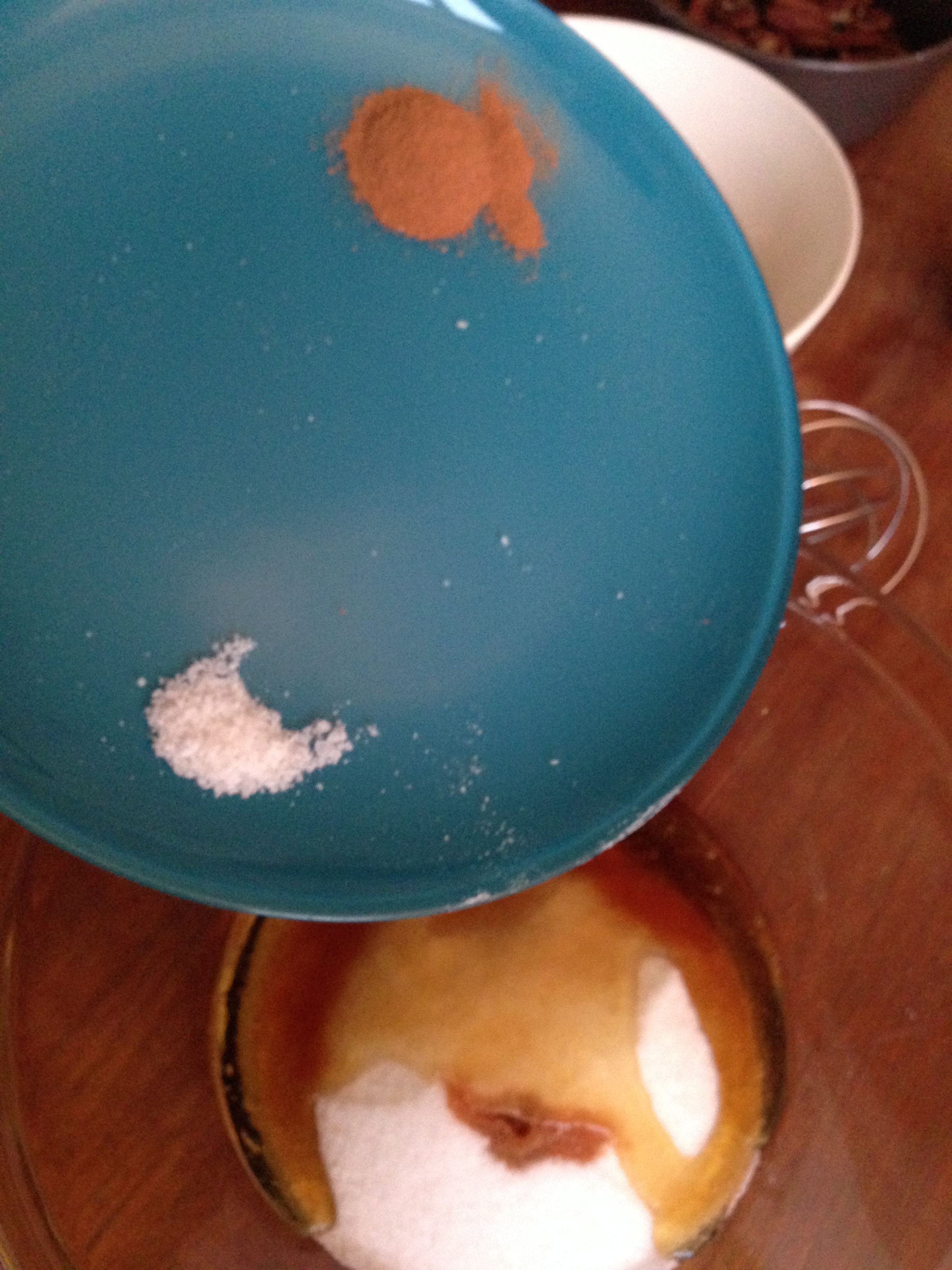 3. In a medium bowl, put sugar, syrup, vanilla extract, cinnamon and salt. Whisk the ingredients well.