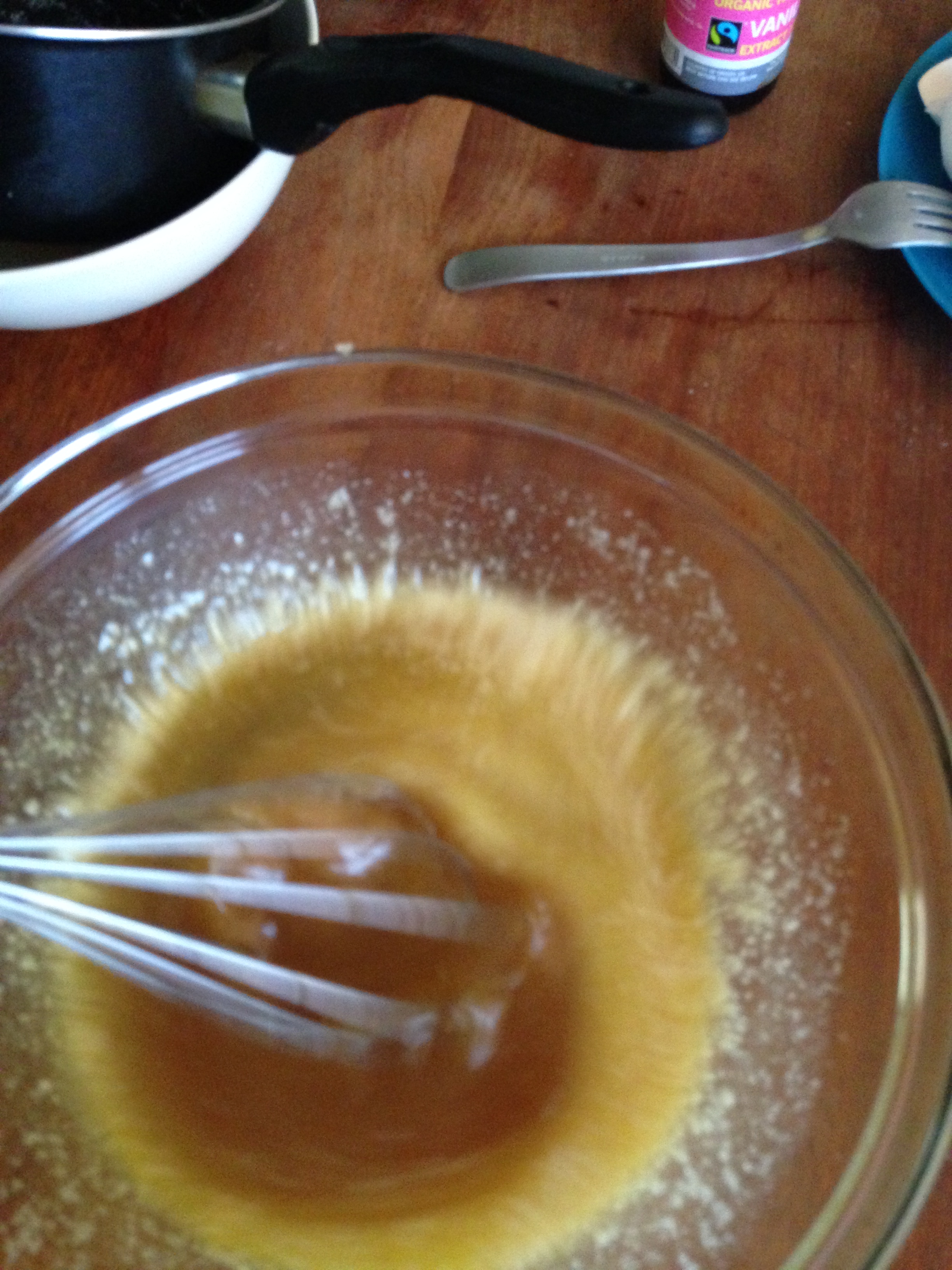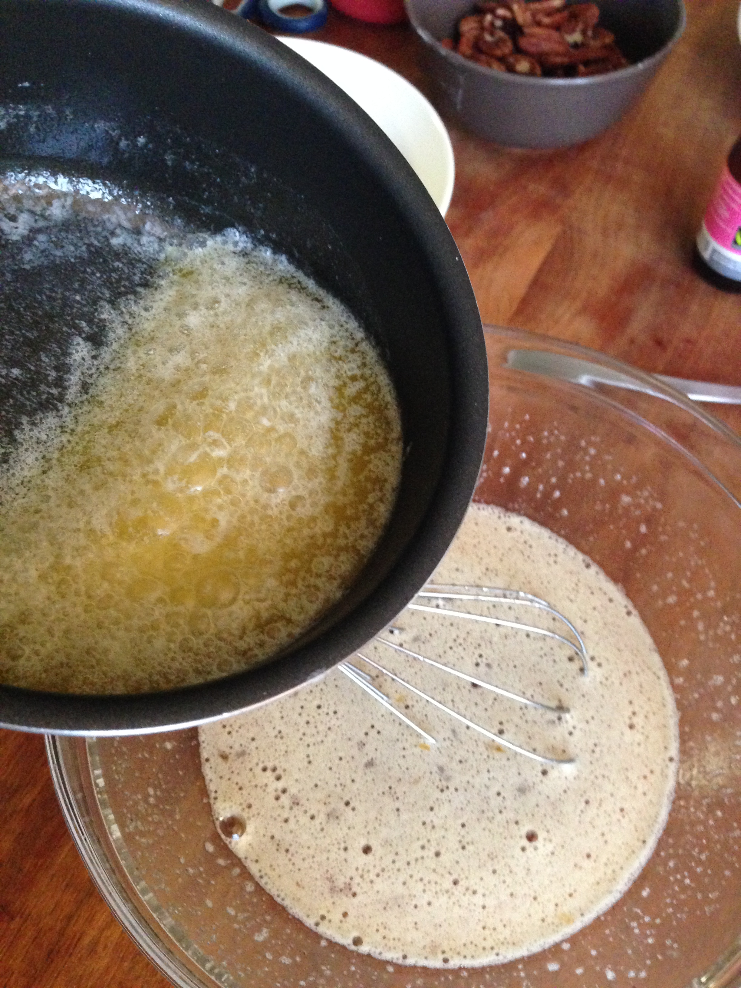 5. Add melted butter to the mixture. Whisk again until smooth.