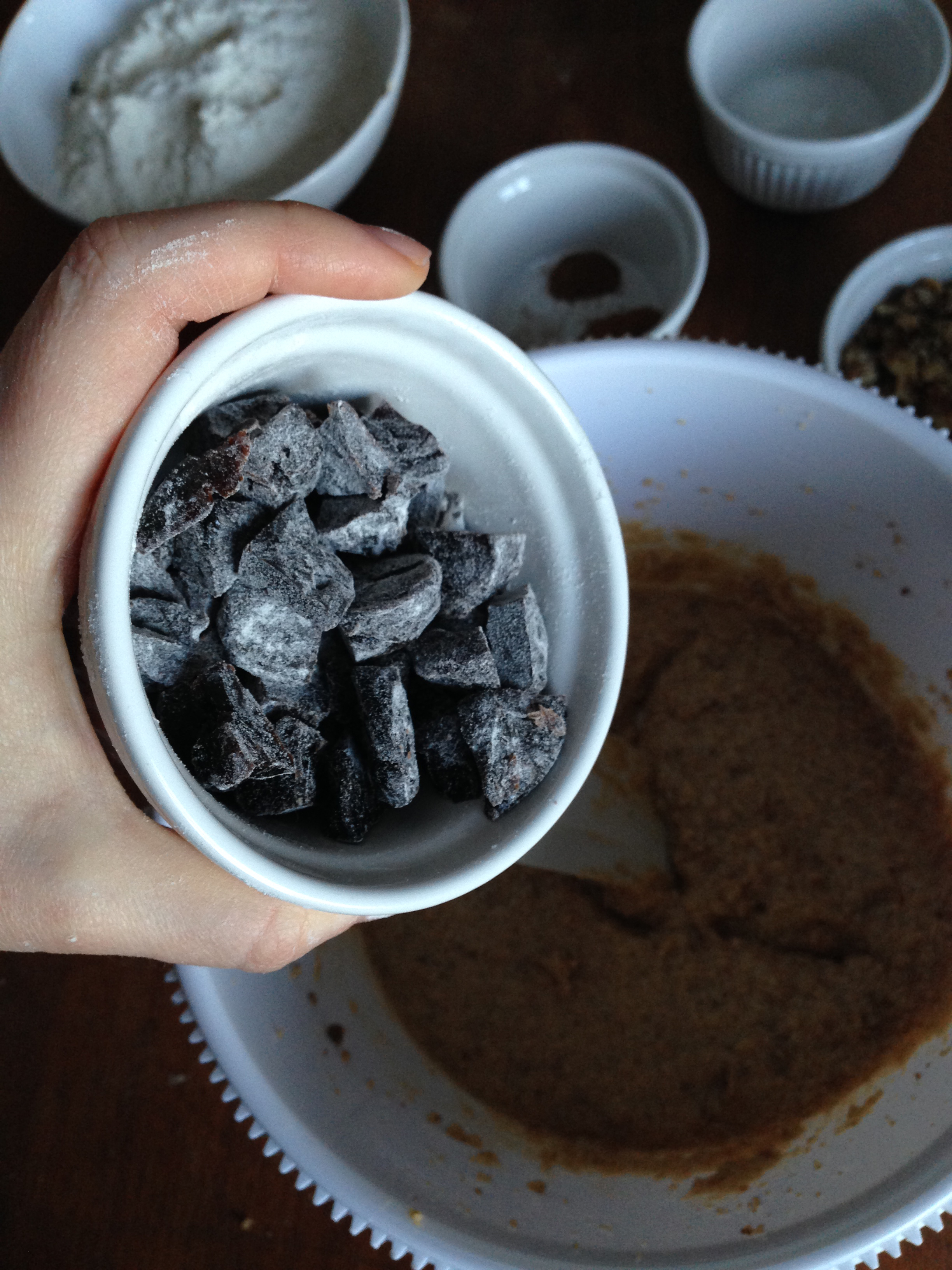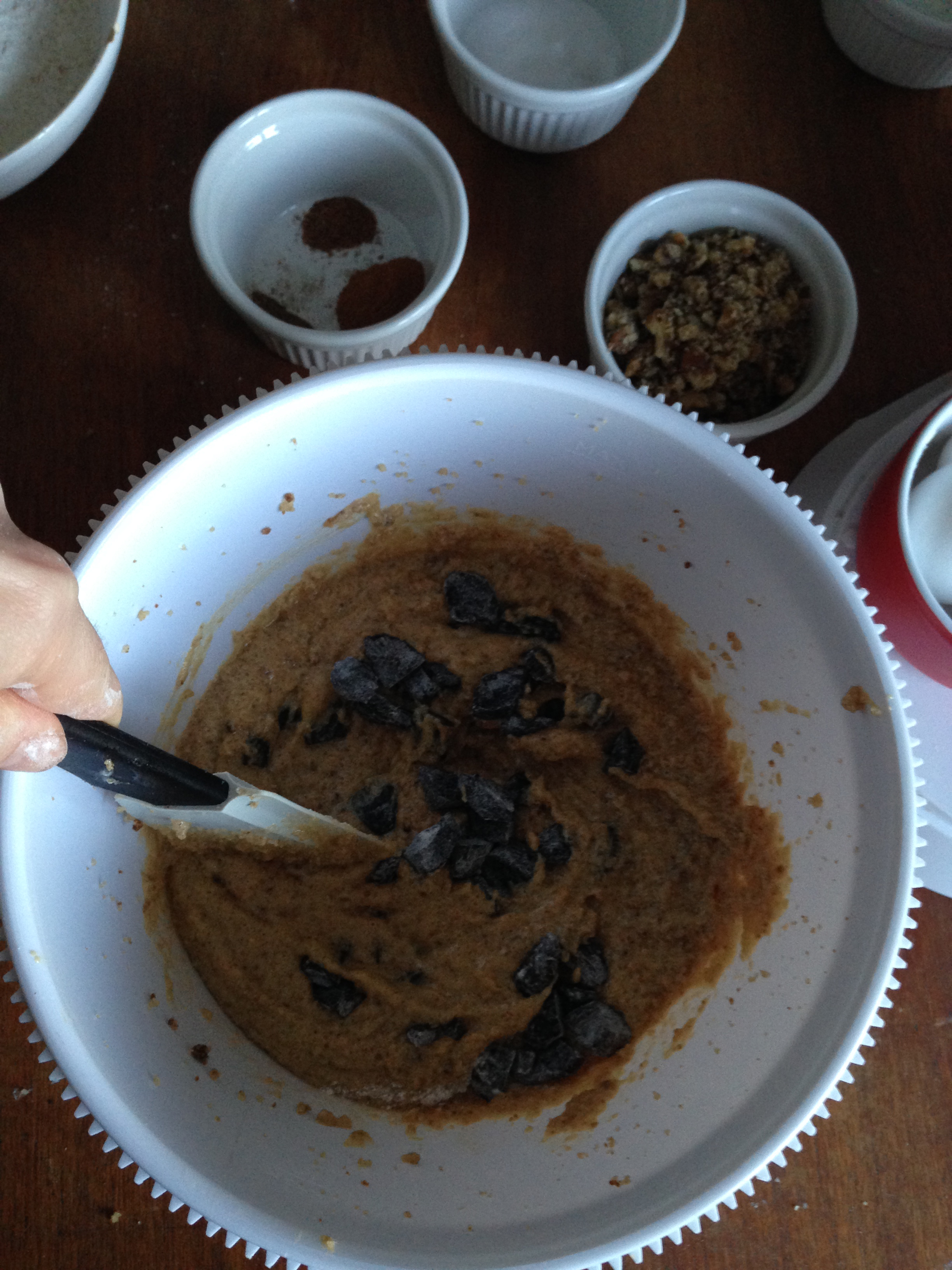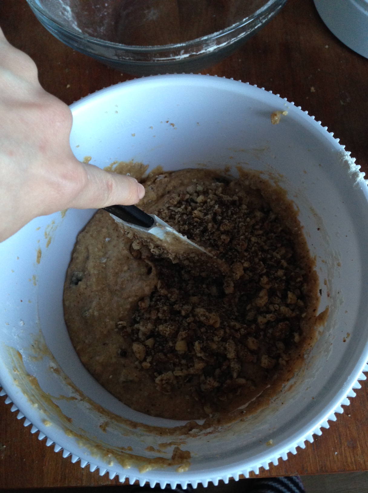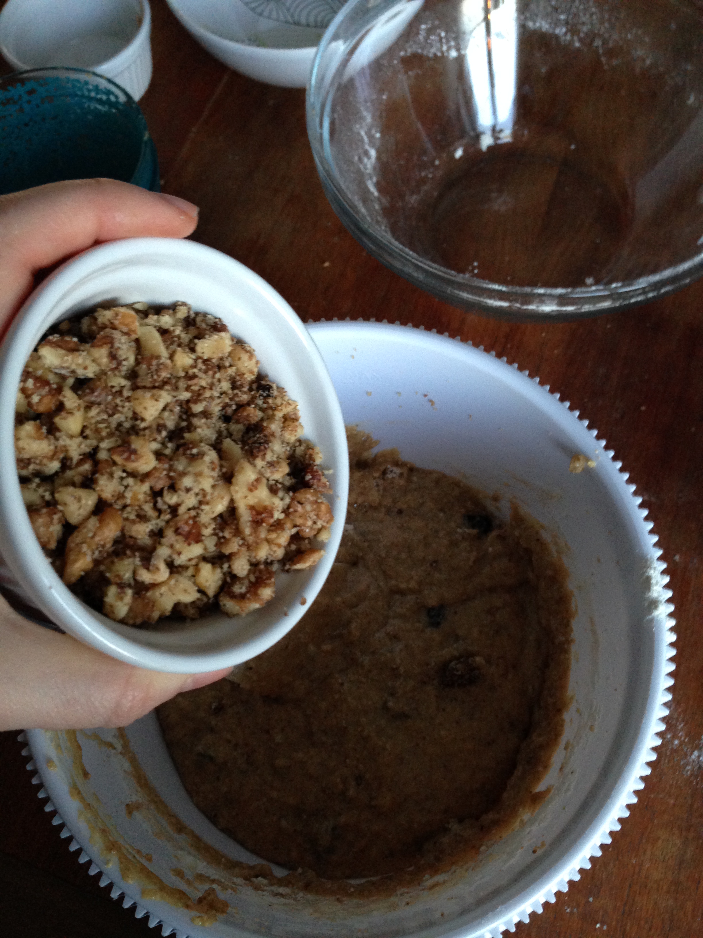 8. Finally, add walnuts (or any nuts you are using) and fold them in the batter just until they are totally blended.