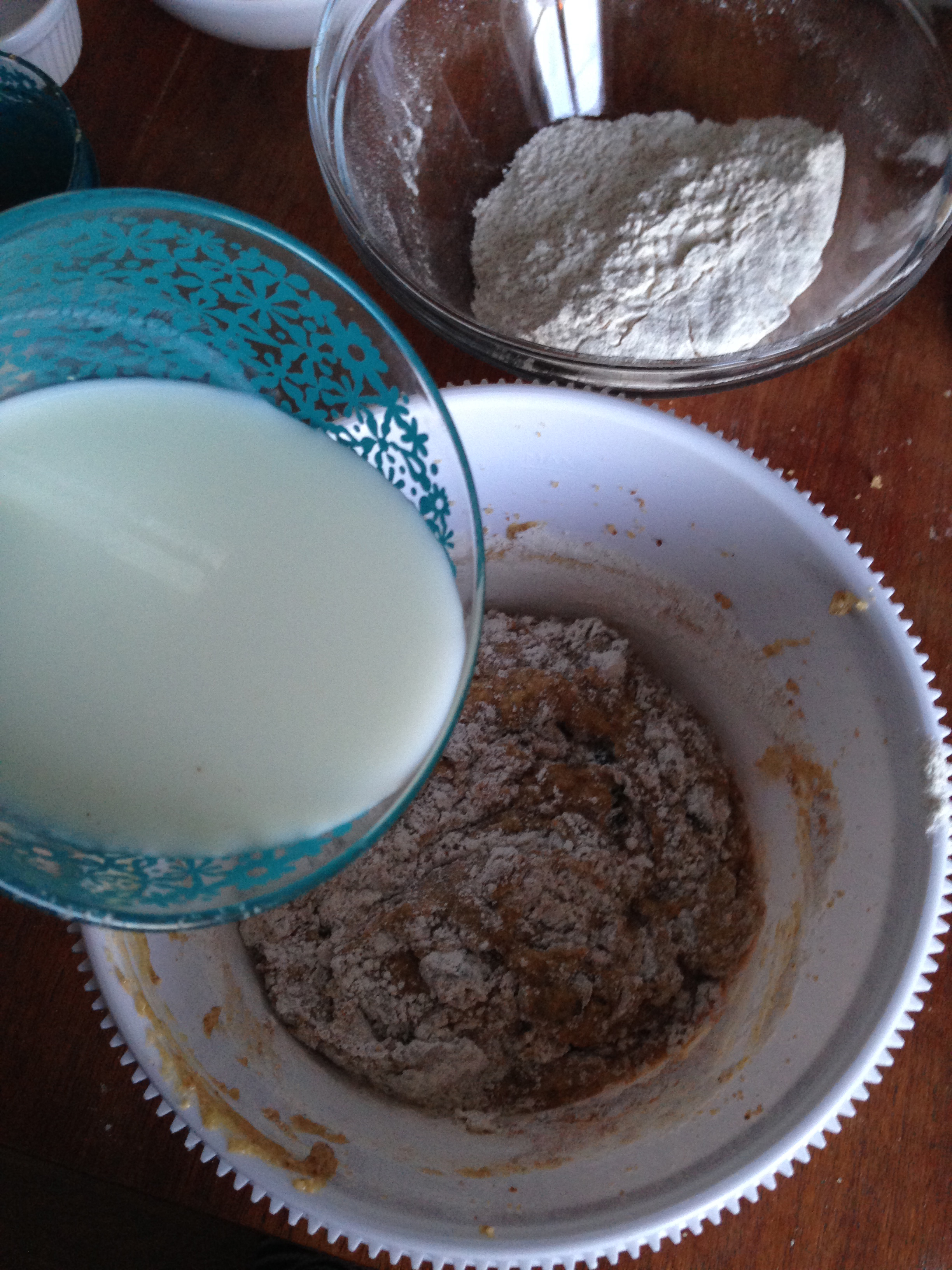 7. Add buttermilk to the mixture and fold until it is fully incorporated.