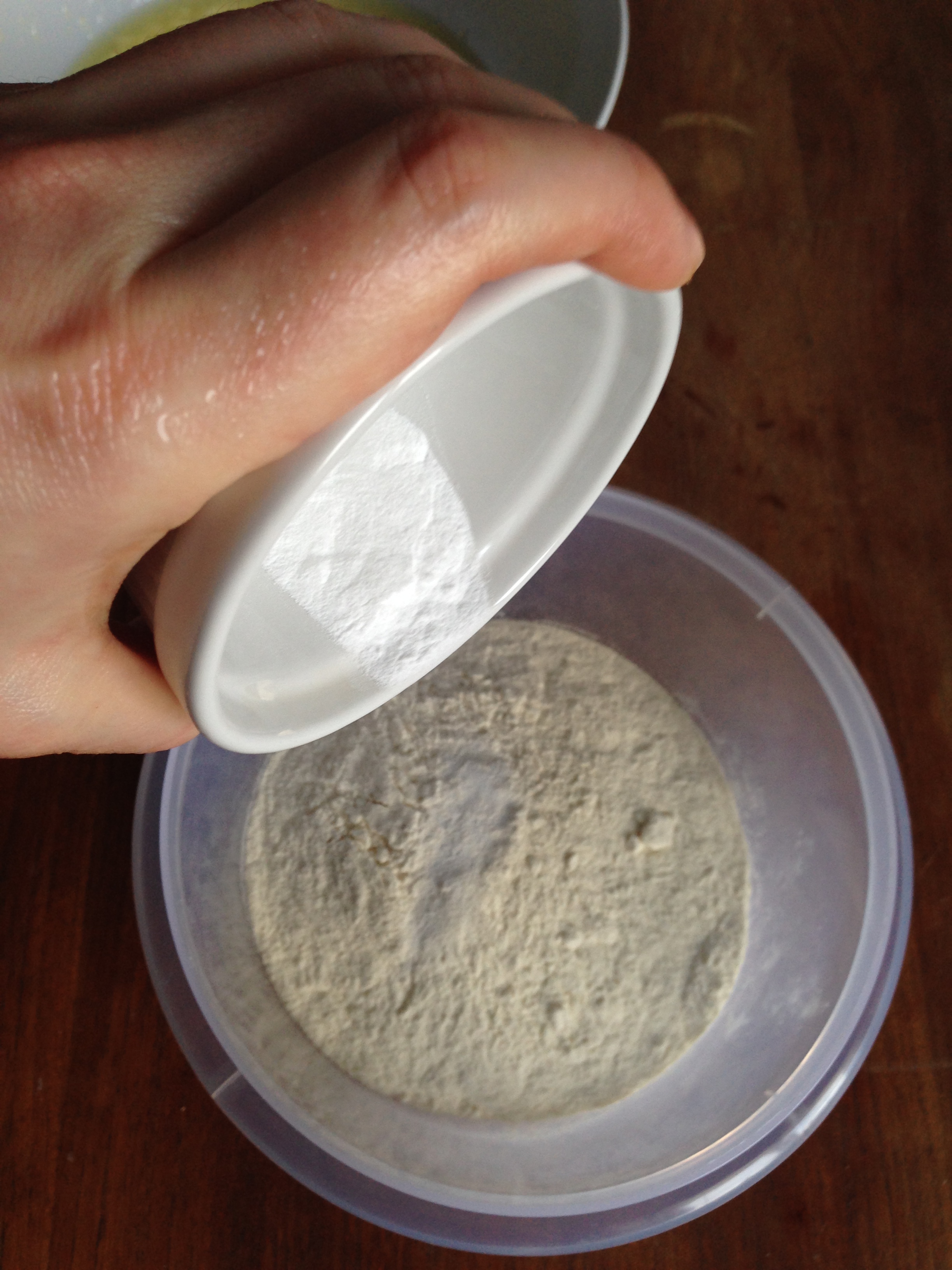2. In another medium bowl, put flour, baking powder, salt and brown sugar and whisk them.