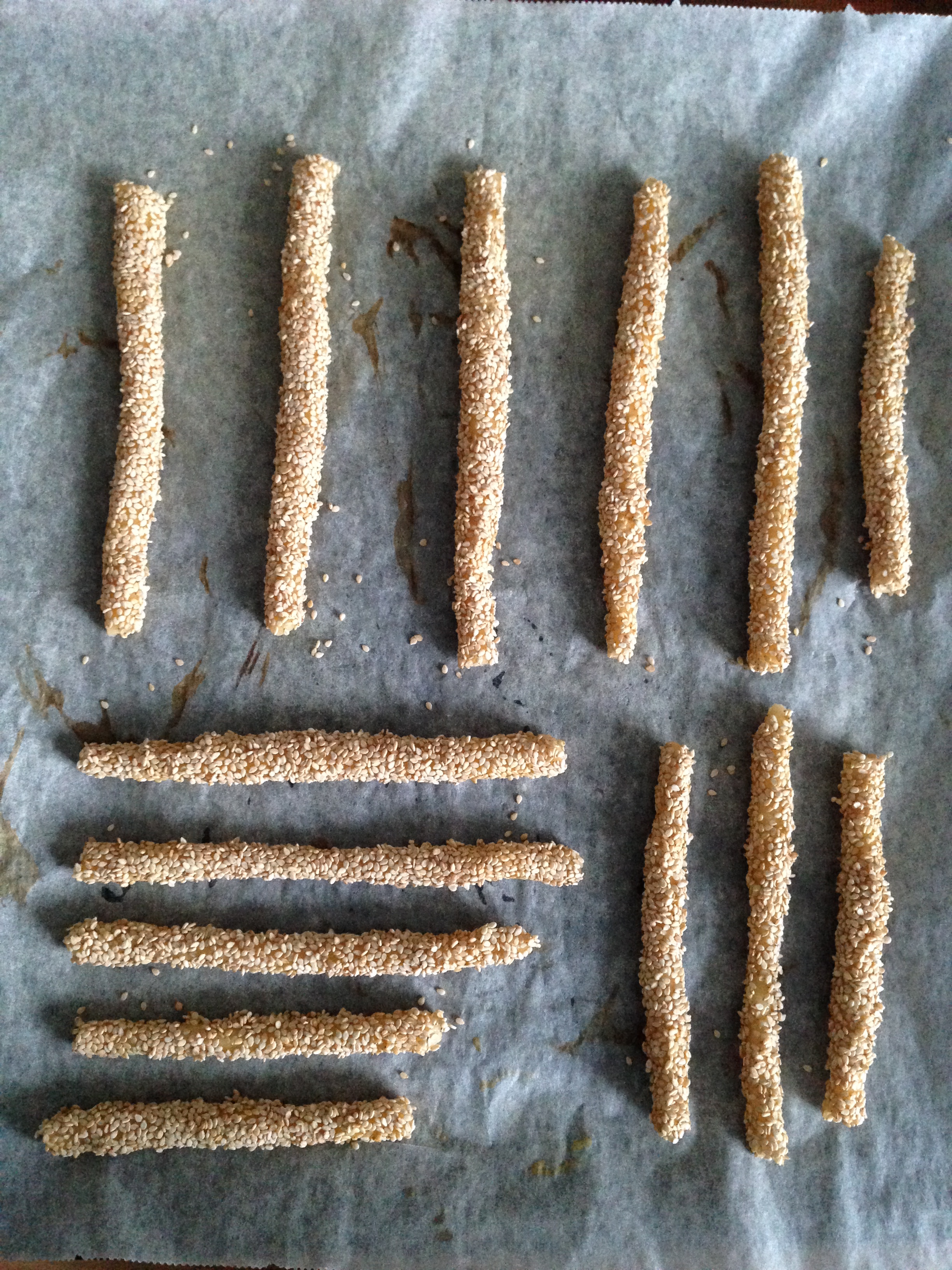 7. Bake the sticks in middle rack of the oven, for about 25 minutes, or until they are nicely brown. Once baked, take out of the oven and let them cool for a while. Once cool, they are ready to eat (they do not need to cool completely, it is nice to eat them while they are still a bit warm).