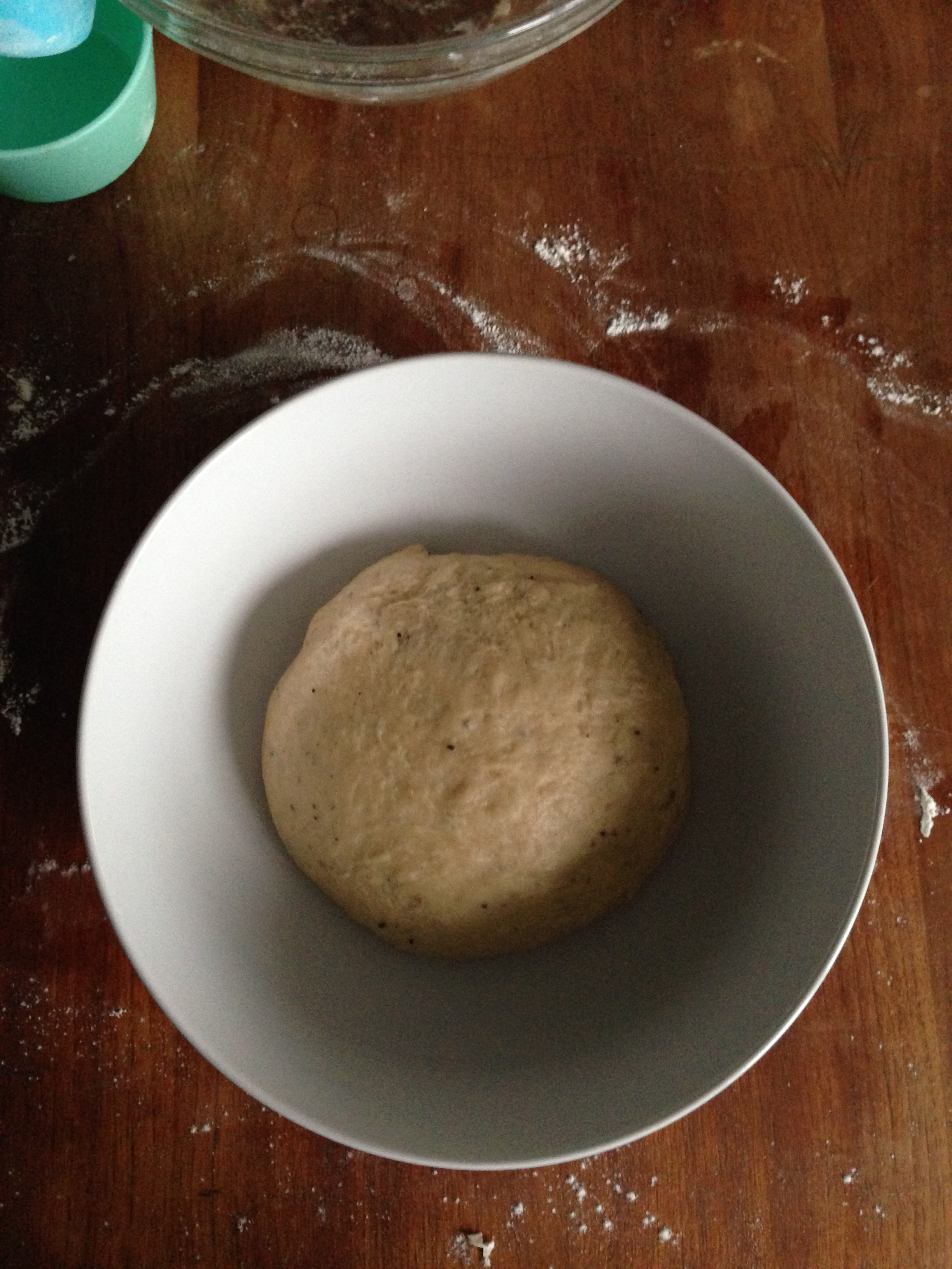 12. Put the ready ball of dough in a clean bowl, cover it with a damp cloth and leave it in a warm place to let it rise, until it gets doubled in size.