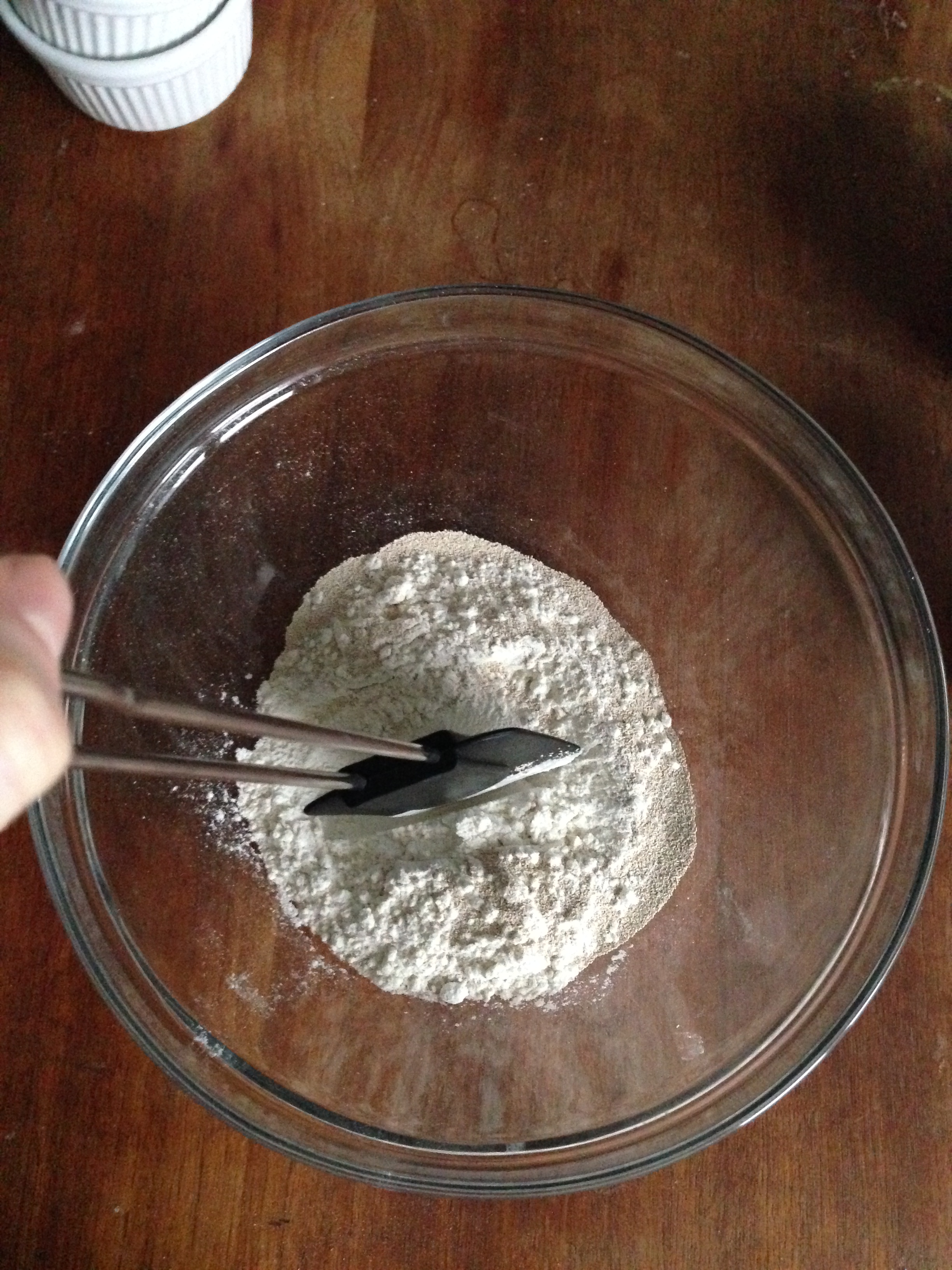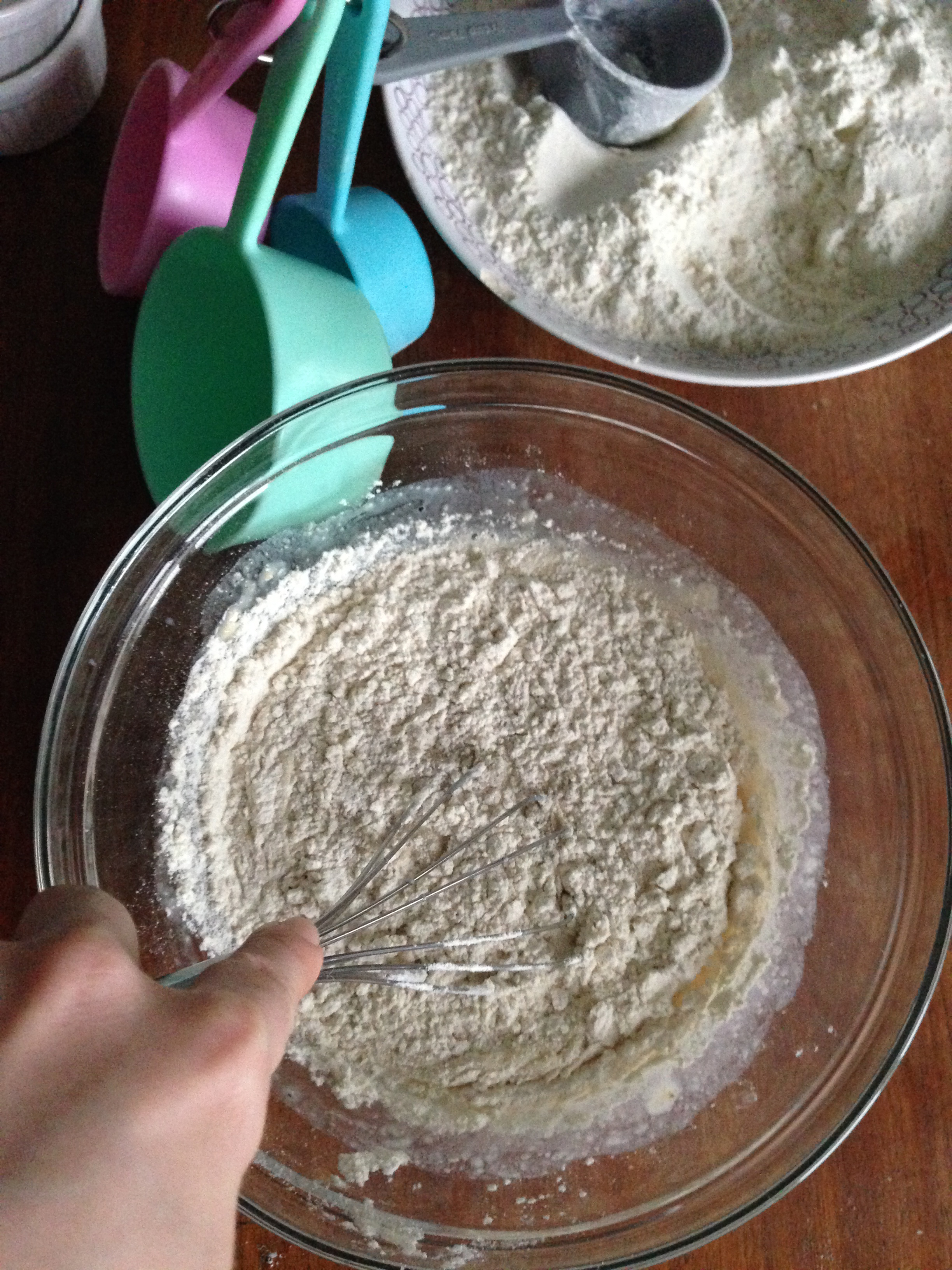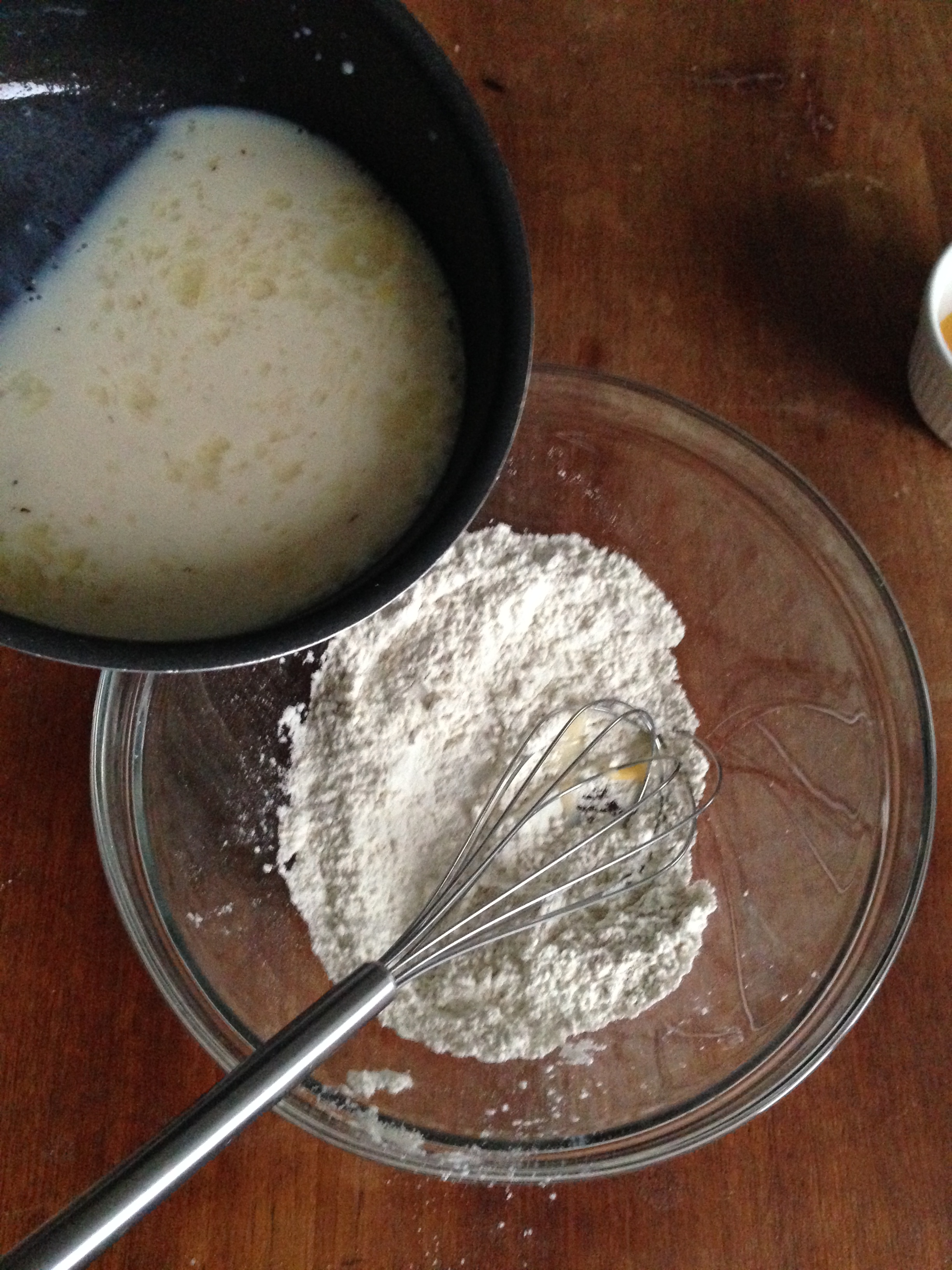 8. Pour the milk mixture into flour-yeast mixture and whisk until all the dry ingredients are wet with the milk mixture.