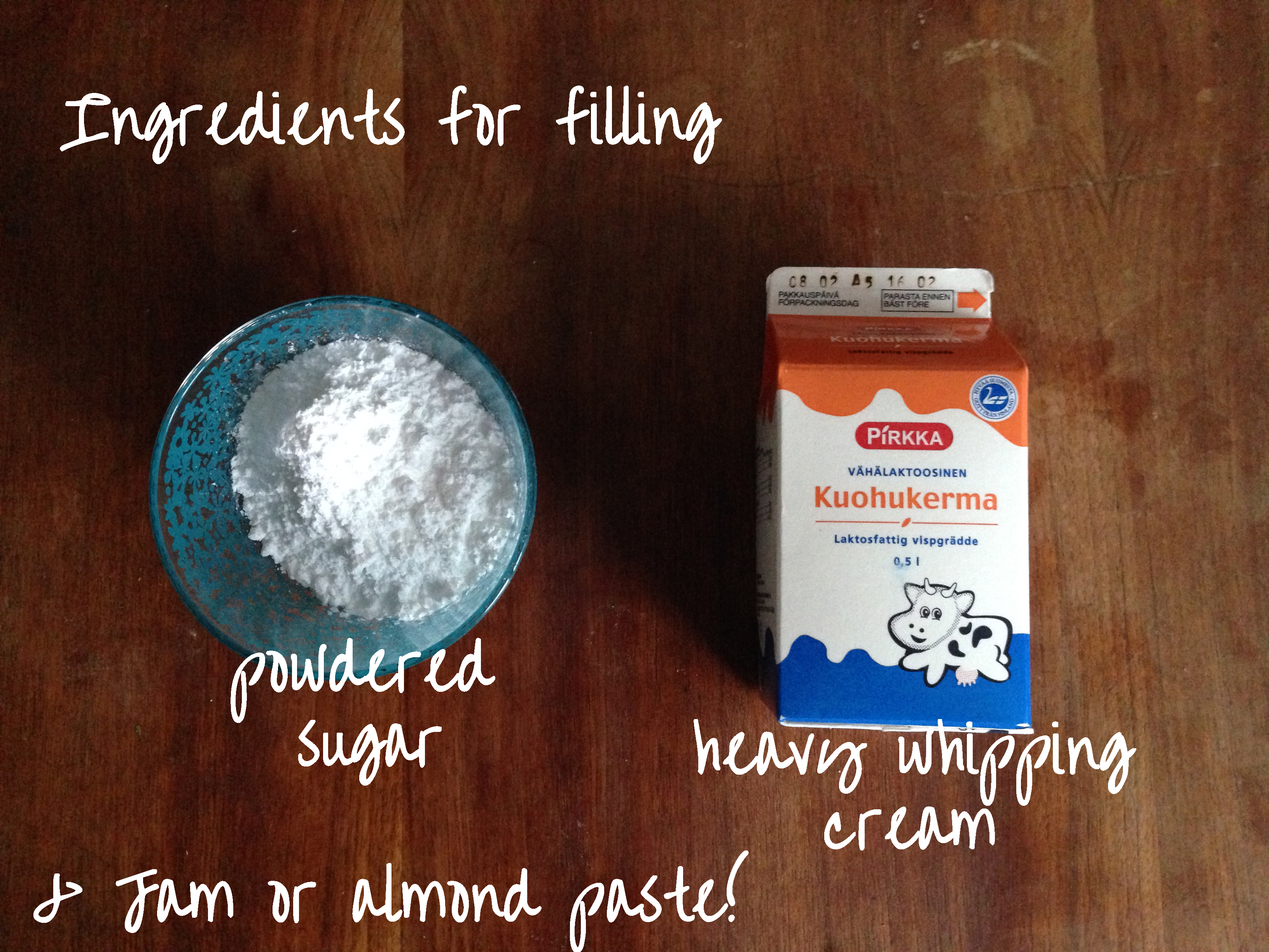 These buns are really cute with a little hat on them. In between the bun and the hat, there is either cream and almond paste or cream and jam. I found almond paste in K-market during the weekend, but I decided to use the jam I have at home – next time, though, I am going to make it with almond paste. And as in any other Finnish pastry, the signature ingredient is cardamom! I feel that without cardamom, you cannot make Finnish pastry! (Well of course you “can”, but it would not be as authentic as it should be..)