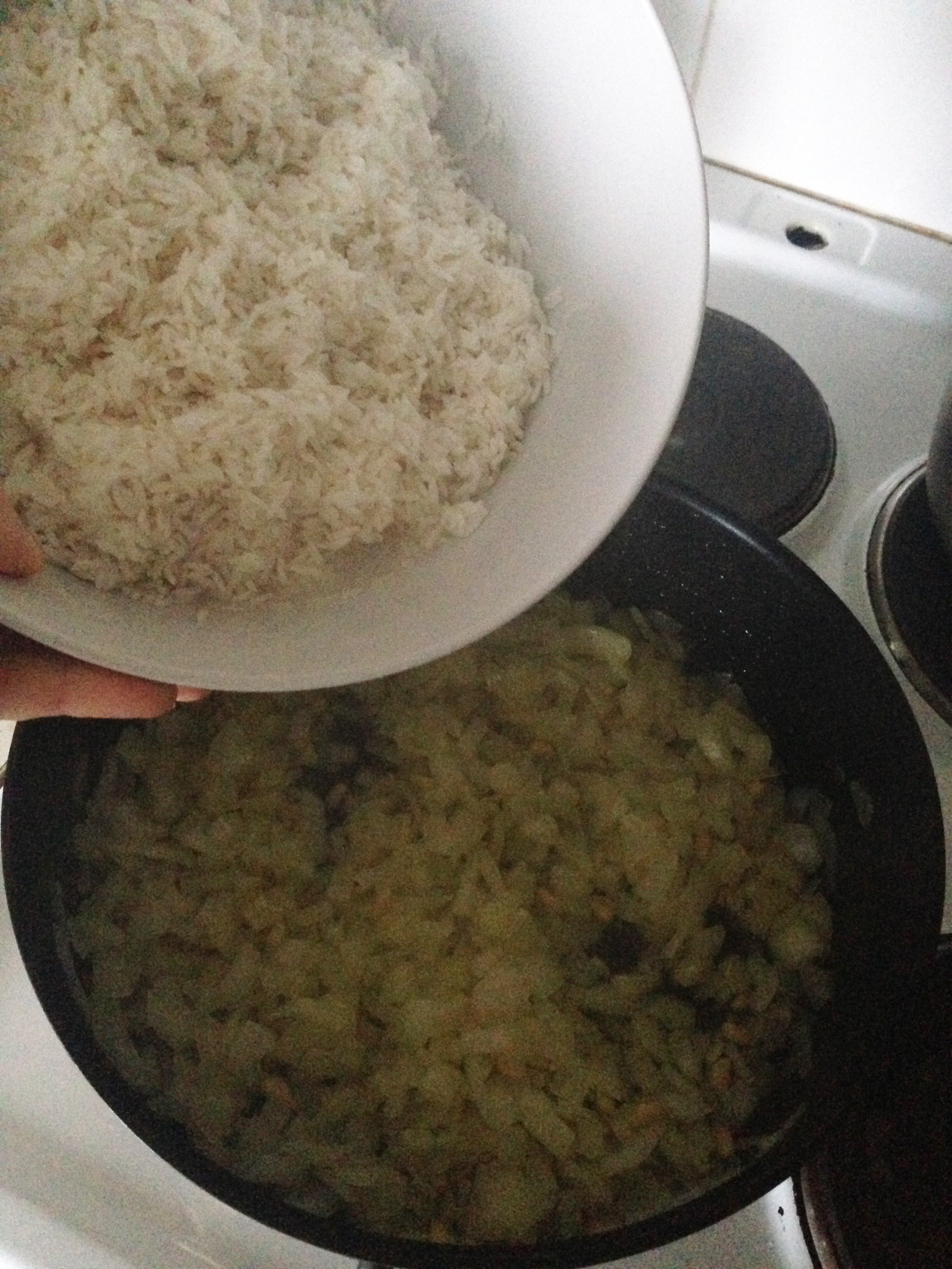 5. Add rice and stir for about 2 minutes.