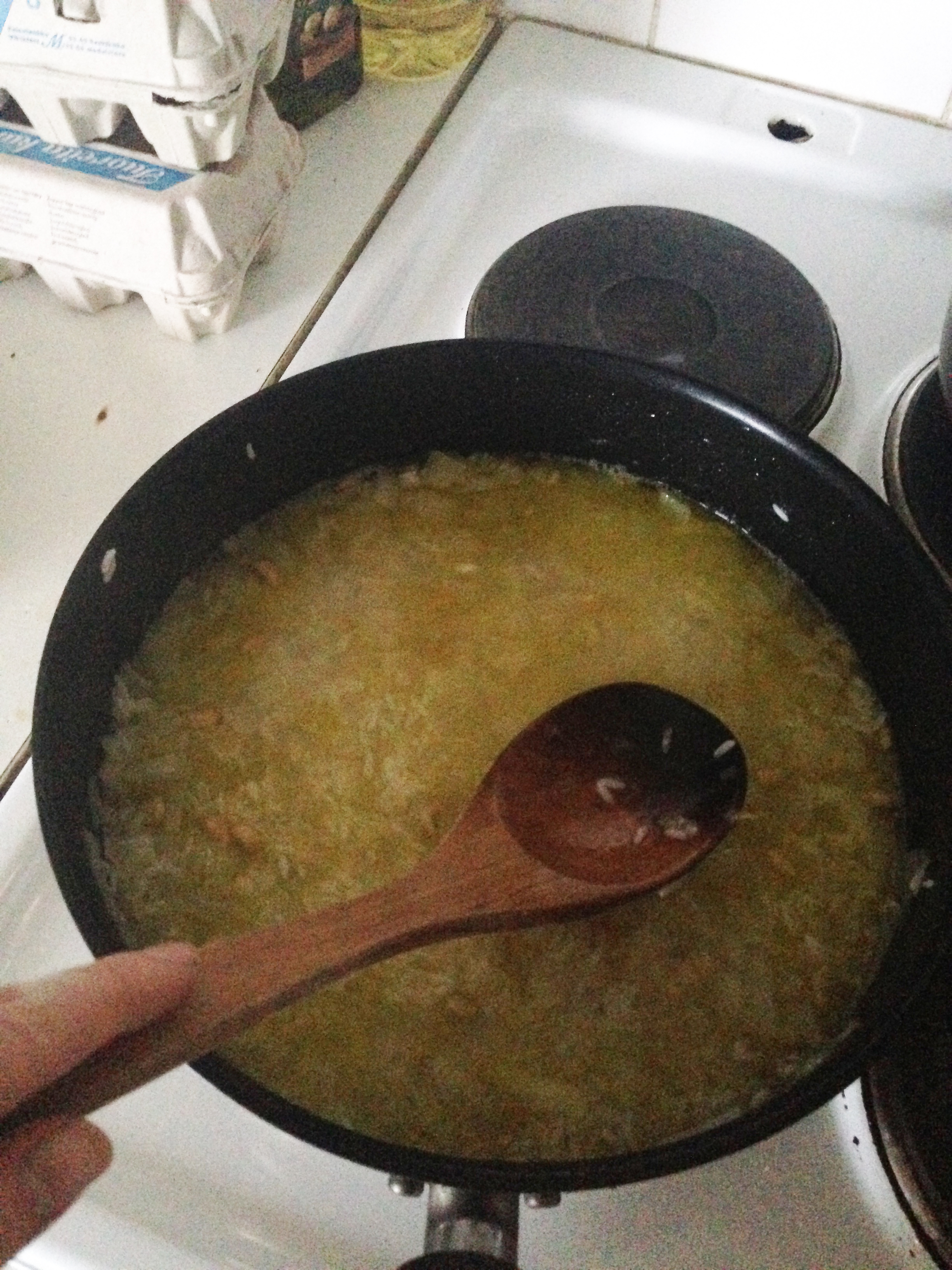 1 cup / 2.5 dl rice, washed thoroughly and left in 1 lt boiling water for 30 minutes