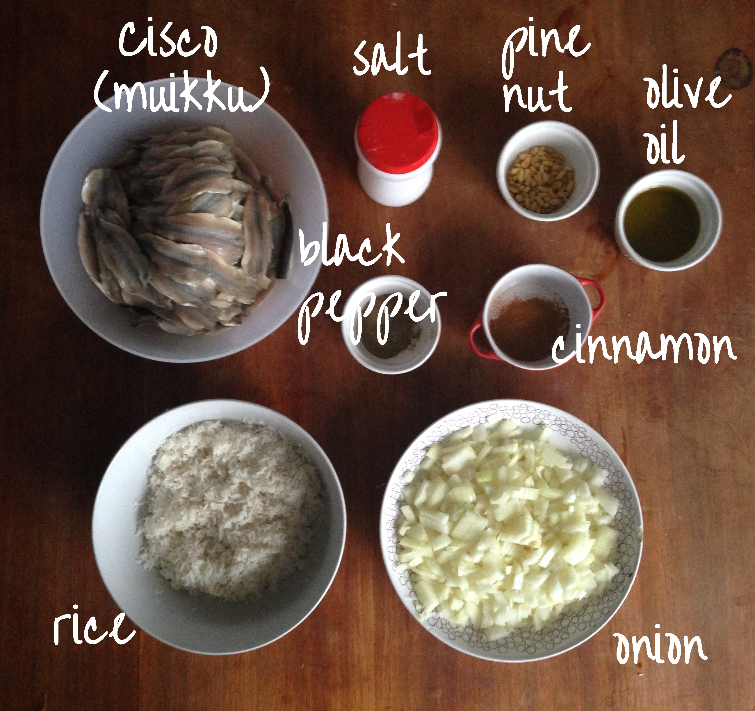 Since I used the fish from here, I gave the whole dish a Finnish name as well: Riisi Muikun Kanssa (Rice with European Cisco – well ok, not very original!). I made it for my guests in the latest “My Dear Kitchen in Helsinki Recipes Evening” and everyone liked it so I can say that it passed the test. If you want to know more about that event, read the related post here: https://mydearkitcheninhelsinki.wordpress.com/2014/02/24/my-dear-kitchen-in-helsinki-recipes-evening-february-22-2014/