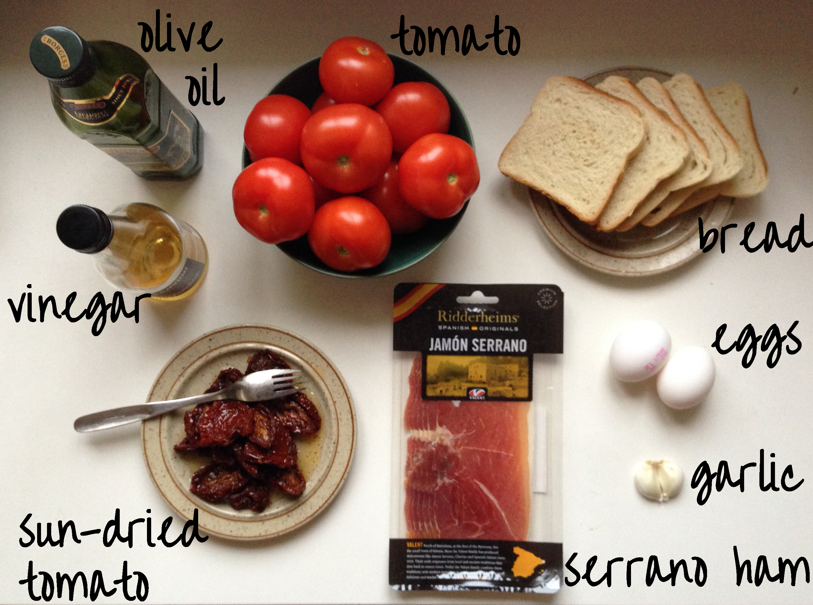 I think these three dishes could be a very good whole menu for a dinner party for your friends – if you want to have a Spanish theme dinner party for instance. With all the talk in between we had, it took roughly 2.5-3 hours to prepare all the food, you can see that they are not the hardest dishes to cook. In this blog post I will only give the recipe for Salmorejo (the soup) not to make a huge blog post.. The other two dishes will be in 2 other posts..