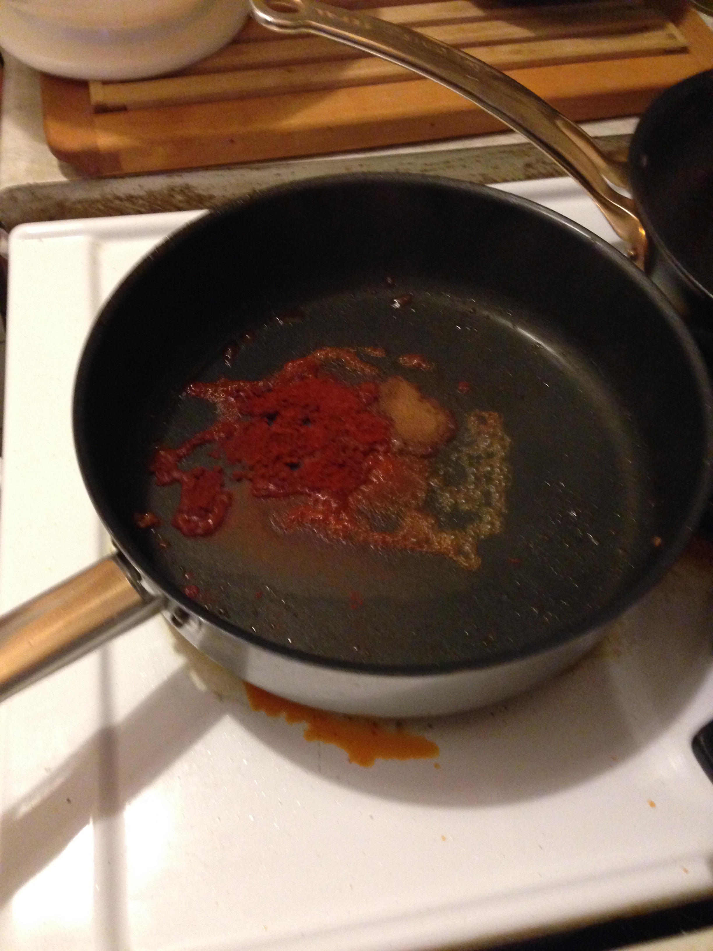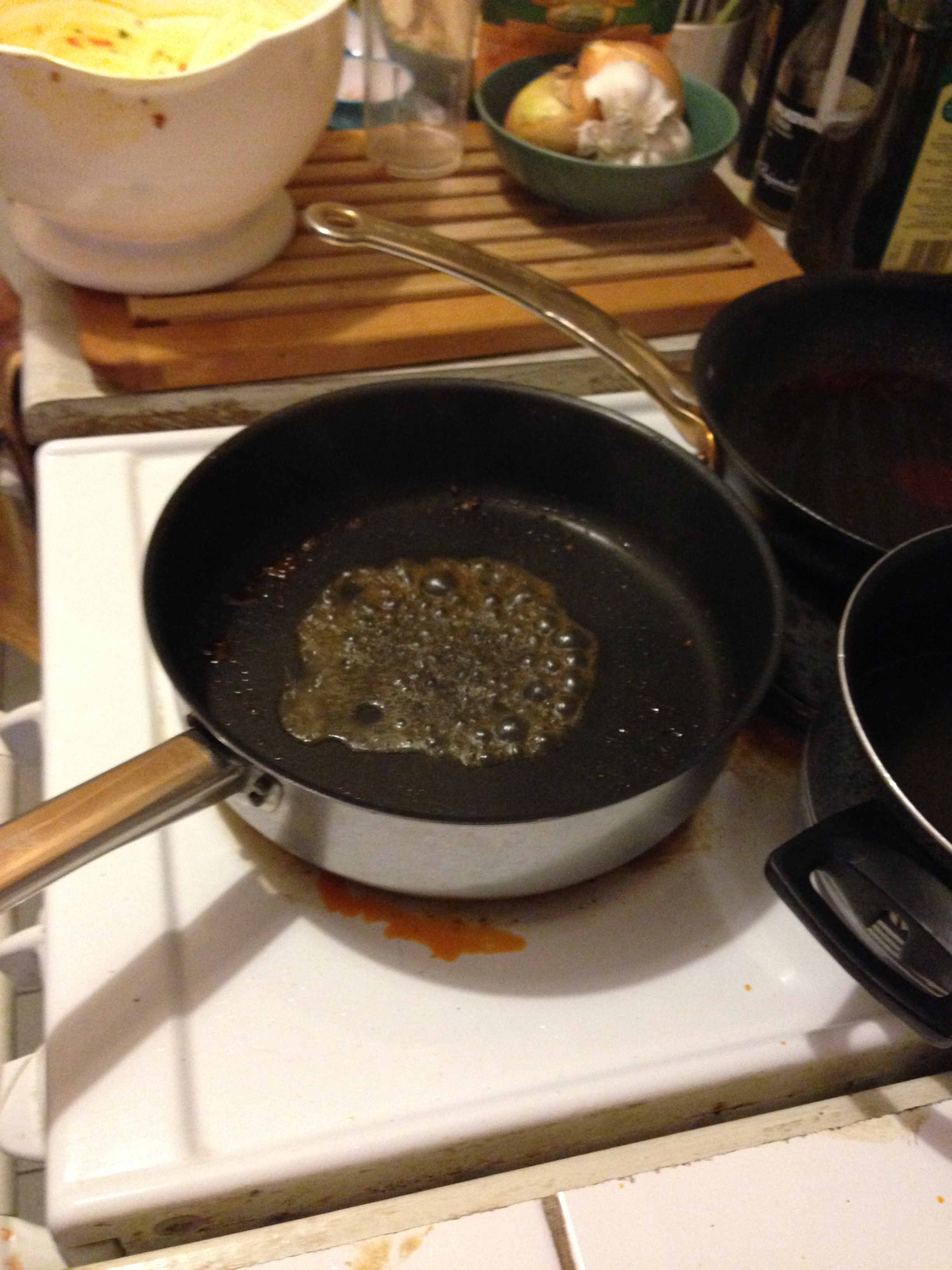 14. Reheat the non-washed frying pan. Add another dash of white wine. Heat it.