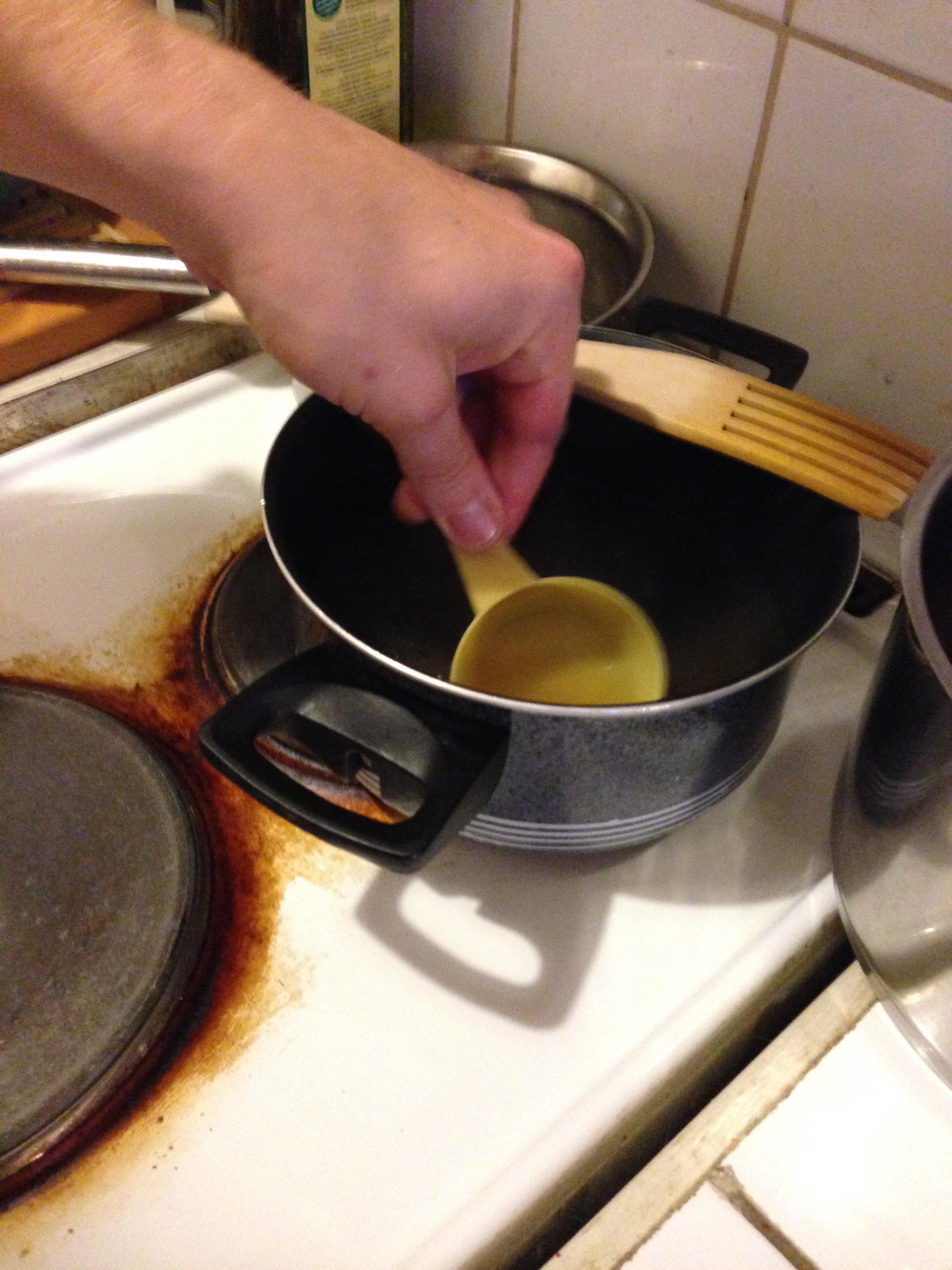 2. In a medium pan, add 2.5 cups / 6 dl water and heat. When it starts boiling, add bouillon and continue boiling for a few more minutes while stirring frequently. Take it off the heat.