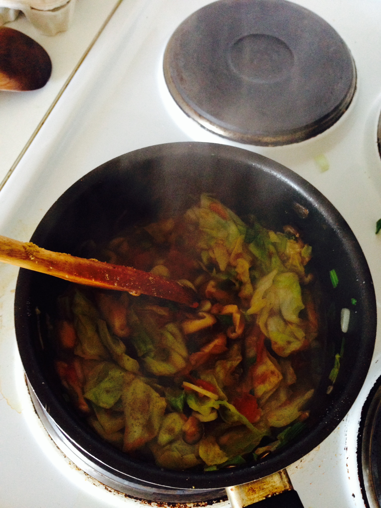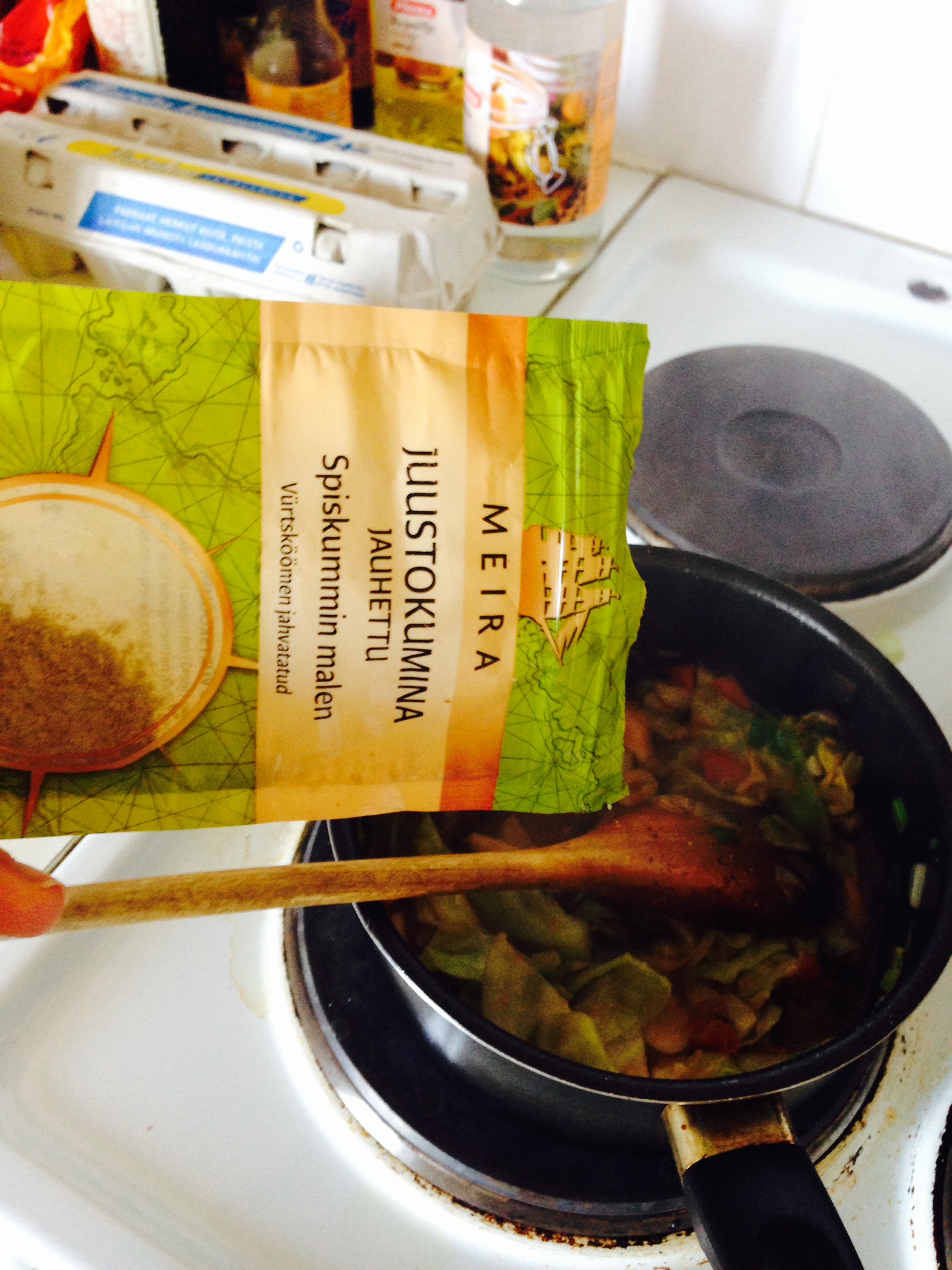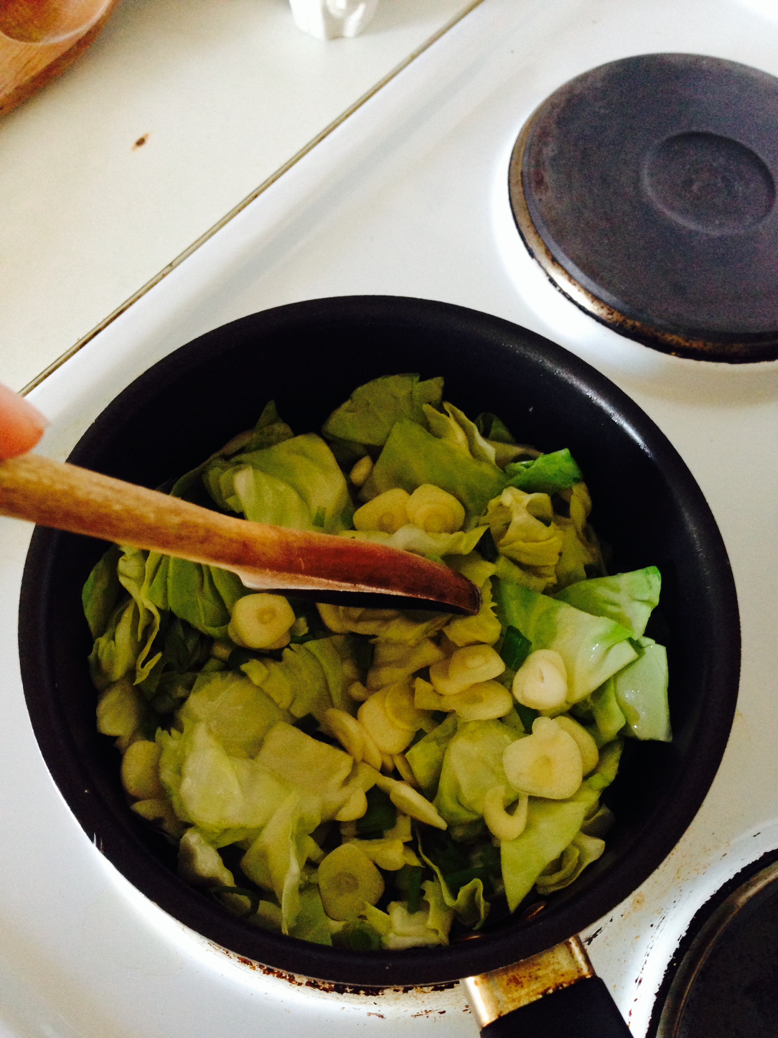 100 gr spring green (varhaiskaali in Finnish) or regular cabbage if you like, chopped