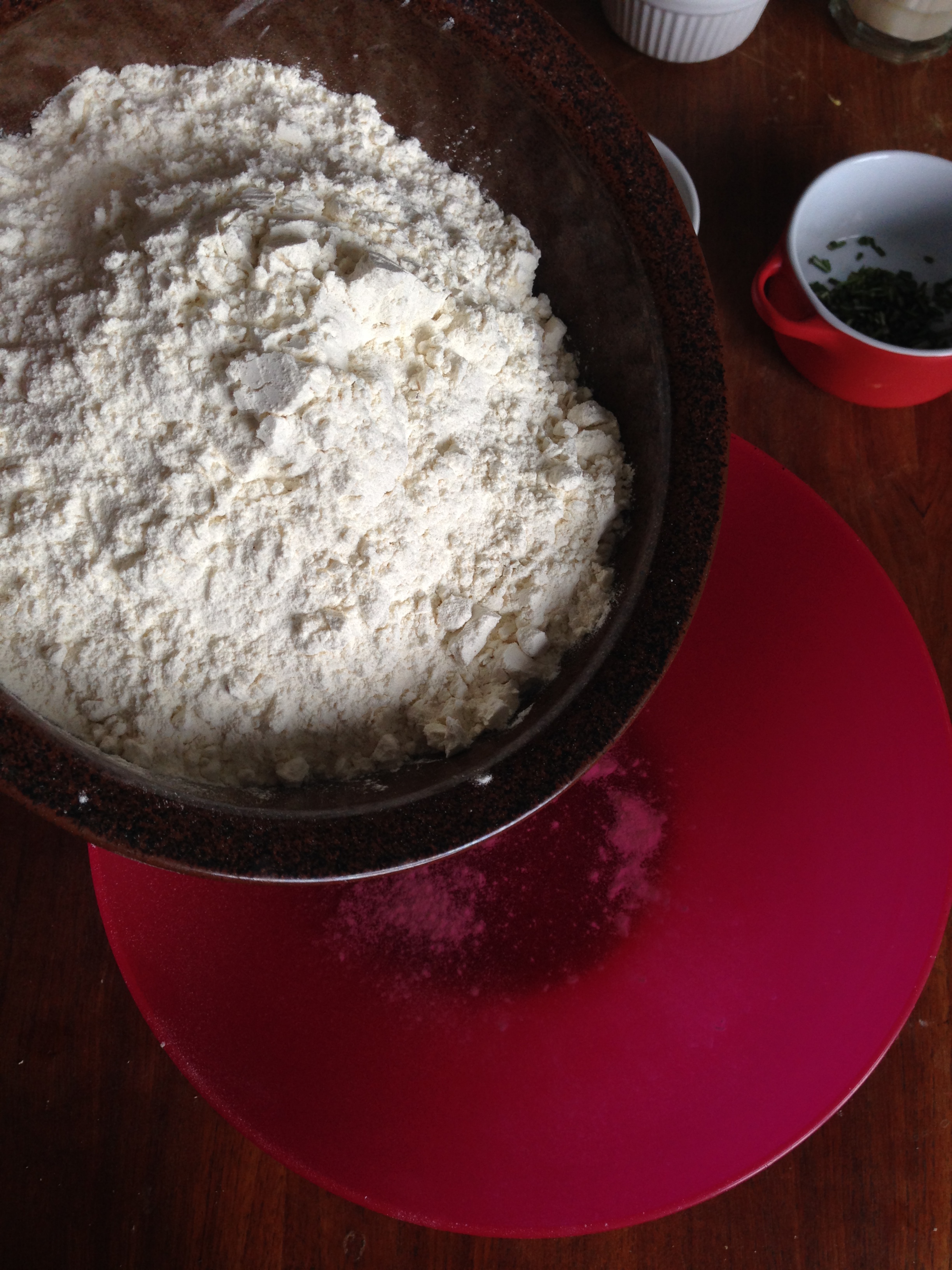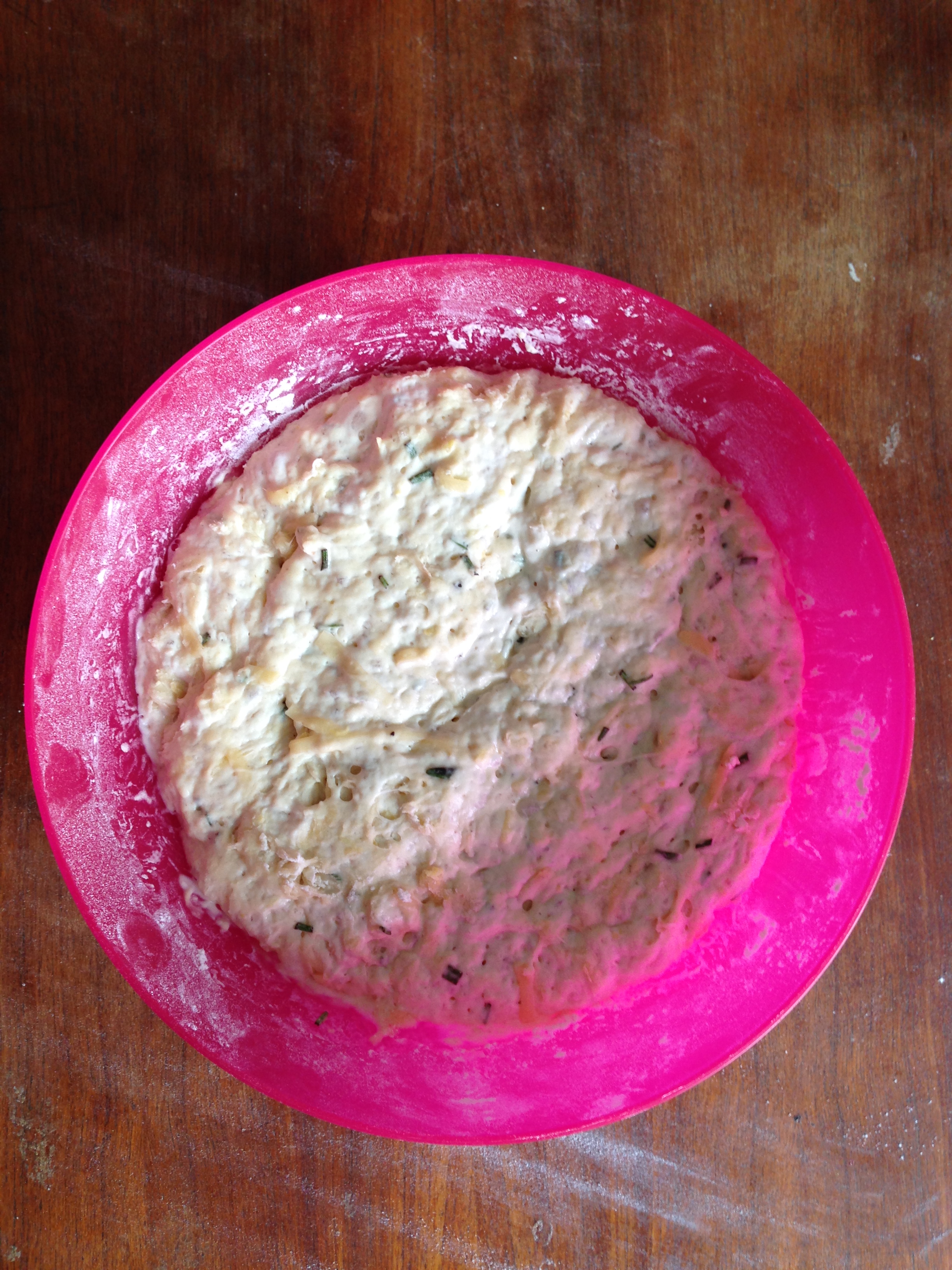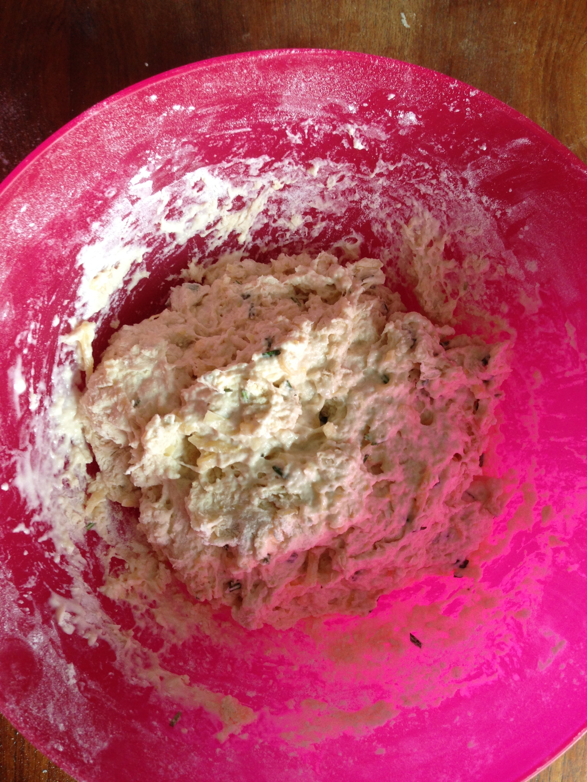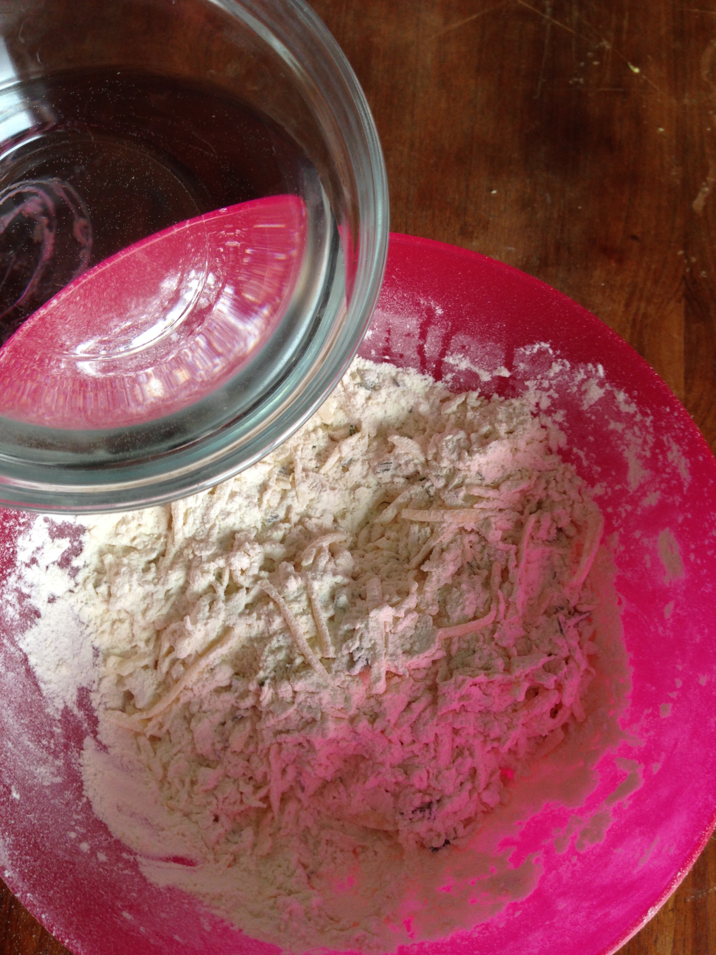 3. To the flour mixture, add gruyere, rosemary and lemon zest and whisk / mix more.
