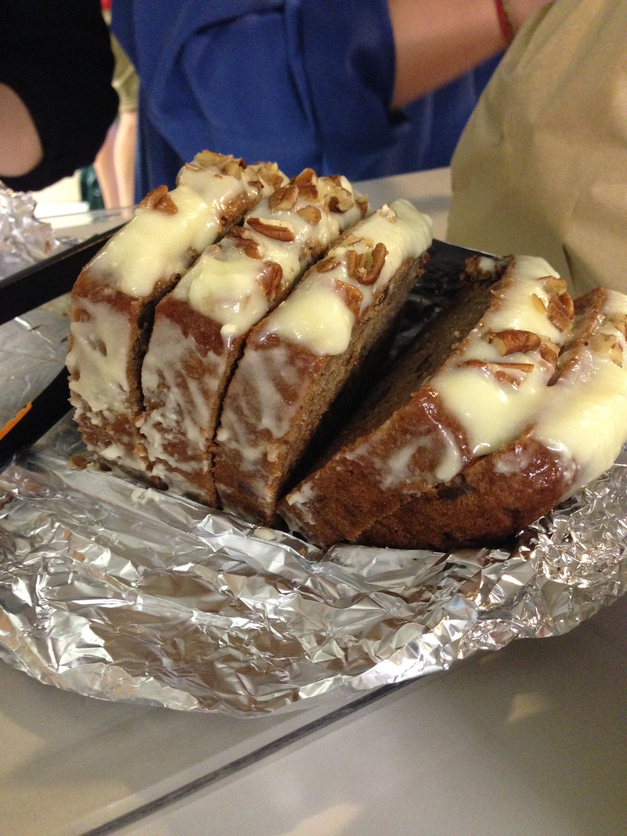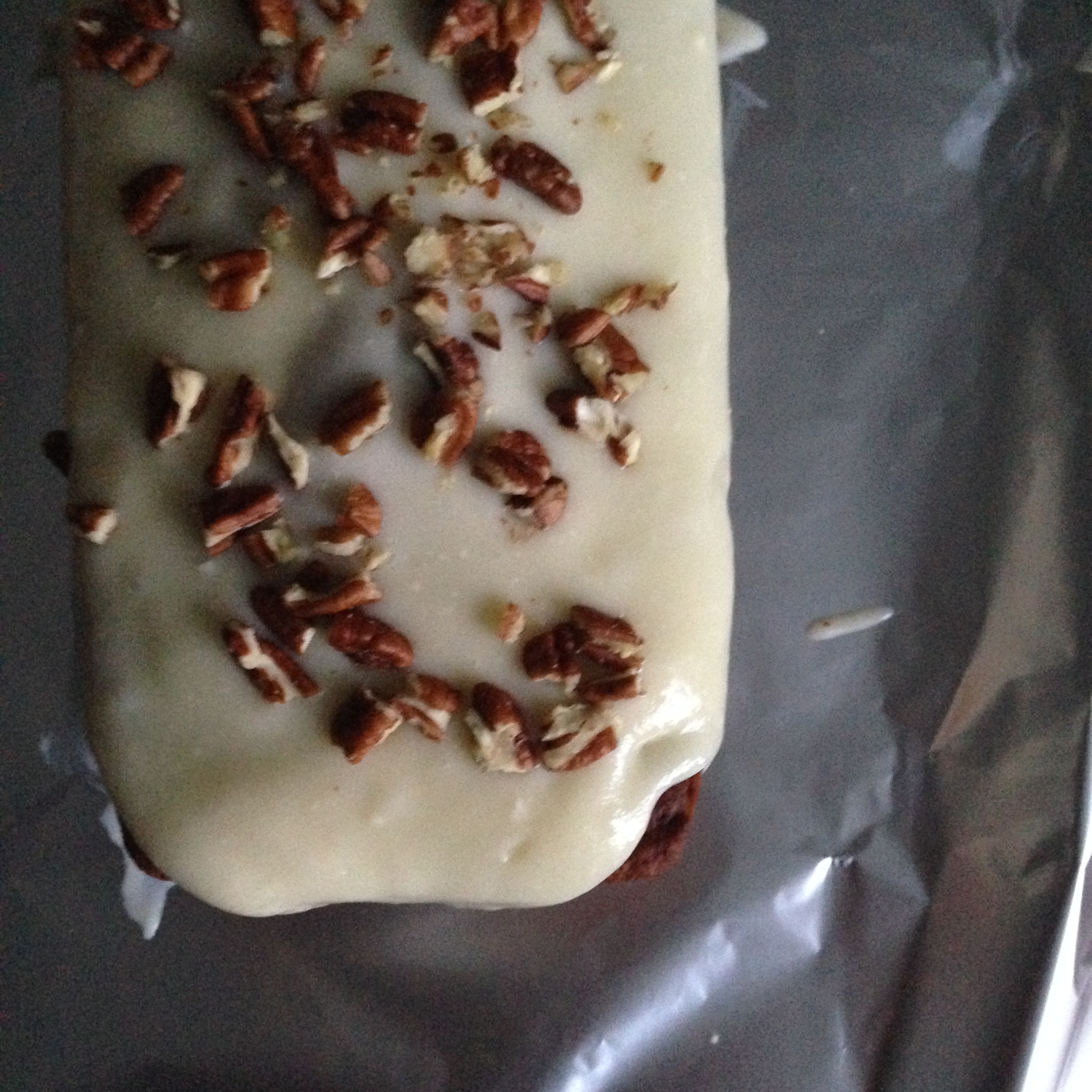 Banana in this recipe makes the cake really moist (there are 4 bananas in it!!) and there is also yogurt to help with the moisture. The pecans add a nice nutty taste and cream cheese frosting gives a nice twist as it is quite sweet but when you tell people that it is mostly cream cheese they are surprised!