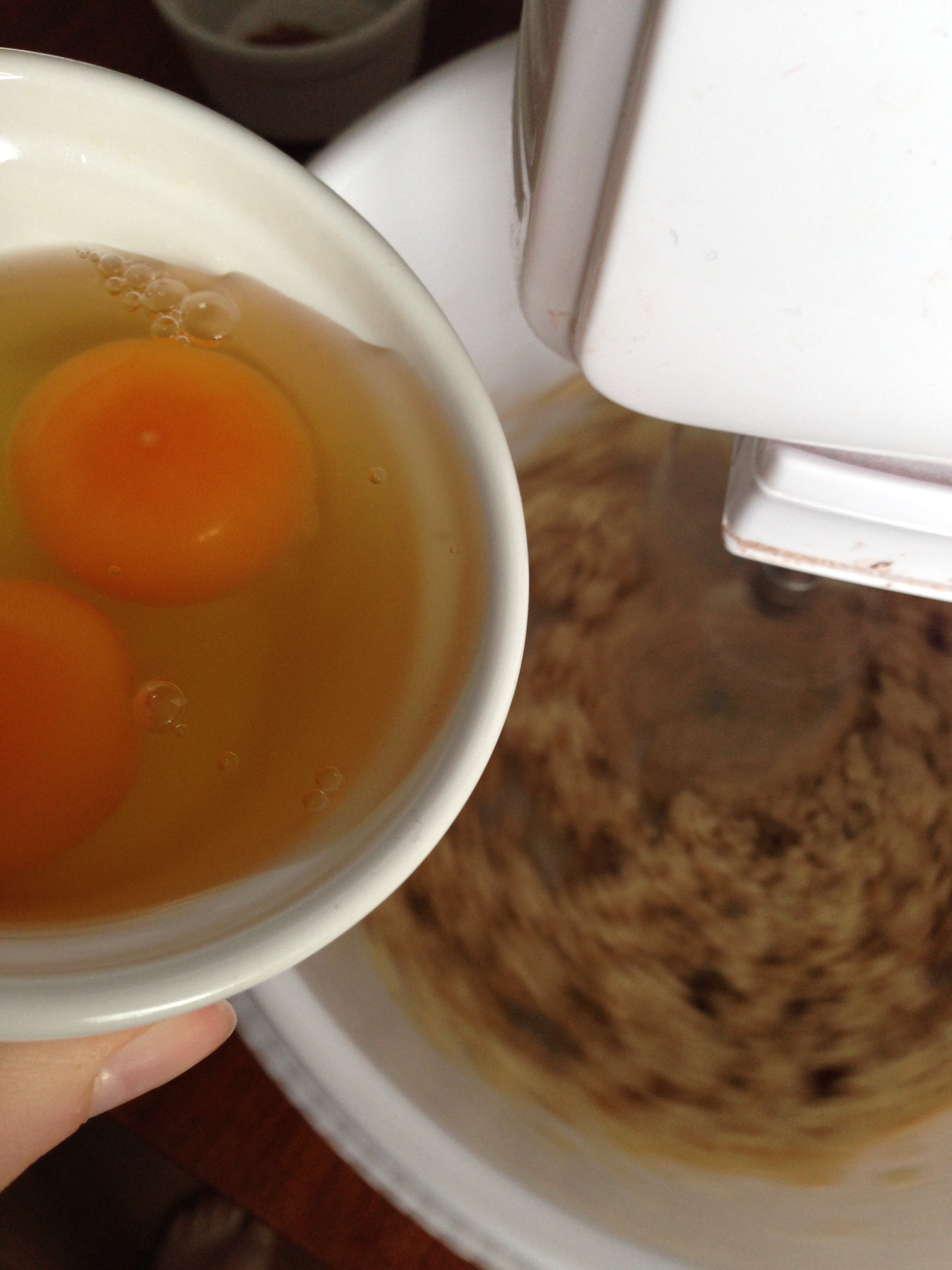 3. Add one egg at a time and continue mixing. After adding each egg, mix it in medium speed until well incorporated.