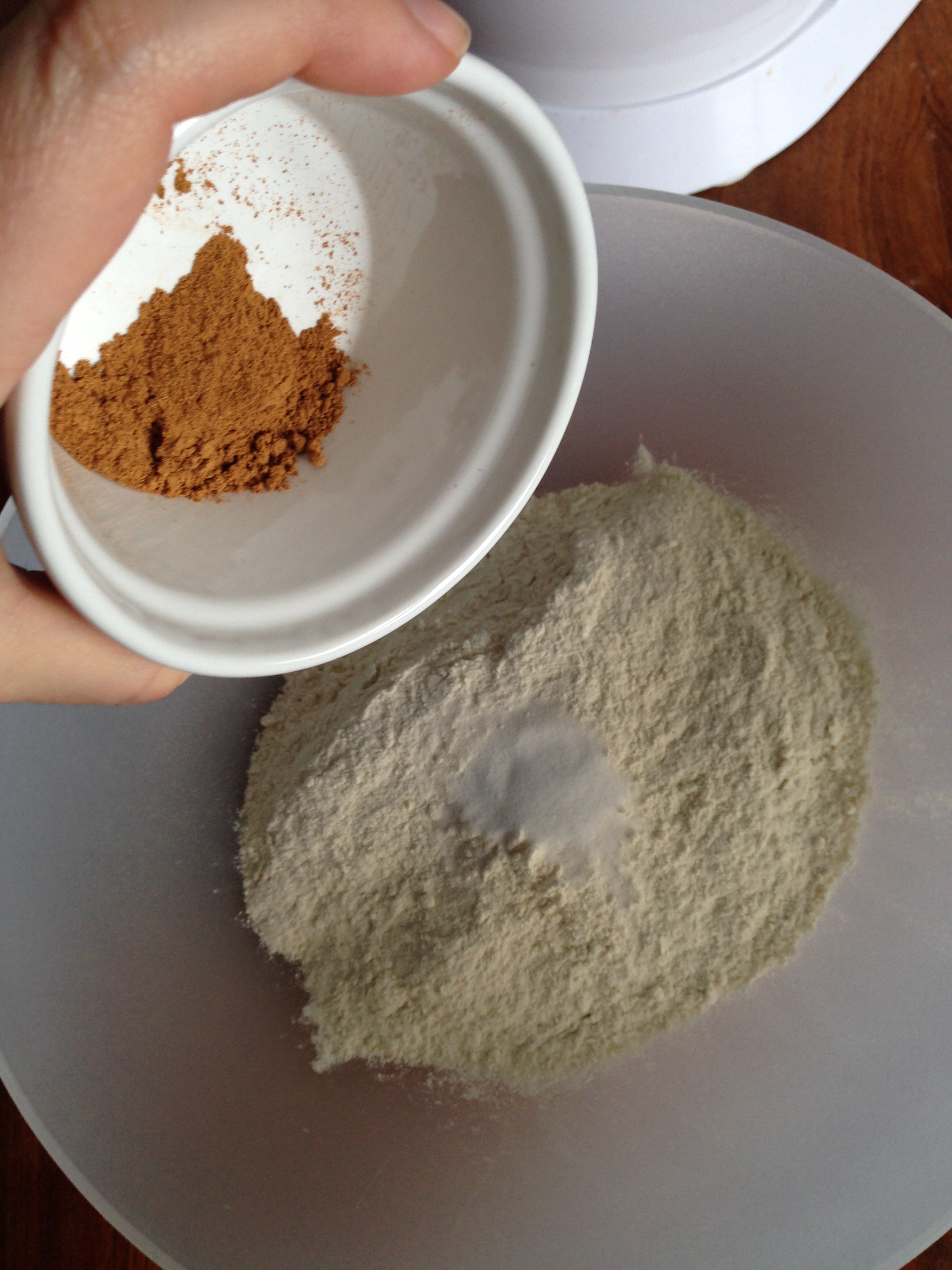 5. In another bowl, put flour, baking soda, salt and cinnamon and whisk them well.