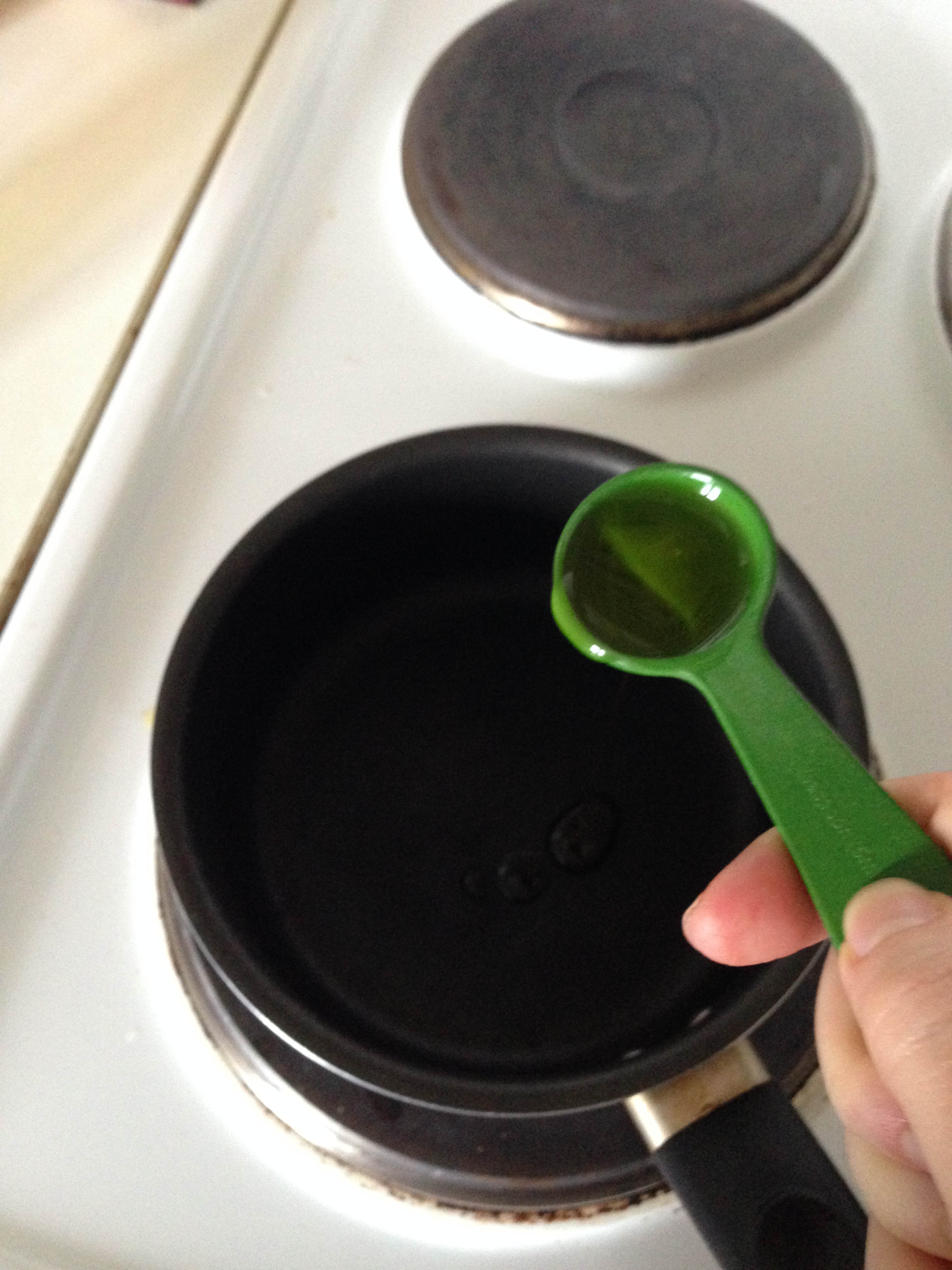 3. Take a pan. Put a tsp olive oil in it and heat it on medium high heat.