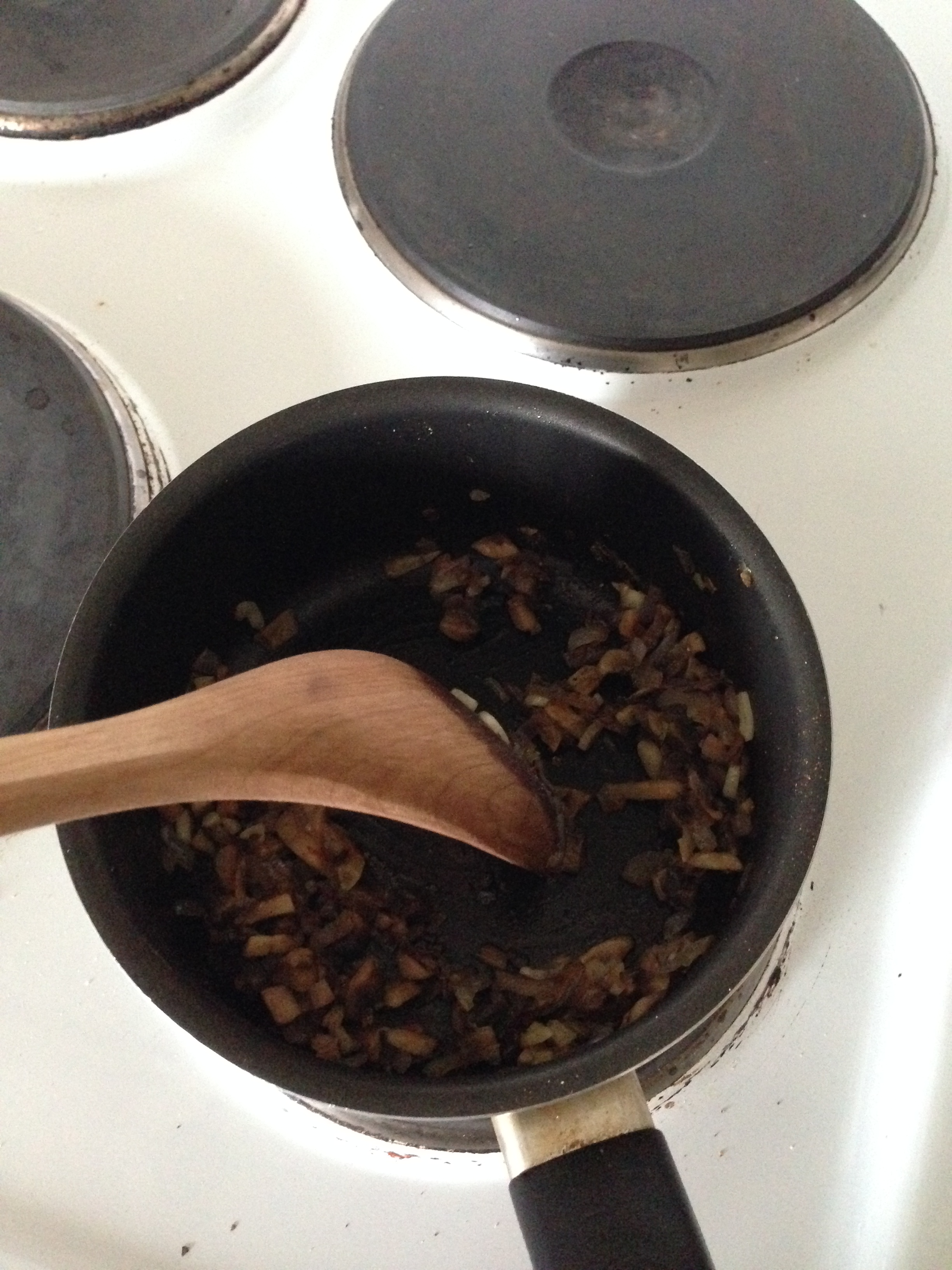 4. Add onion and sauté for about 4-5 minutes, until it gets translucent.