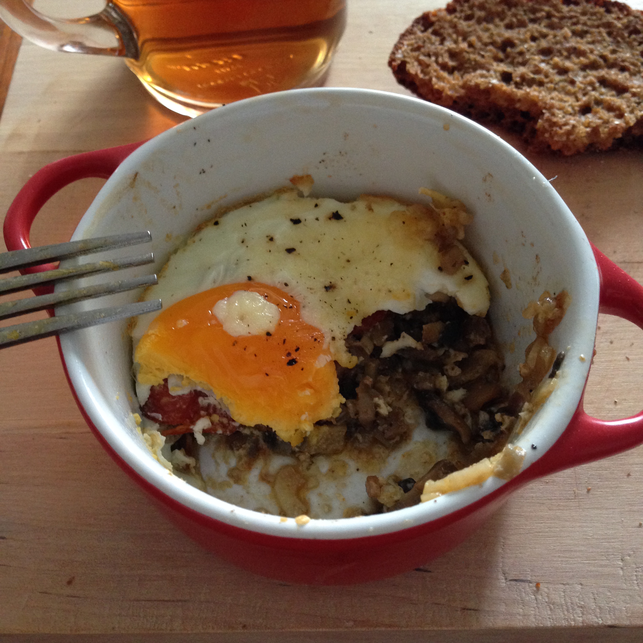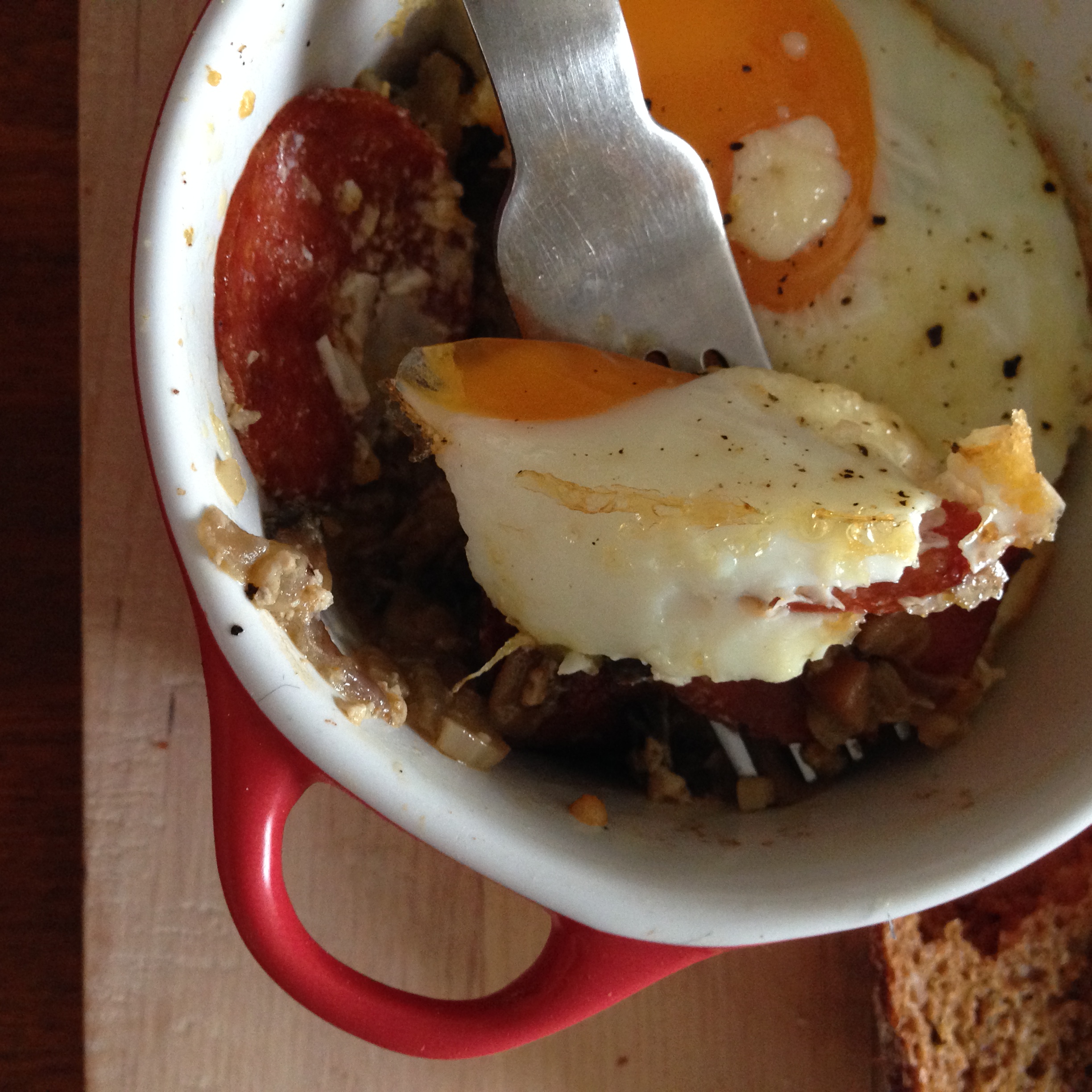 Baking eggs is my new favourite actually, ever since I first baked a frittata. After that I started playing with the idea of baking eggs. You just need to figure out a few basics and off you go! For instance, I found that the best oven temperature is 180C to achieve the way I like eggs – completely baked, while not burning the other ingredients. And then you play with rest of the ingredients, you can make a meaty version (like this one here) or one with only vegetables.. Anything.. And of course, spices!