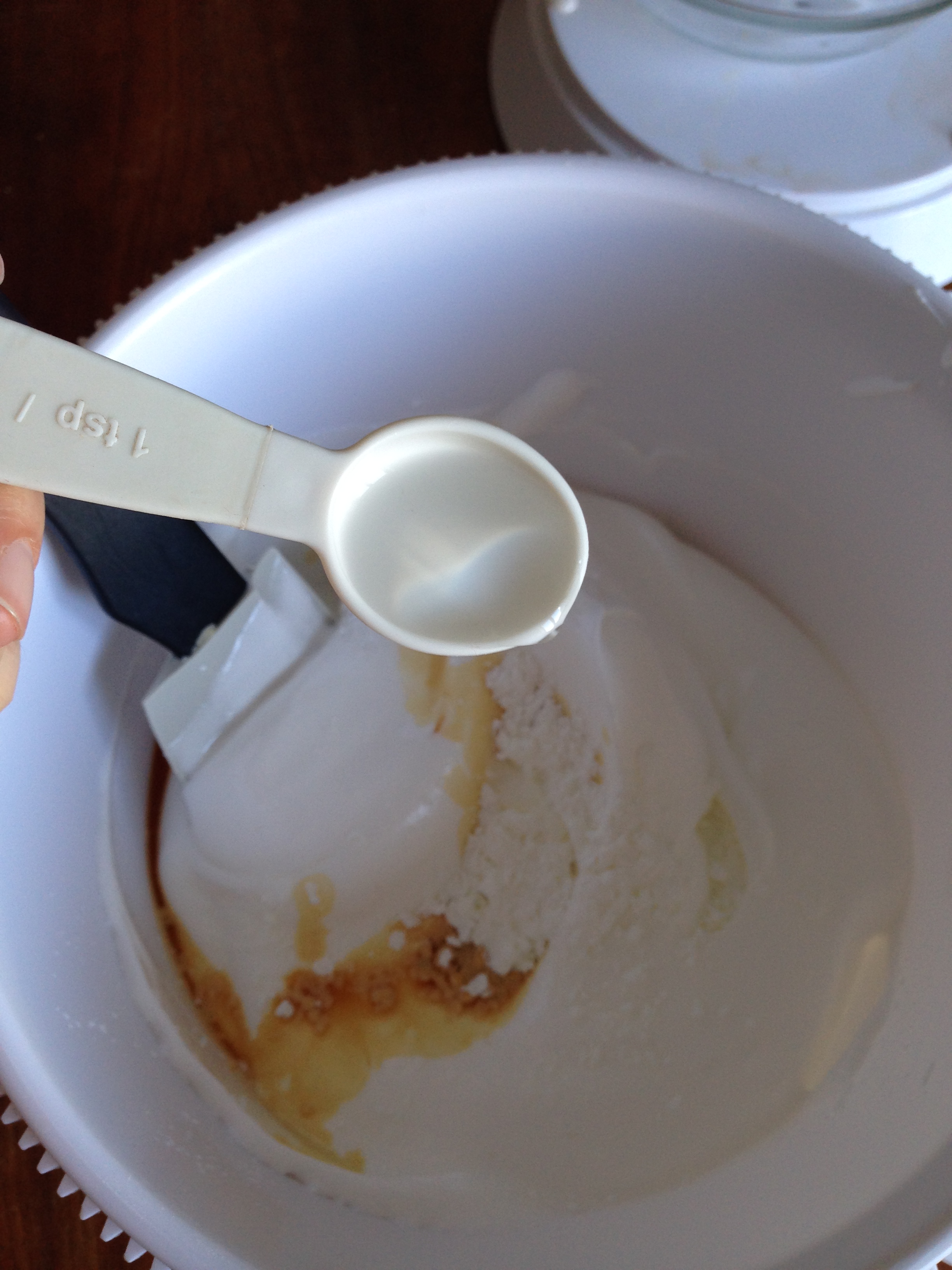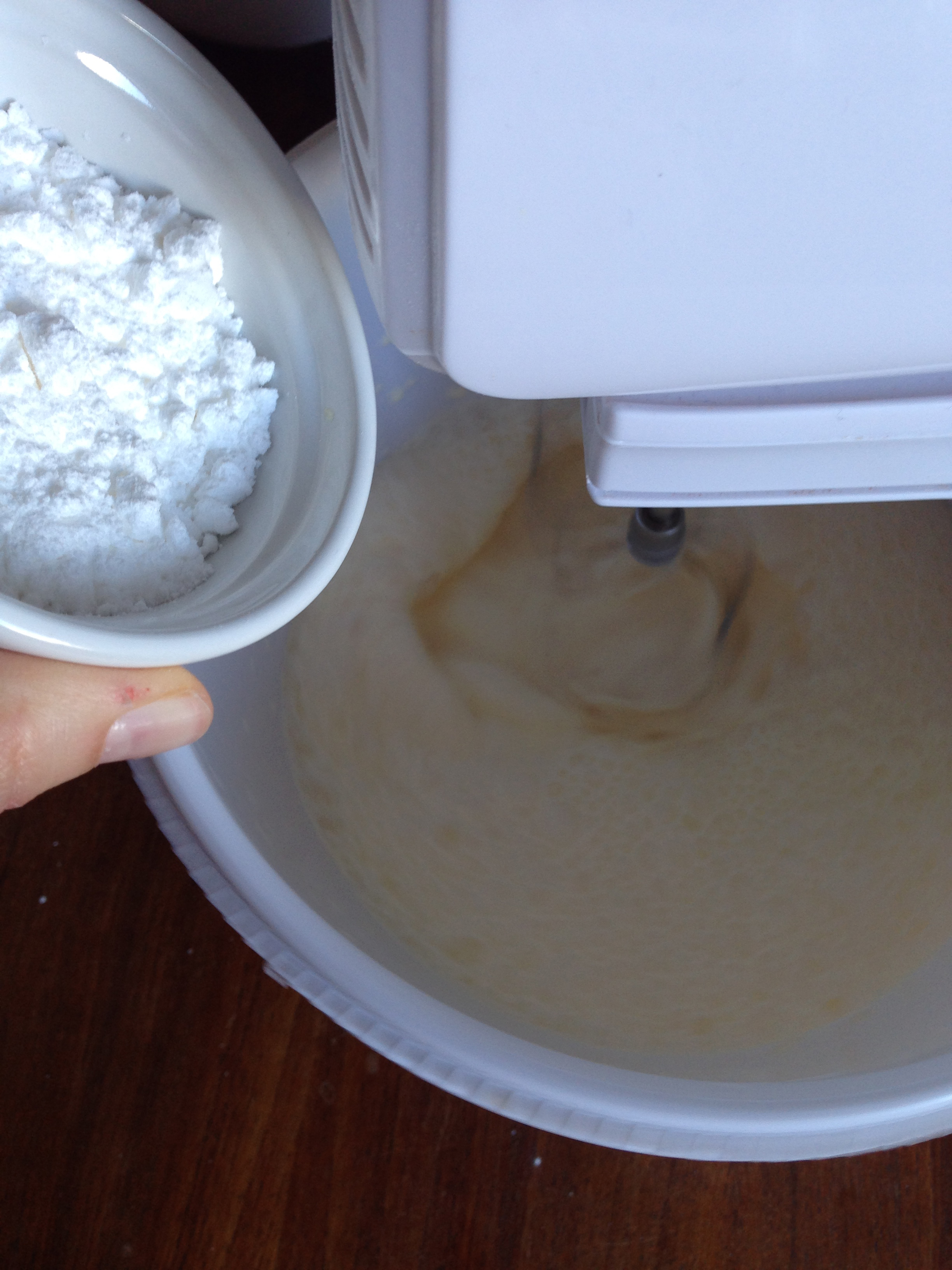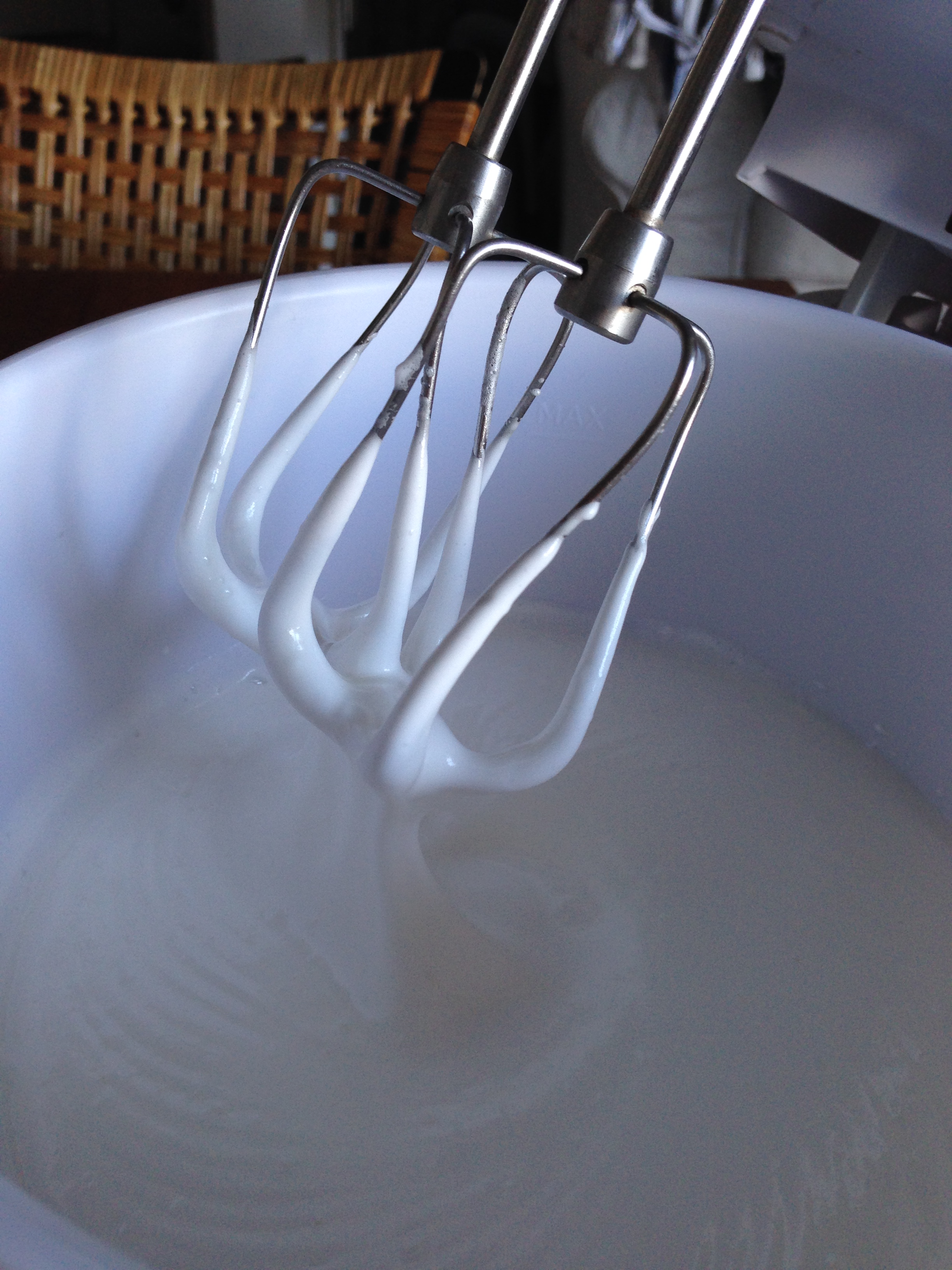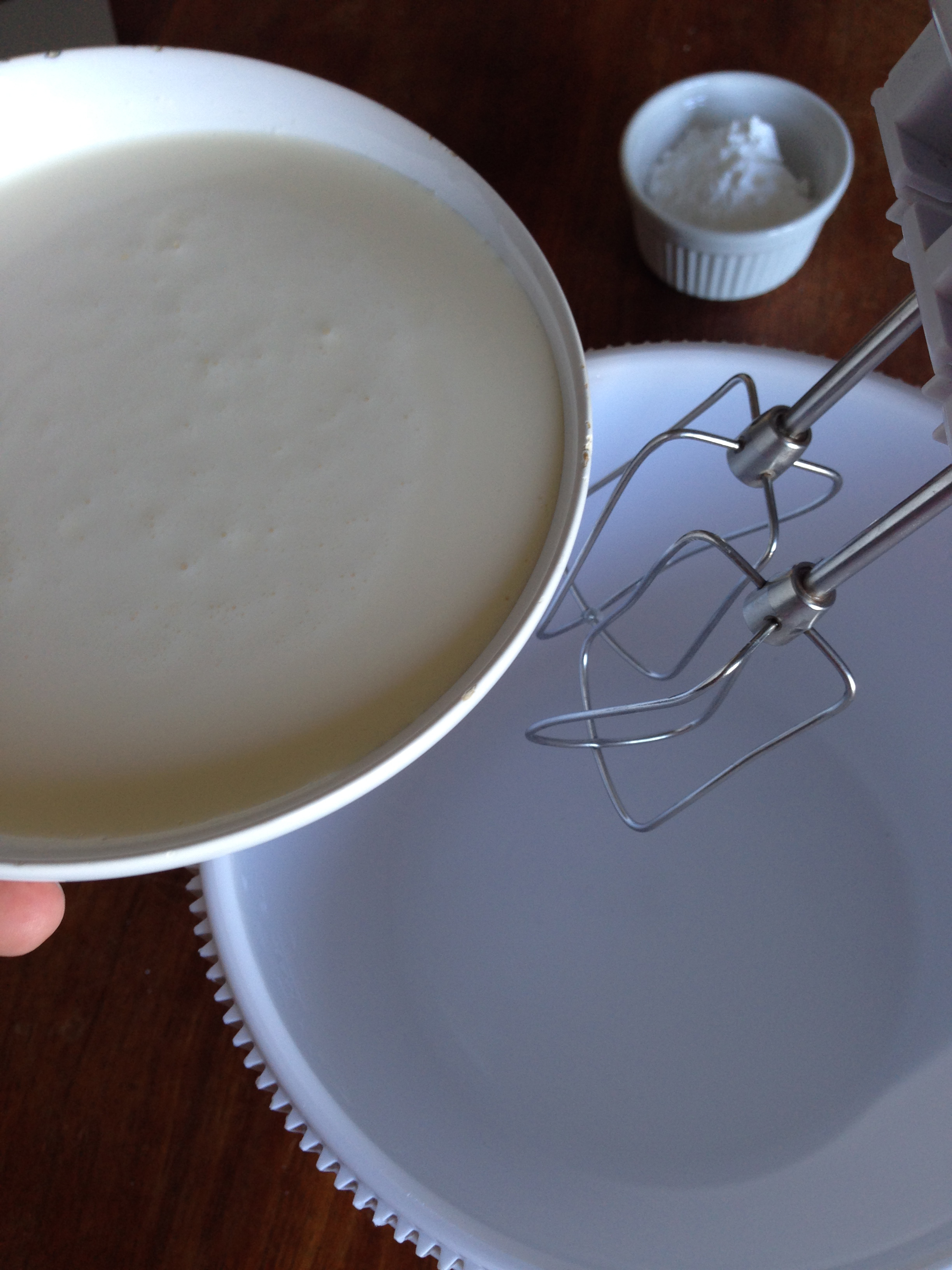 4. When the whites become foamy, add salt and cream of tartar and continue beating in same speed.