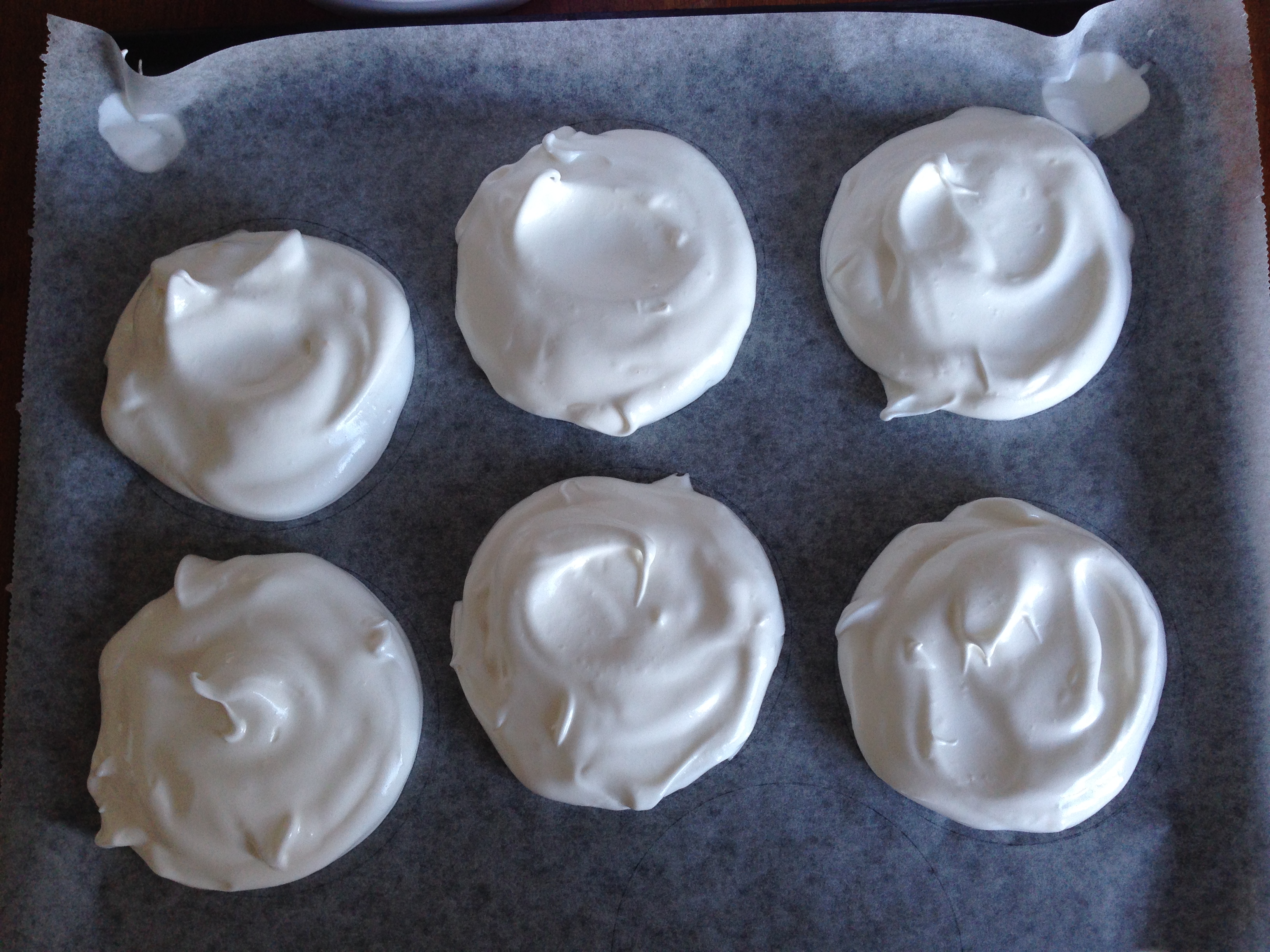 2. Take a baking sheet and using something circular with a diameter around 10cm, mark circles on the surface that will stay under while baking. Put the sheet aside (depending on the size of your oven, you may need to prepare 2 baking sheets.