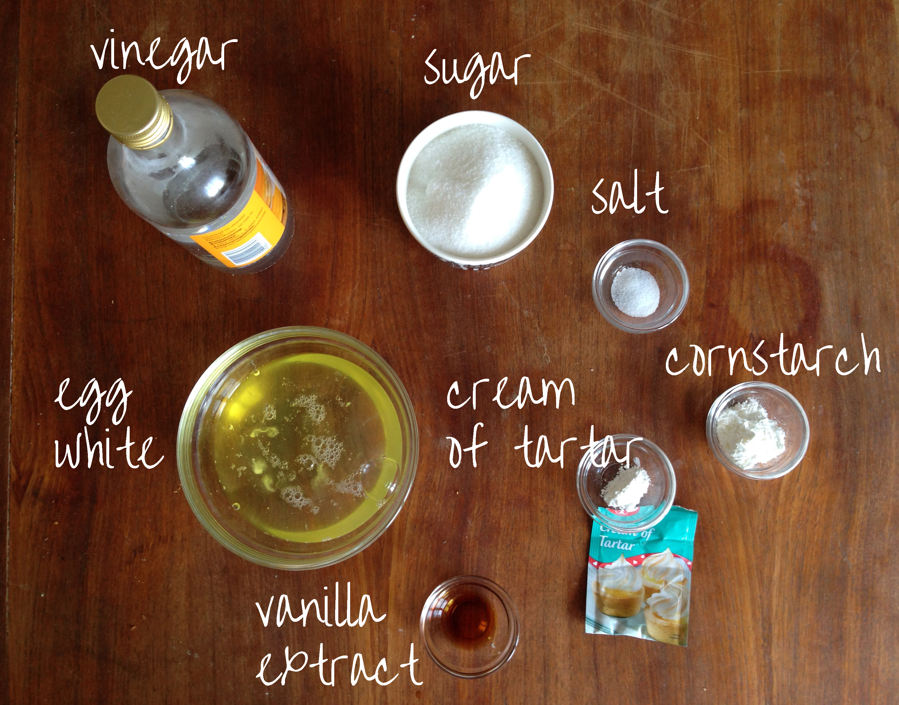 1/2 tsp / 2.5 ml cream of tartar (or a tiny bit of lemon juice)
