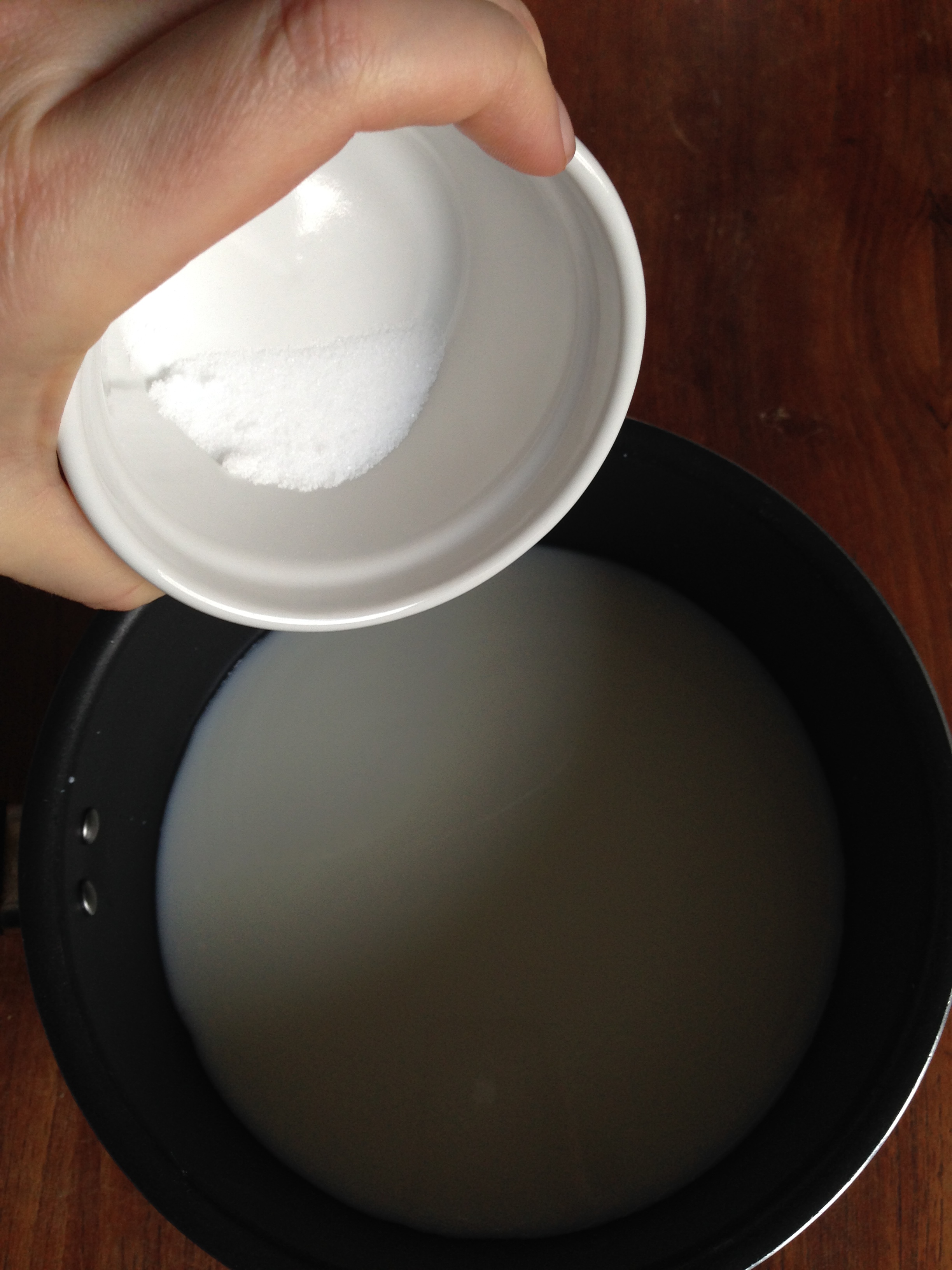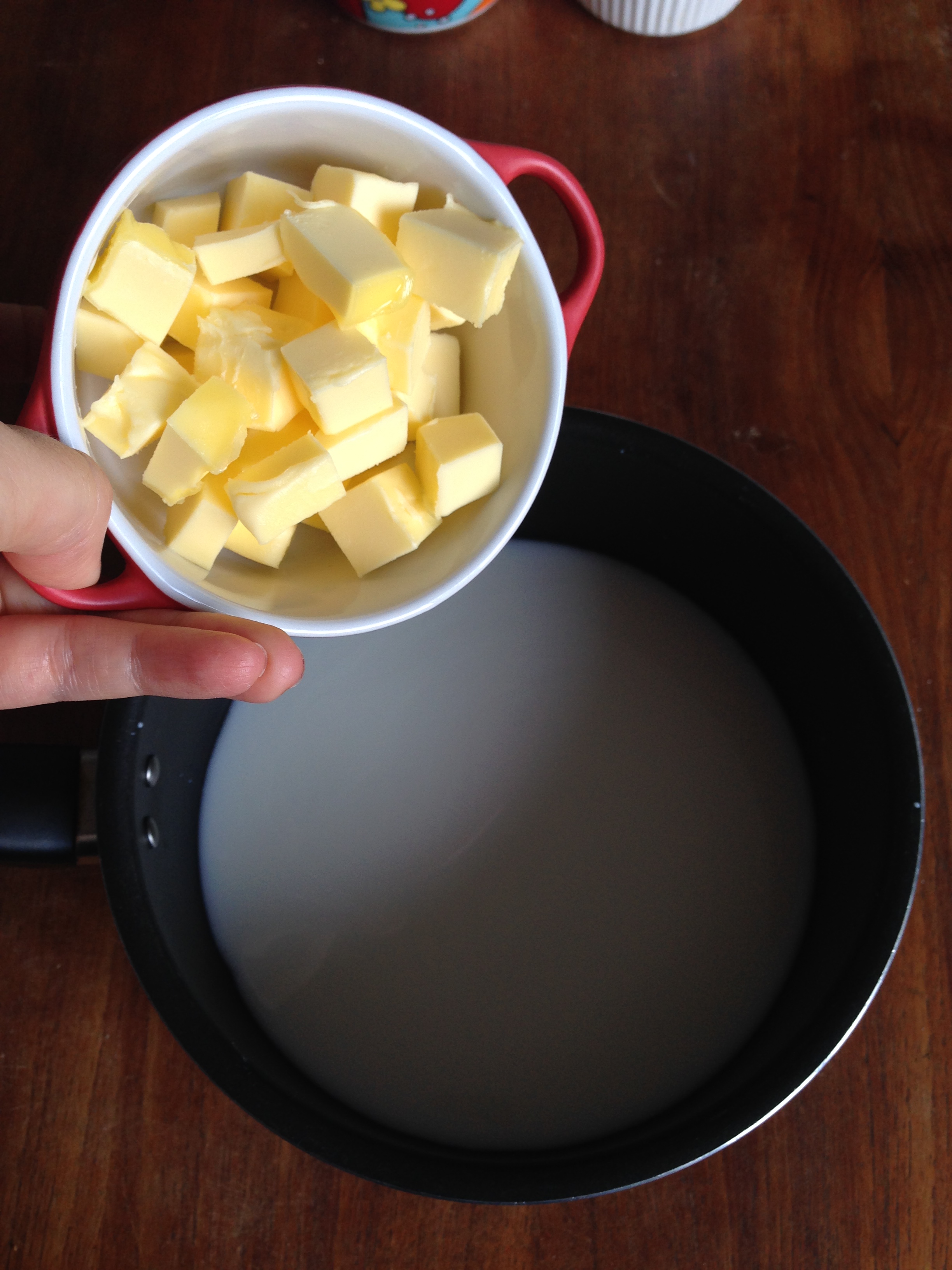2. In a medium pan, put water, milk, salt, sugar and butter.
