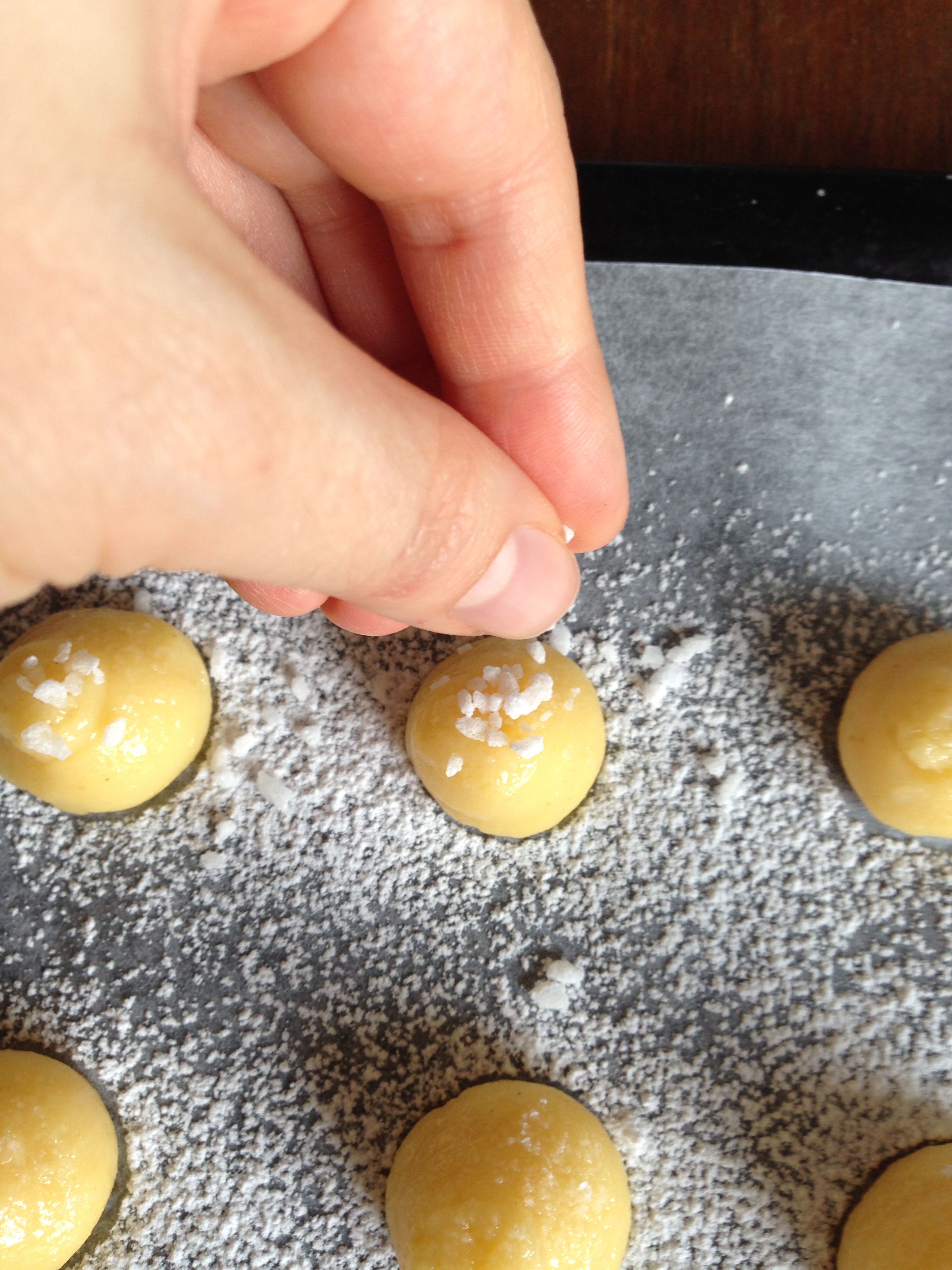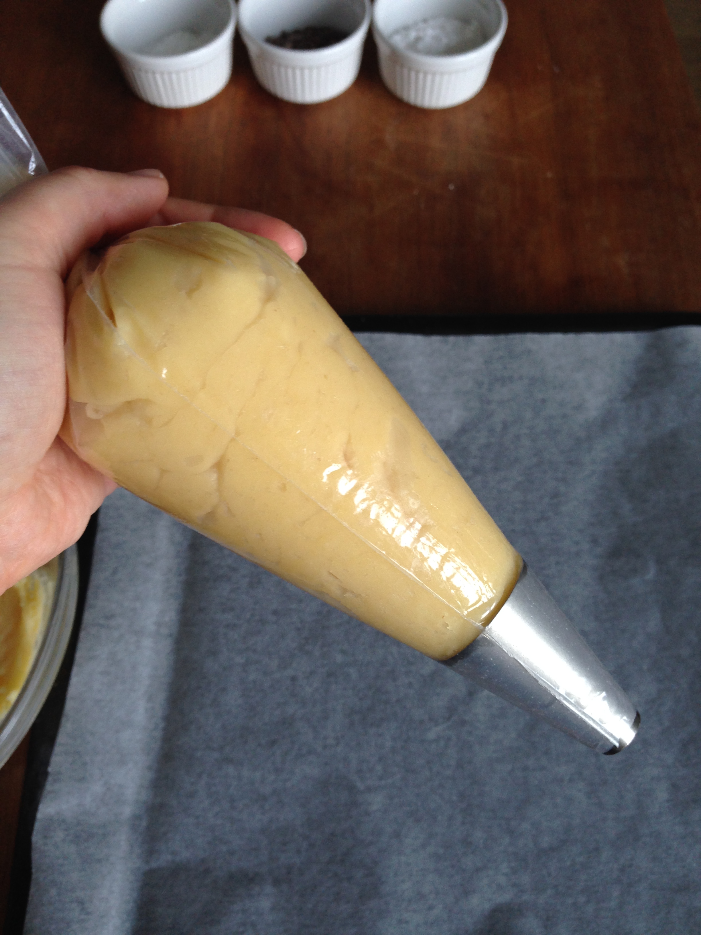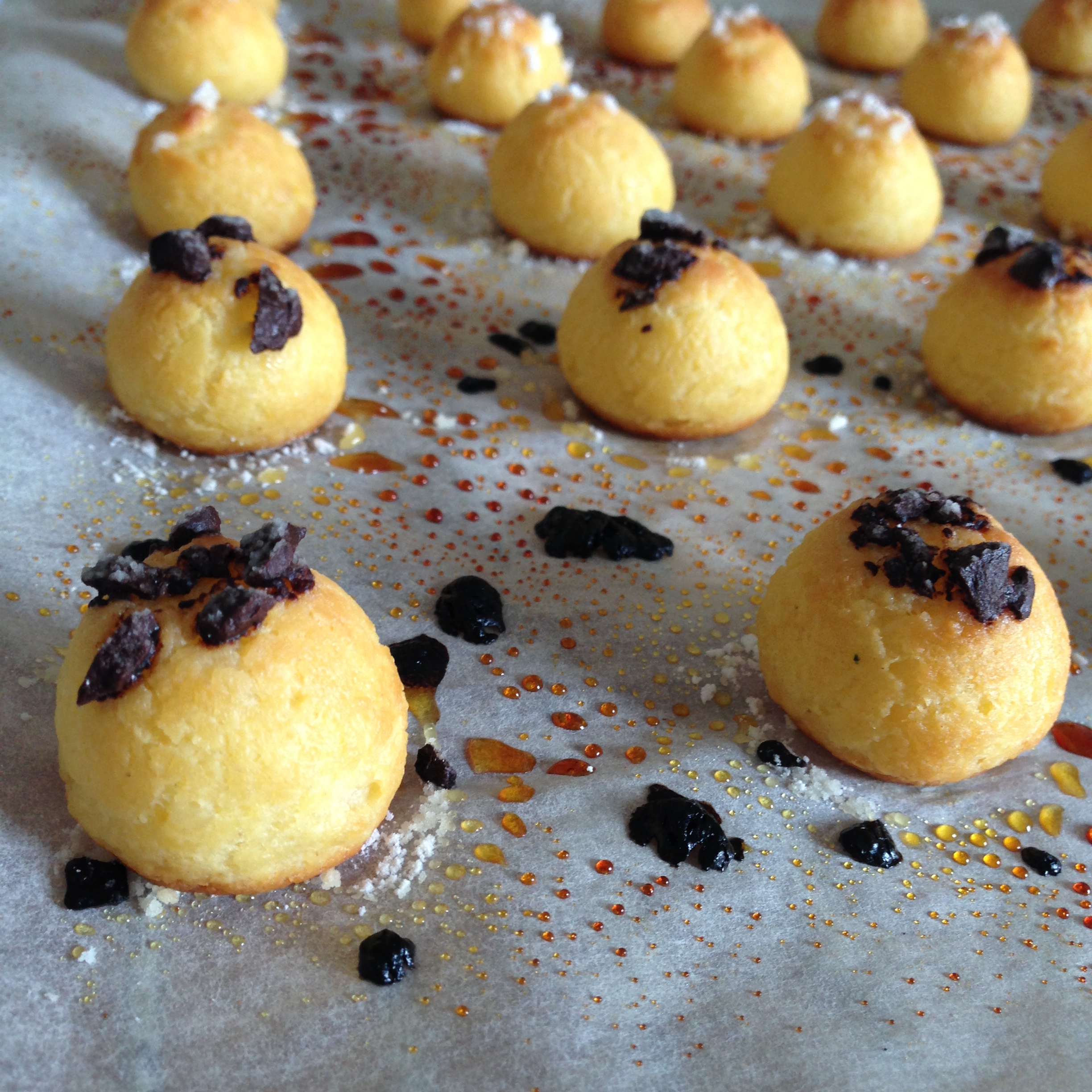 I made my pastries in a really mini size but you can make them slightly bigger so that you can pipe cream inside, just like any choux pastry. Without the cream they are salty-sweet but with the cream I believe they would be rather sweet.