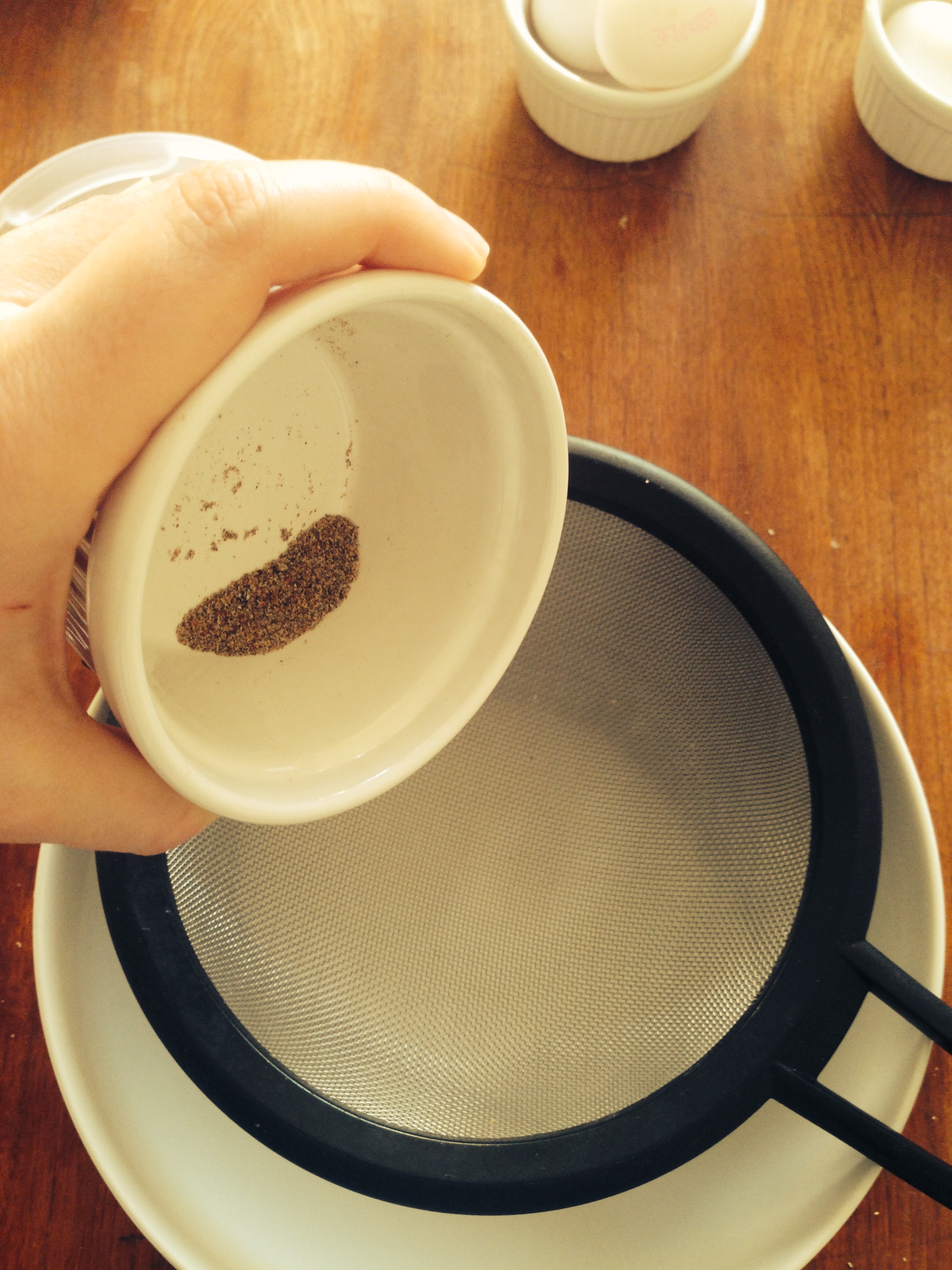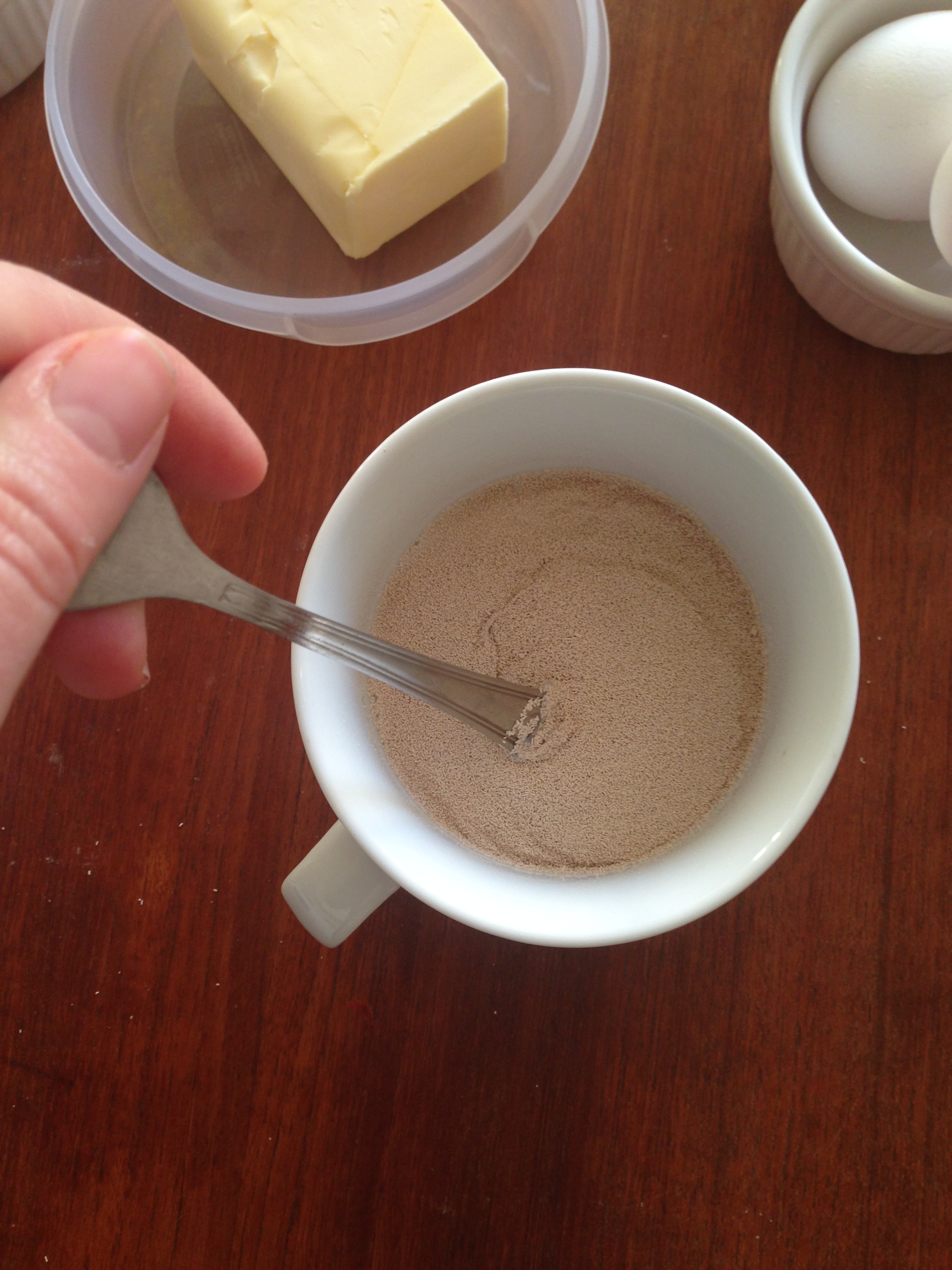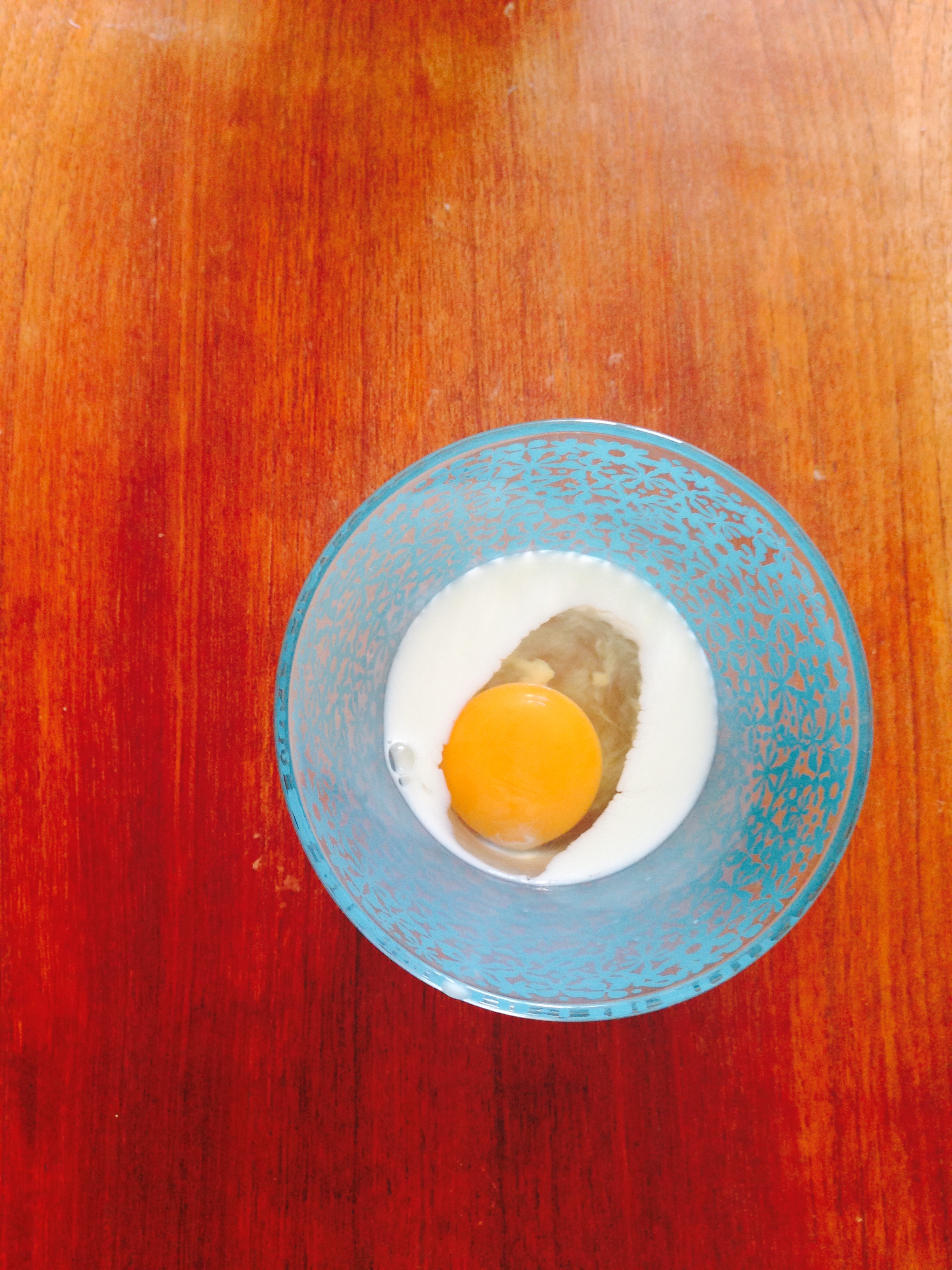 1. Put 3/4 cup / 1.8 dl milk in a pan and heat it until it’s lukewarm, about 45C with a thermometer. When it’s warm enough, pour it in a bowl. The remaining 1 tbsp / 15 ml of milk, leave aside for the moment.