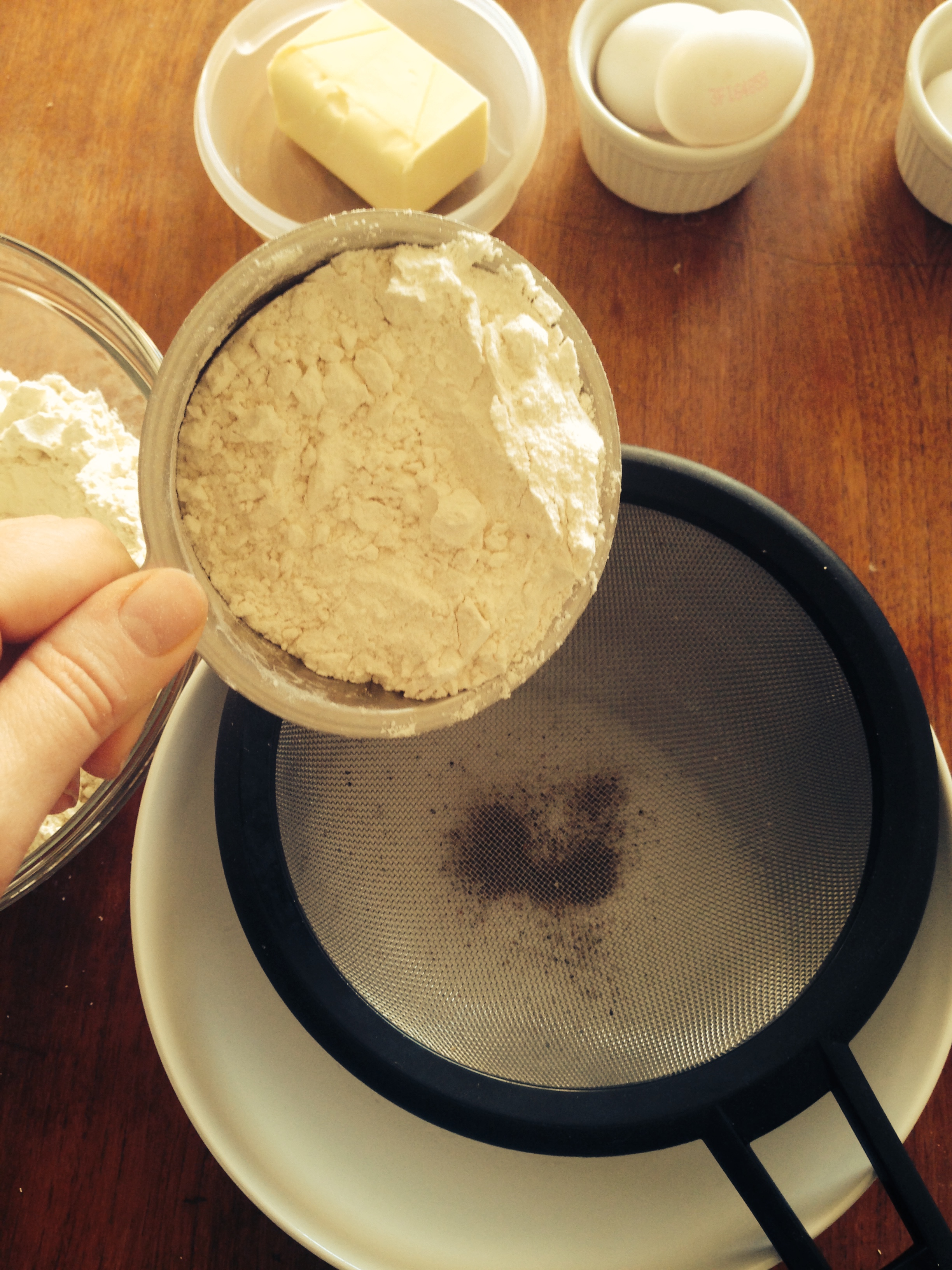 3. In a mixing bowl, sift sugar, salt, cardamom and flour.