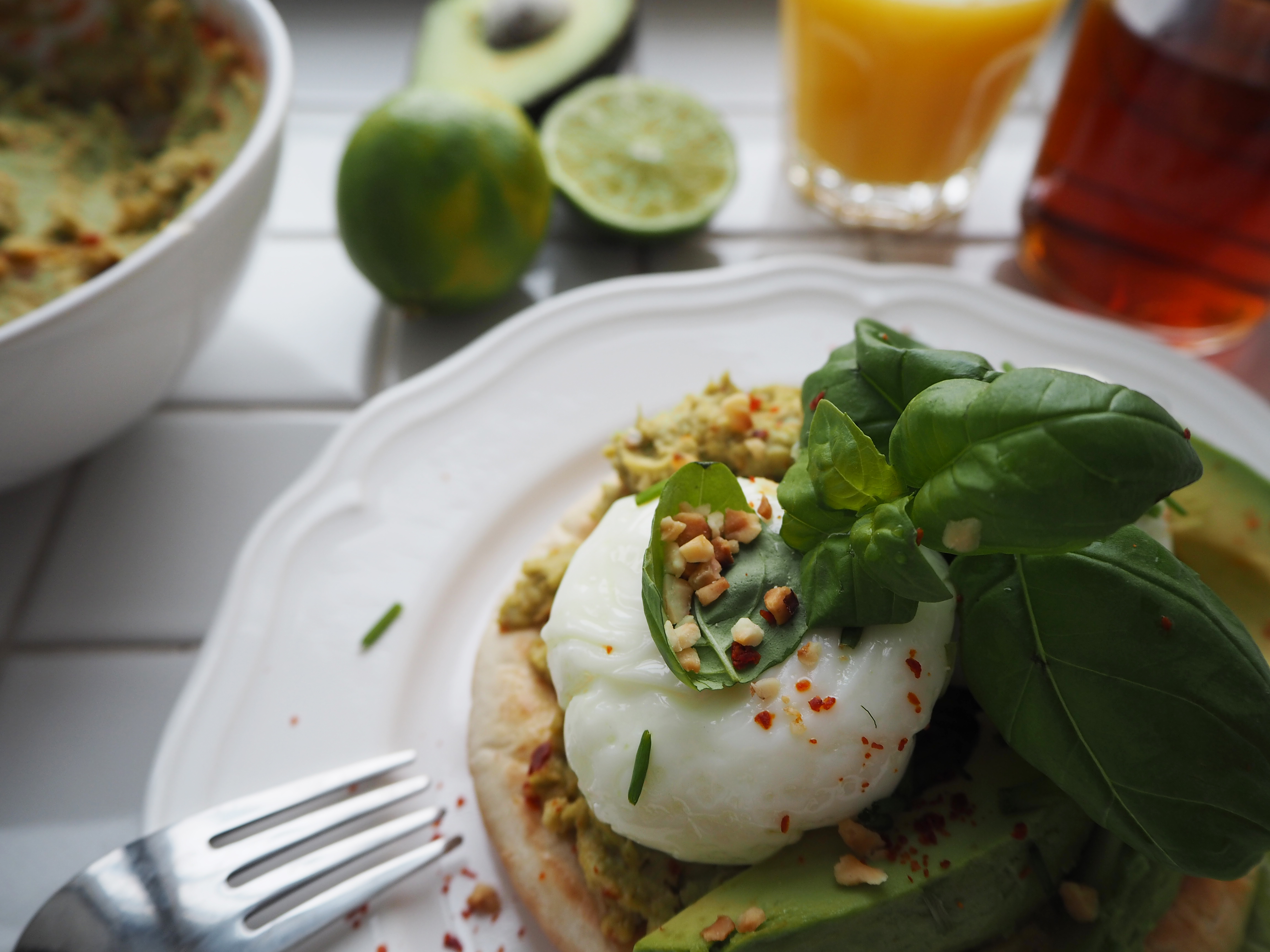 In this recipe I also have a suggestion for you, for a little weekend breakfast with avocado hummus: warm some pita bread, spread avocado hummus on it, add poached egg(s), garnish with fresh basil leaves, chives, red pepper flakes and crushed hazelnuts. It just becomes food to die for!!